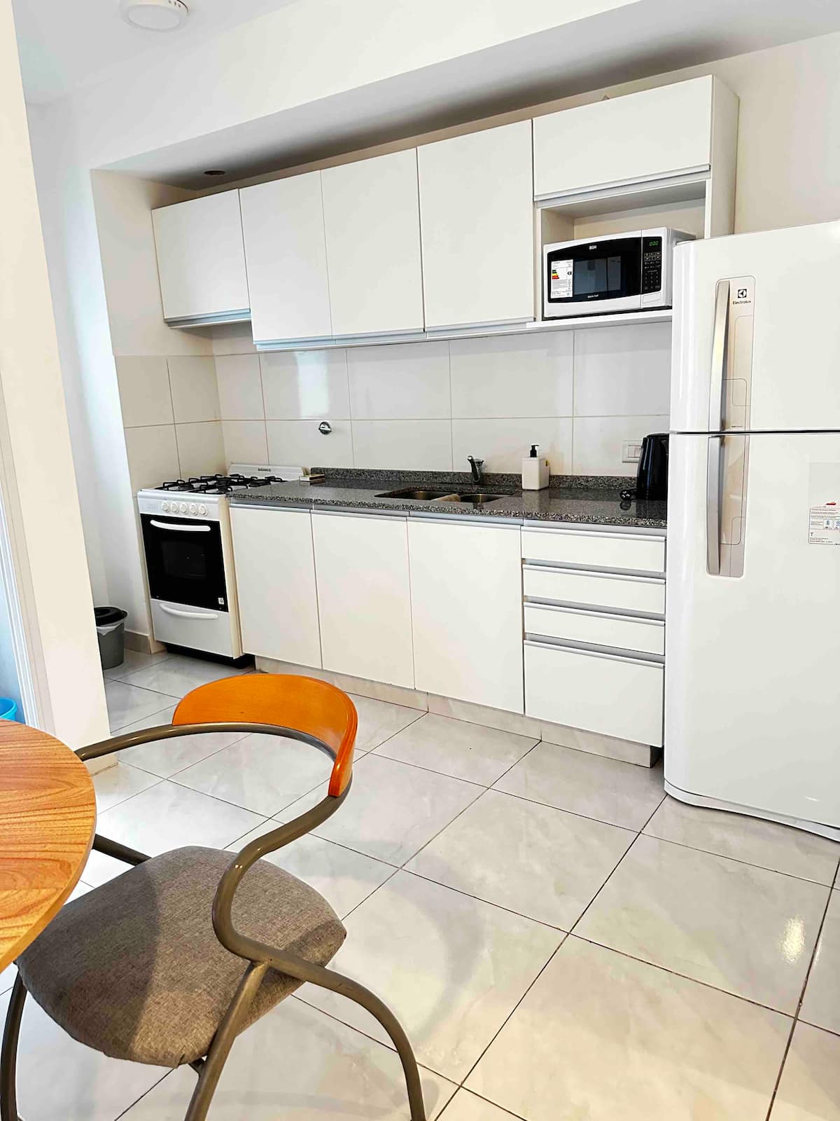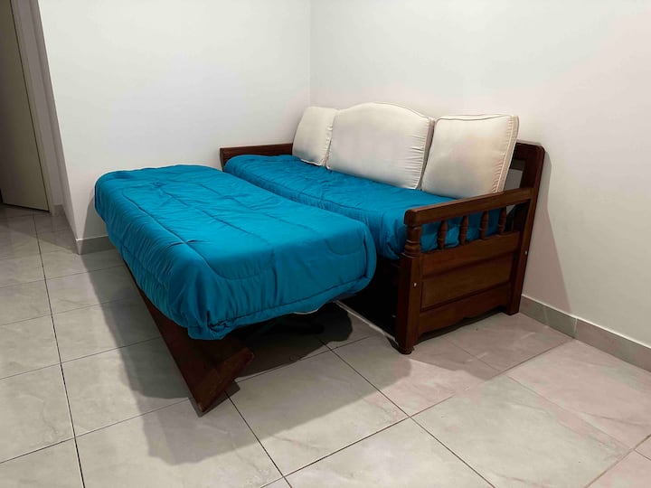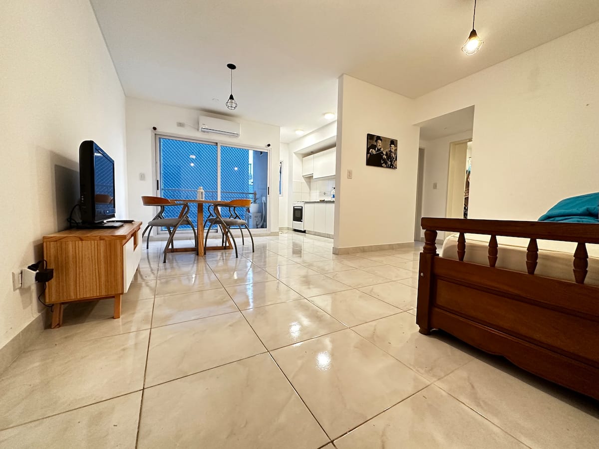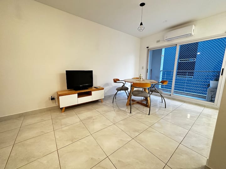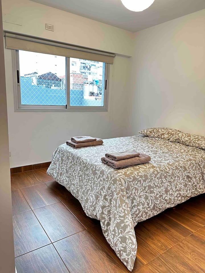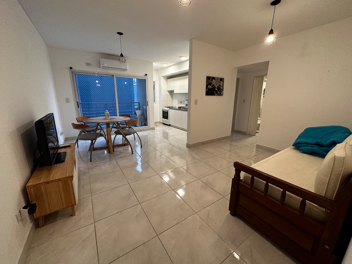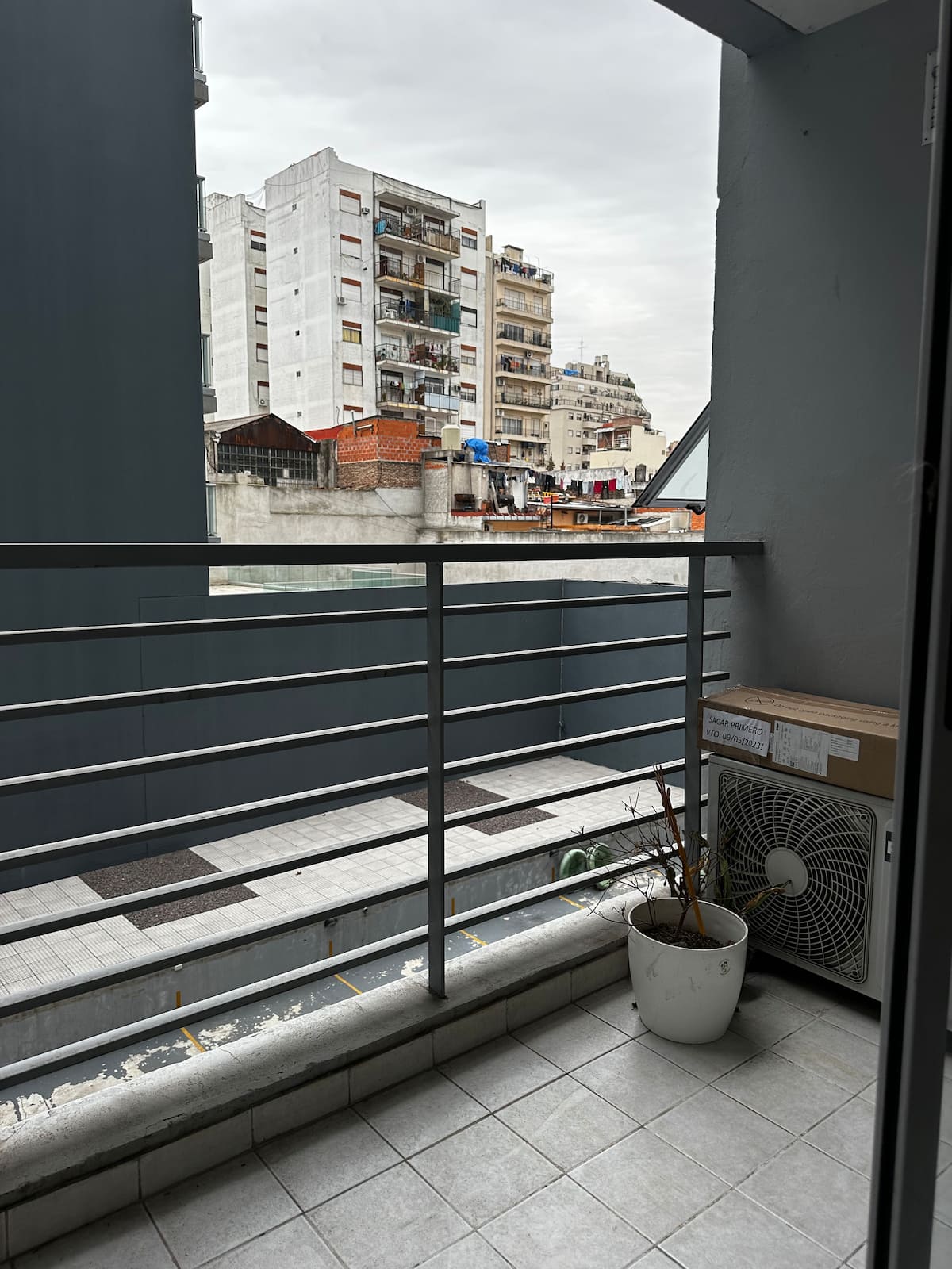 Departamento en edificio nuevo en Parque Patricios, Buenos Aires. Tiene 1 dormitorio con cama doble y un living con sofá cama que se transforma en 2 camas individuales. Es un espacio silencioso y cuenta con zona de parques y locales gastronómicos en los alrededores.
