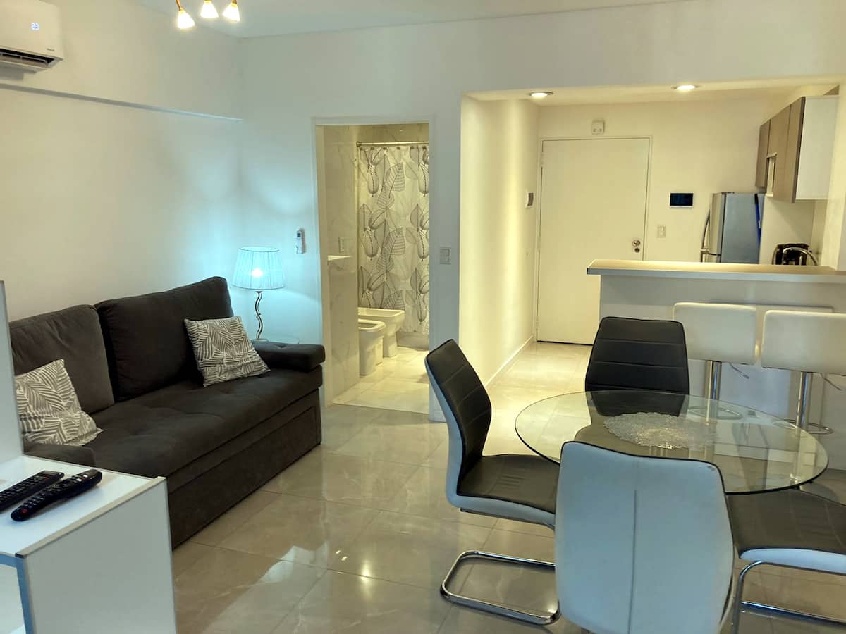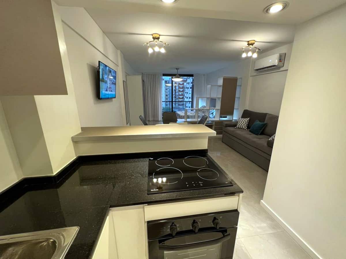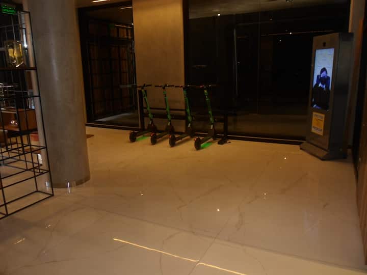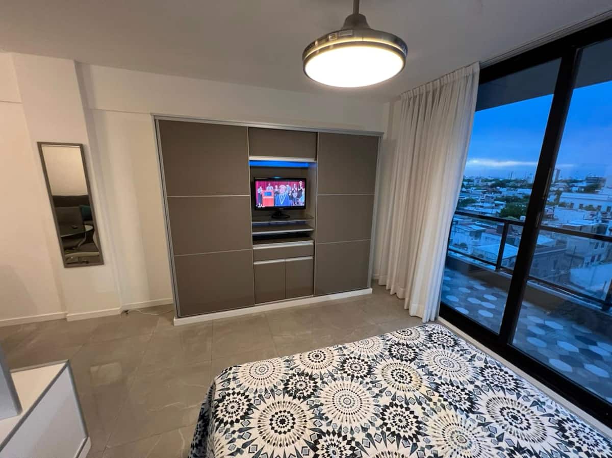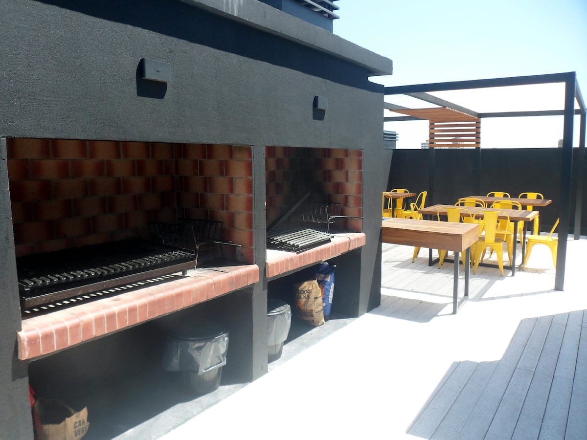 Departamento de 1 dormitorio y 46 m², con vista a la ciudad y 6 m² adicionales. Se ubica en Polo Tecnico (Parque Patricios) y cuenta con pileta, SUM, gimnasio, laundry, parrilla, sala de juegos y espacio de coworking con recepción. Incluye cochera y seguridad en el edificio. Tiene cama king y sofá cama de 2 plazas. Se encuentra a 400 metros de la estación de Subte Línea E y a 500 metros de la estación de la Línea H.
