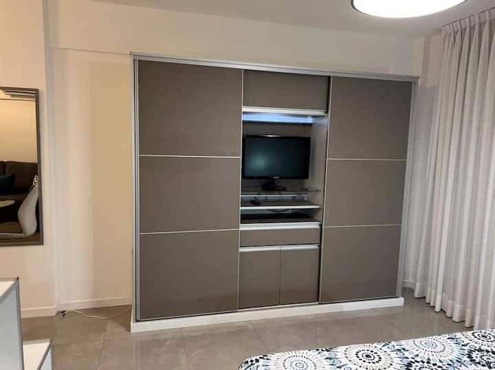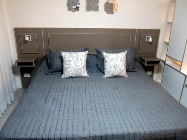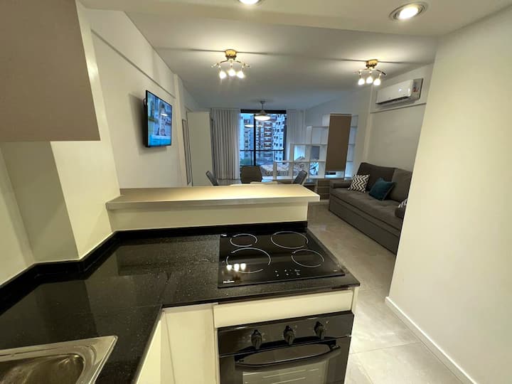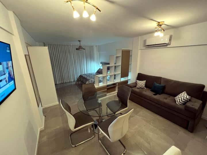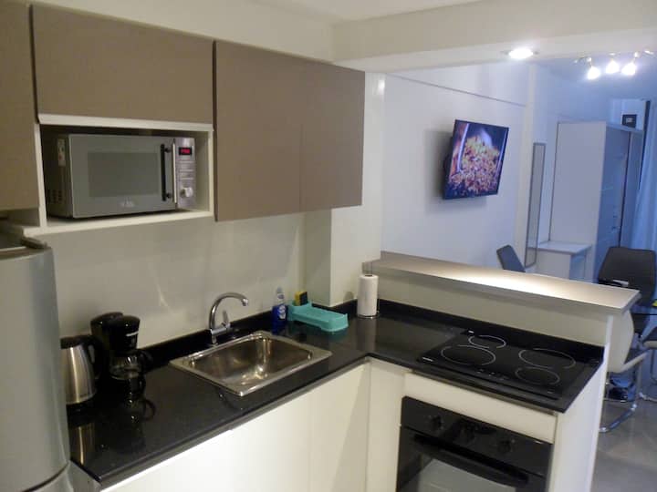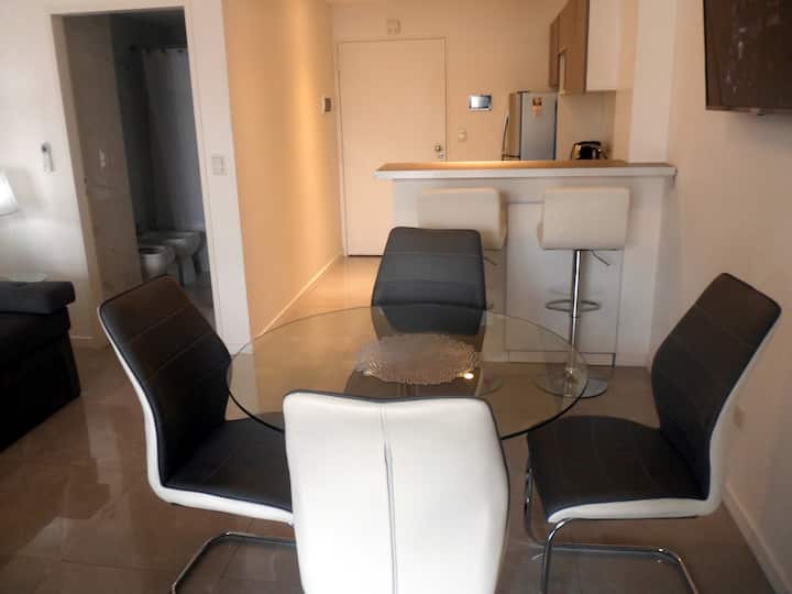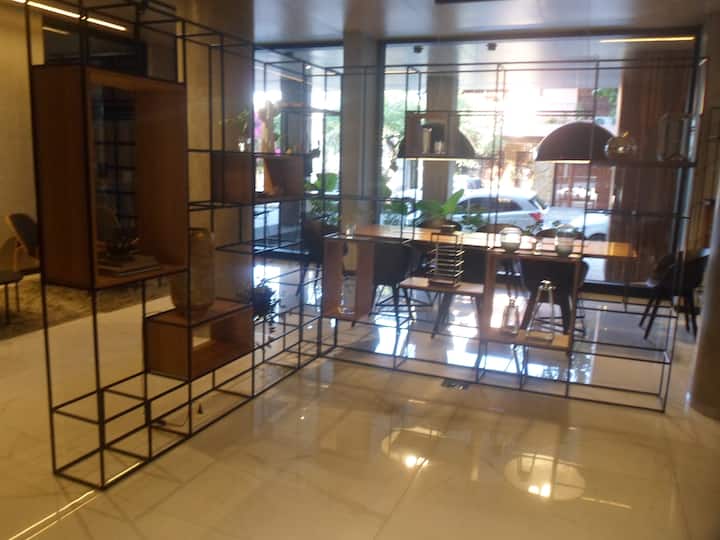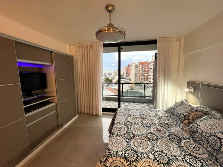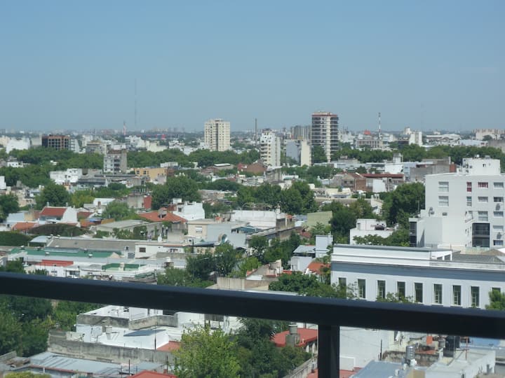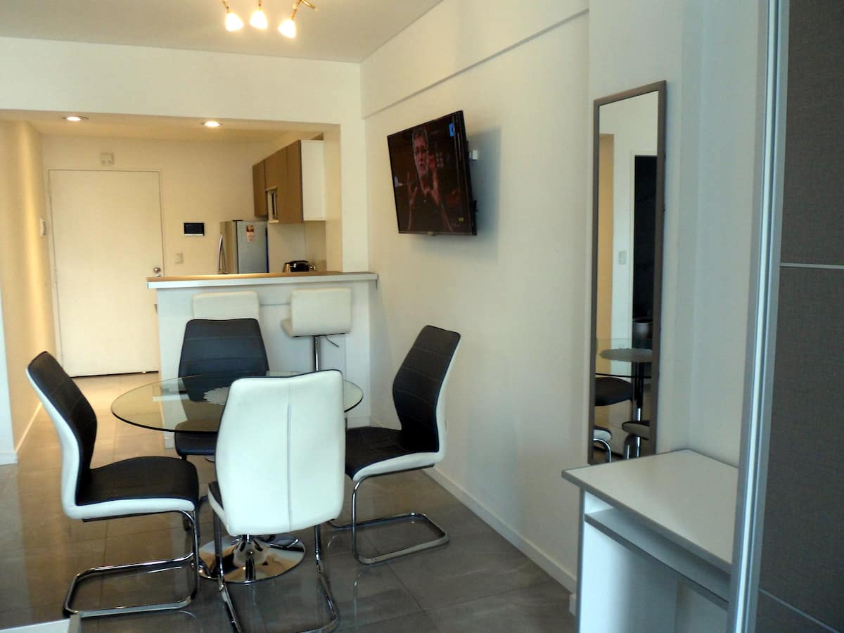 Departamento de 1 dormitorio y 46 m², con vista a la ciudad y 6 m² adicionales. Se ubica en Polo Tecnico (Parque Patricios) y cuenta con pileta, SUM, gimnasio, laundry, parrilla, sala de juegos y espacio de coworking con recepción. Incluye cochera y seguridad en el edificio. Tiene cama king y sofá cama de 2 plazas. Se encuentra a 400 metros de la estación de Subte Línea E y a 500 metros de la estación de la Línea H.