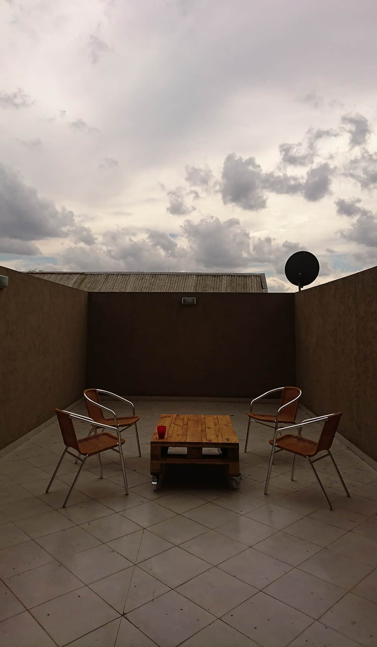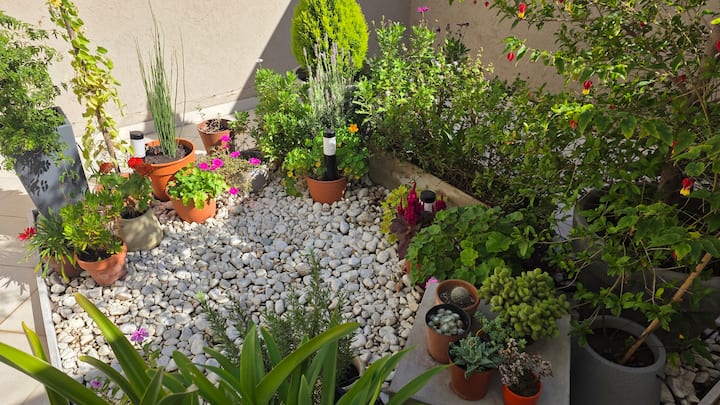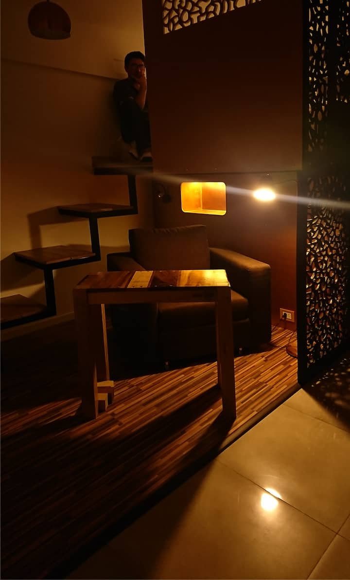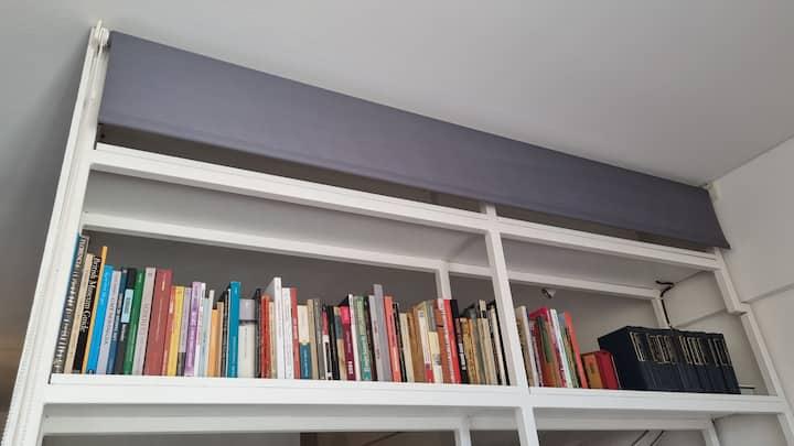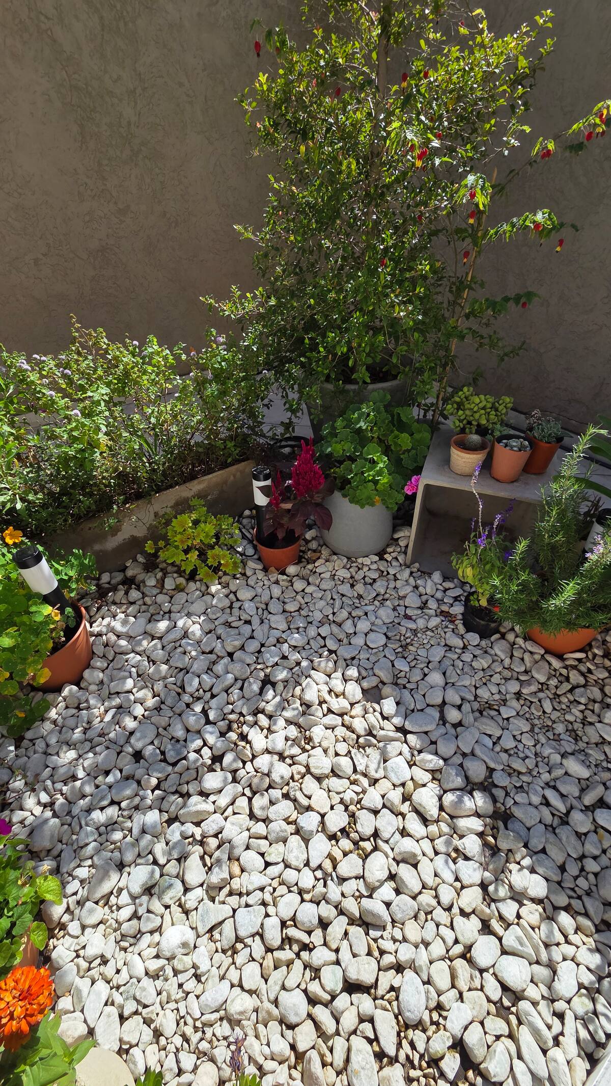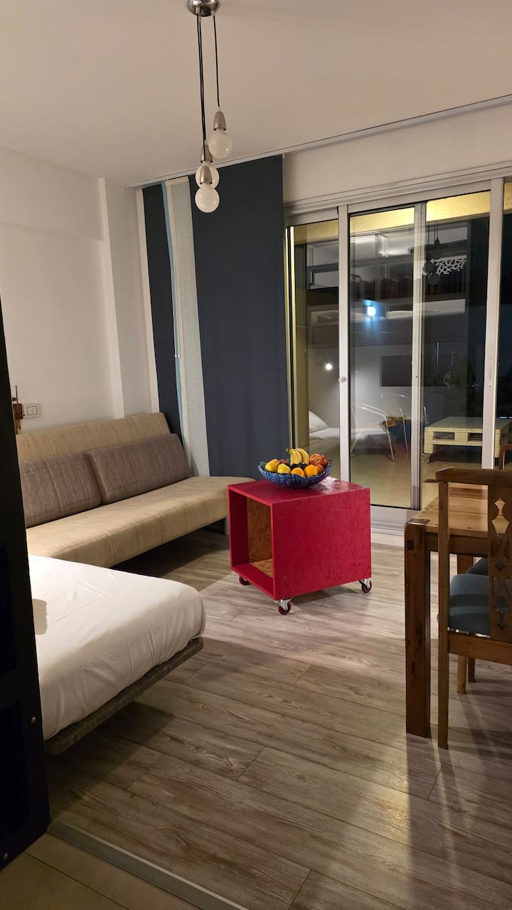 Departamento tipo estudio con 1 dormitorio y patio. Cuenta con cinco espacios interiores organizados en módulos, con área de dormitorio en plataforma. Incluye patio que funciona como un espacio verde y se integra al tamaño del departamento.