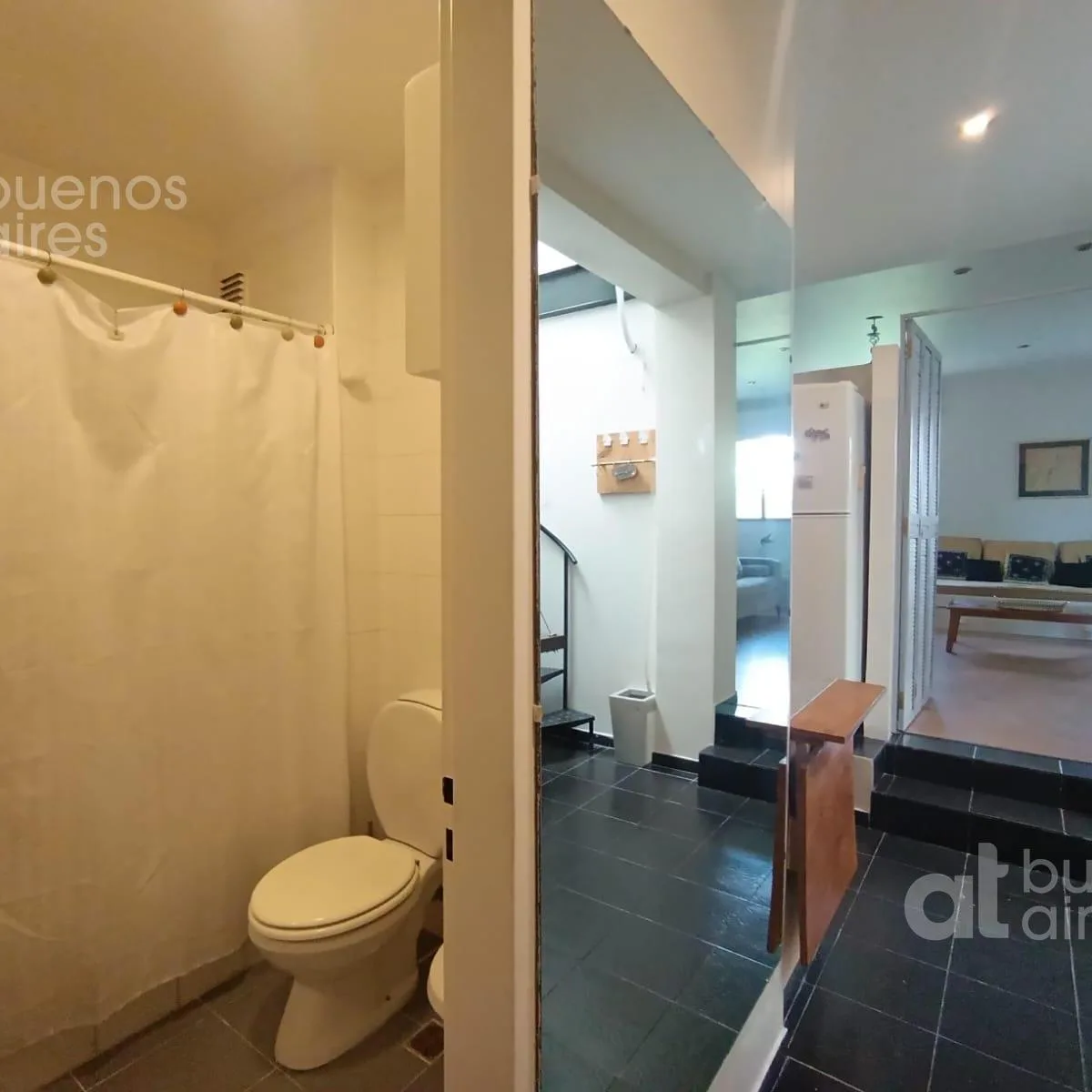 Departamento dúplex de 1 dormitorio con terraza propia en Parque Patricios, equipado. En la planta baja cuenta con baño principal completo con bidet y bañera, cocina con horno a gas, microondas, cafetera, pava eléctrica, tostadora, juguera, heladera con freezer y lavarropas, y living-comedor con aire acondicionado frío/calor y placard espejado. El dormitorio, con cama doble, baño en suite con ducha y vestidor, tiene salida a la terraza con mesa, sillas y sombrilla. El edificio ofrece pileta y pa