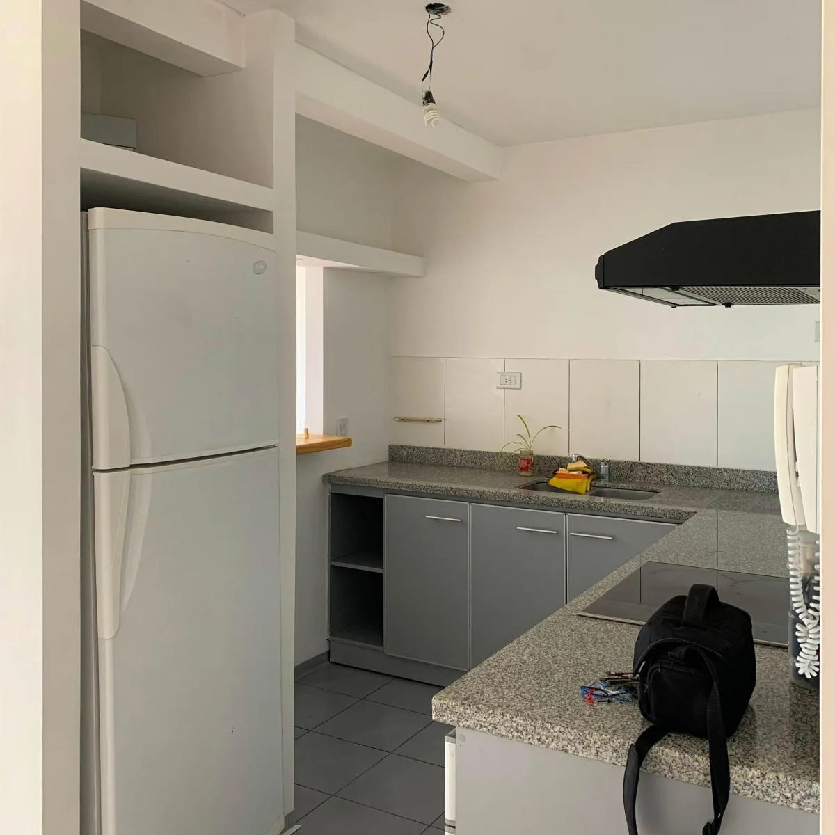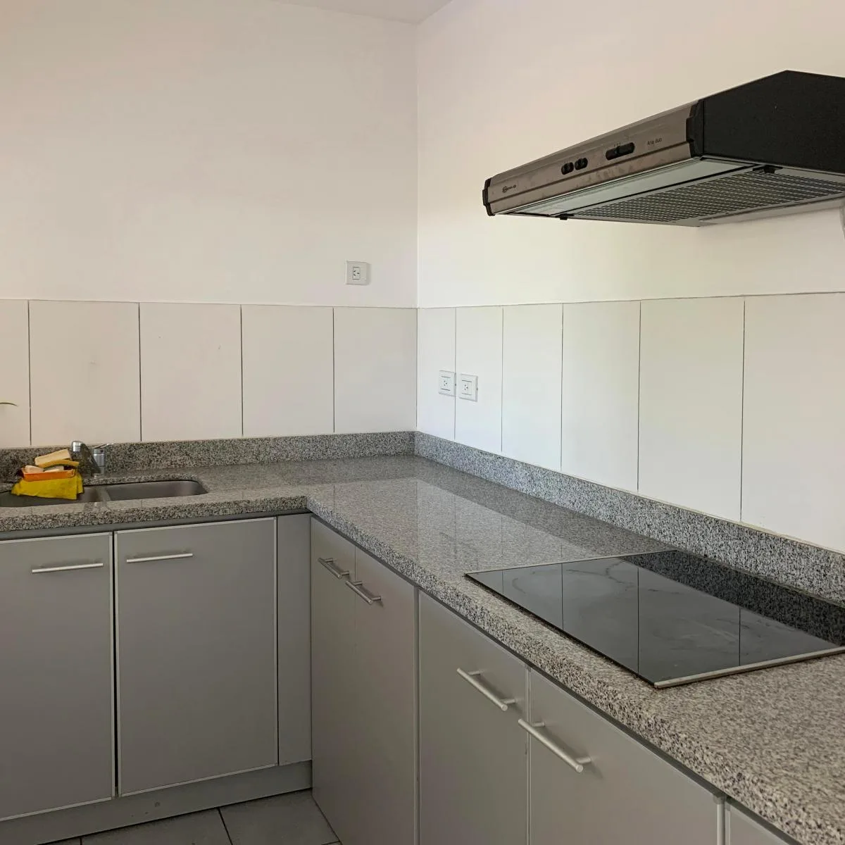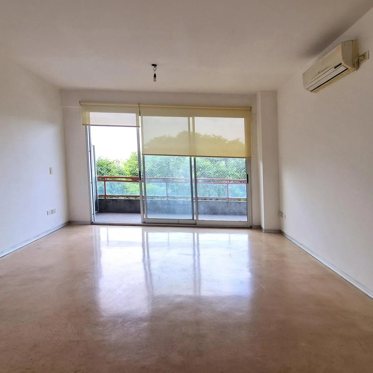 Departamento de 2 ambientes al frente, con balcón corrido, orientación este, con 10 años de antigüedad. Living y dormitorio al frente, con cortinas roller en ambos ambientes, cocina y baño completo. Agua caliente central, aire acondicionado frío-calor en el living y en el dormitorio, cochera, terraza con parrilla y laundry, y apto profesional.