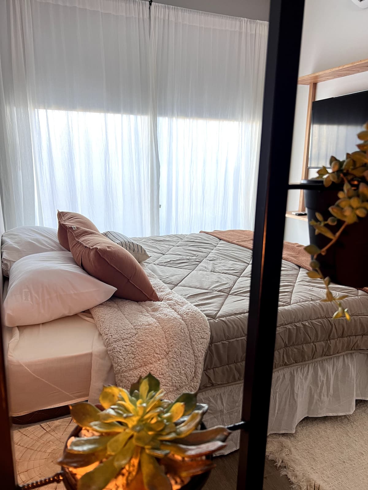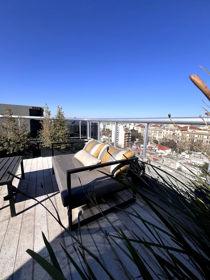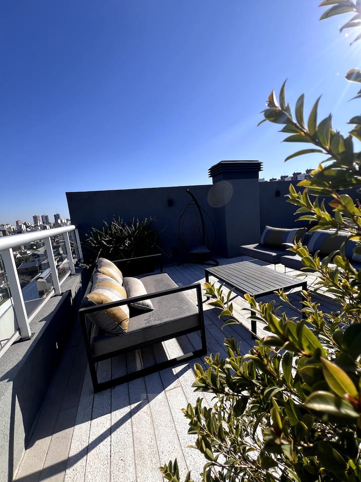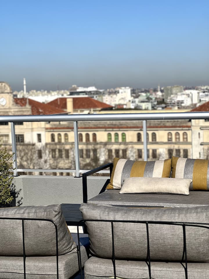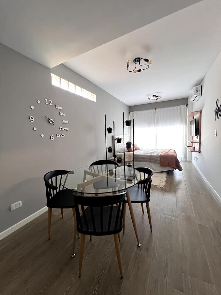 Monoambiente de 1 habitación en Parque Patricios, a estrenar, pensado para 2 huéspedes. Cuenta con 1 baño completo con ducha, bañera y bidet. Tiene balcón privado con vista abierta, cocina equipada con sector de comedor y aire acondicionado con función frío/calor con blackout. Incluye WiFi y TV. El edificio dispone de lavandería, terraza con solárium y duchas exteriores, parrilla y se encuentra en la zona tecnológica, a metros de Subte H, estación Inclán, y de la línea de Metrobus.