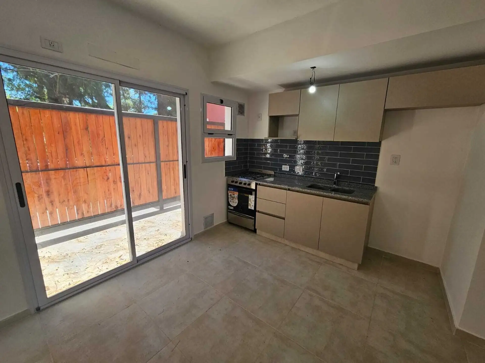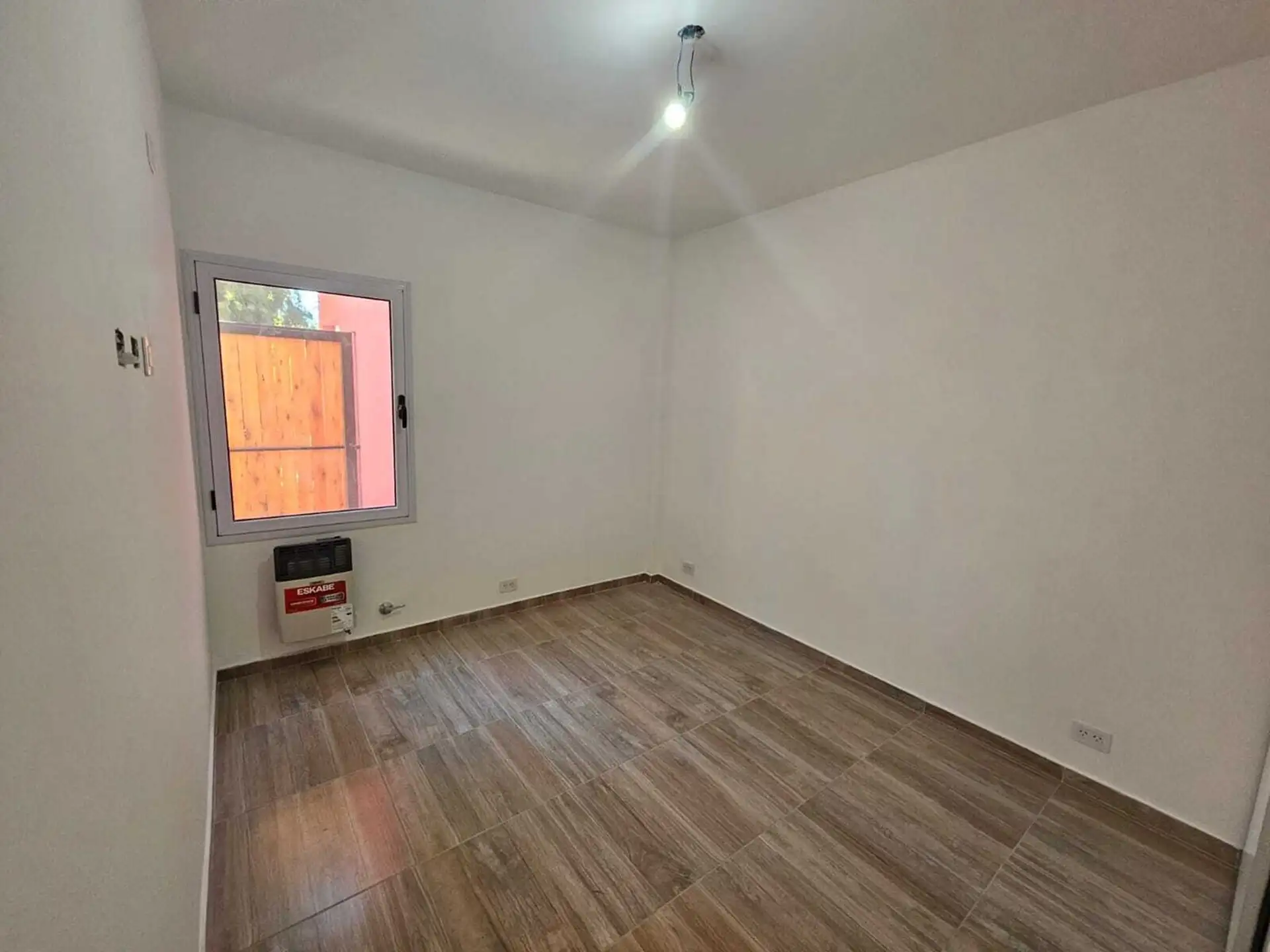 Departamento a estrenar de 2 ambientes con 1 dormitorio. Cuenta con terraza propia con parrilla, balcón interno y cochera techada propia, además de portón eléctrico automatizado y portero eléctrico. Tiene living comedor con calefacción por tiro balanceado y preinstalación para aires acondicionados, cocina integrada a gas, dormitorio con placards y baño completo con bañera y extractor. Las expensas incluyen mantenimiento del complejo (limpieza, corte de pasto y electricidad), cloacas, ABL y agua,