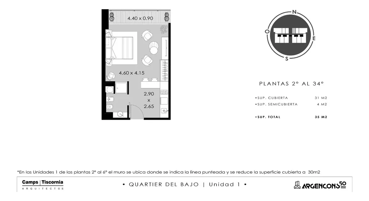 Monoambiente amoblado en alquiler temporario en Quartier del Bajo, Puerto Madero