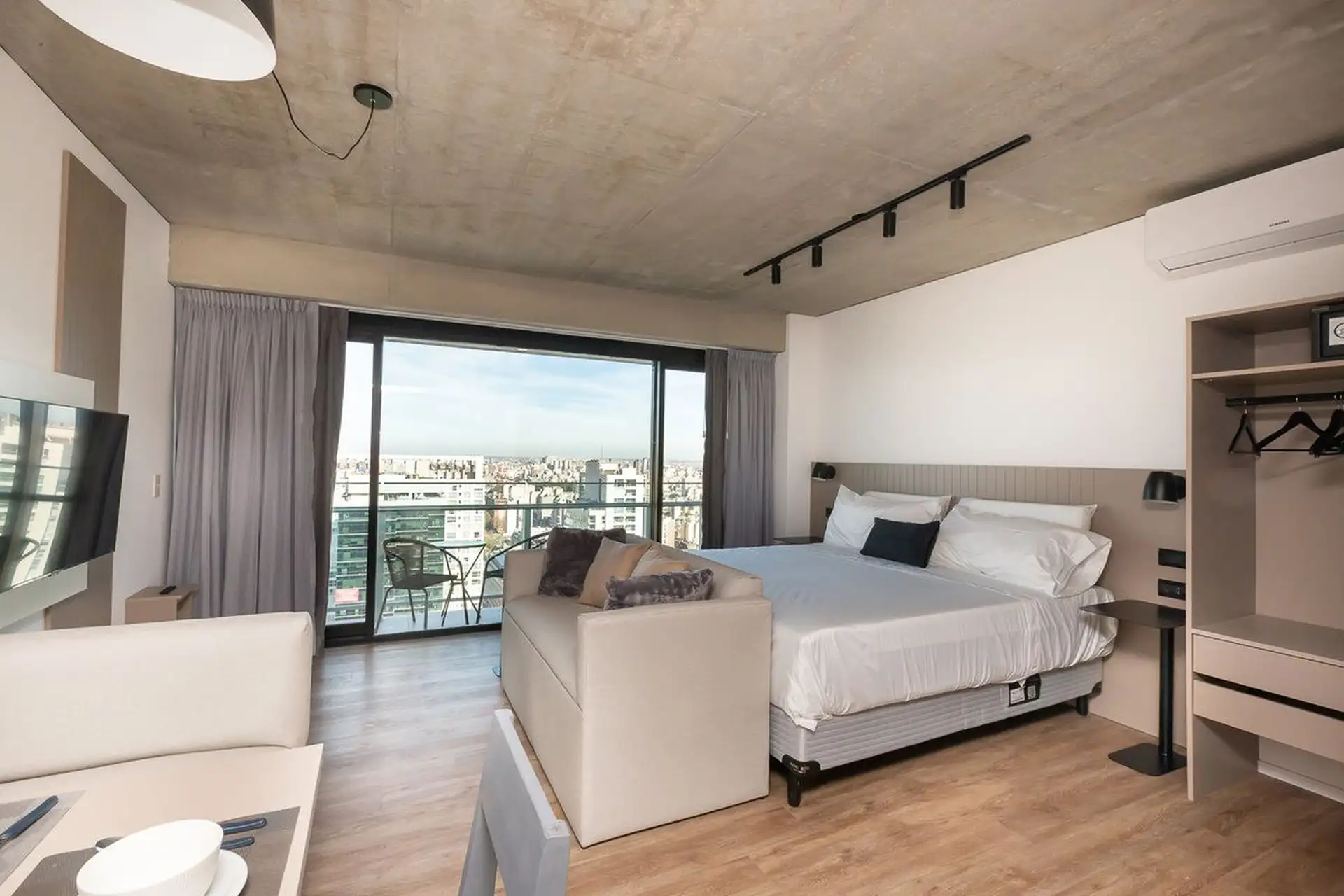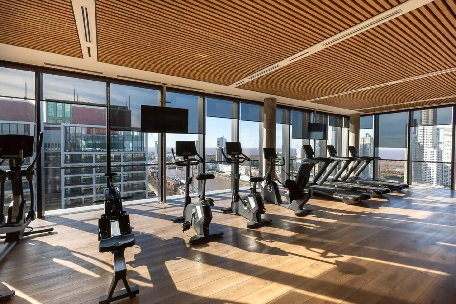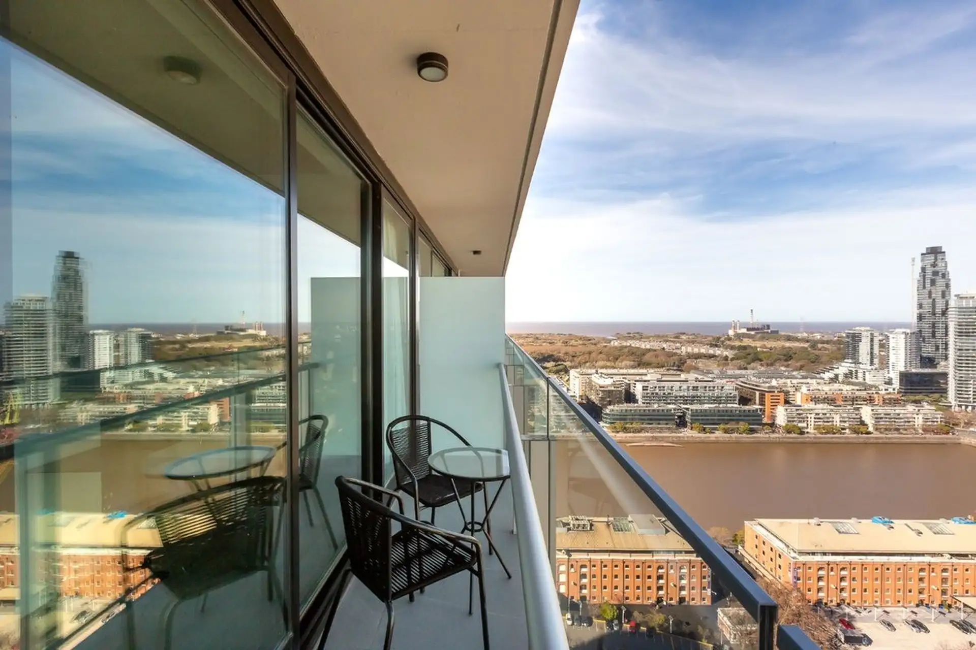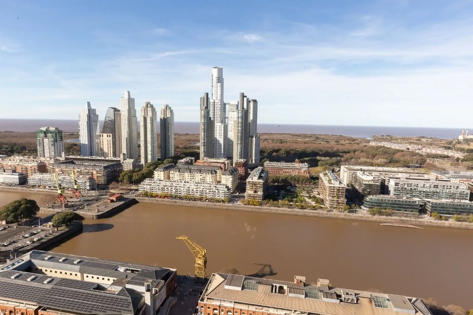 Departamento amoblado en Puerto Madero, en el piso 30+. Cocina semi-integrada equipada, con heladera y equipamiento de las marcas Samsung y Electrolux. Incluye balcón, baño completo, Smart TV y cafetera Nespresso con Aeroccino. El mobiliario incluye sillones a medida, mesa de comedor y escritorio, además de sommiers individuales King Soil y almohadas premium.