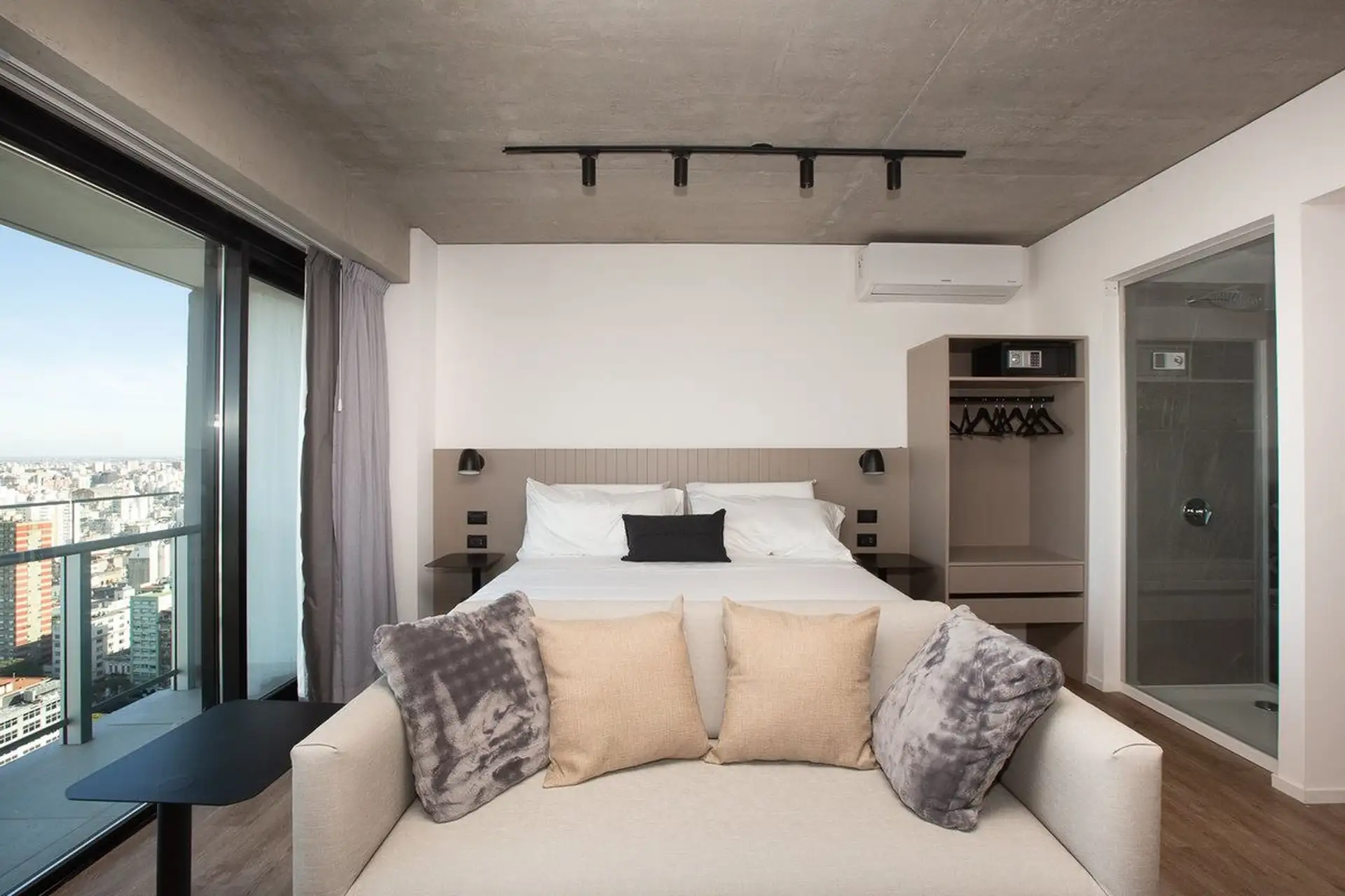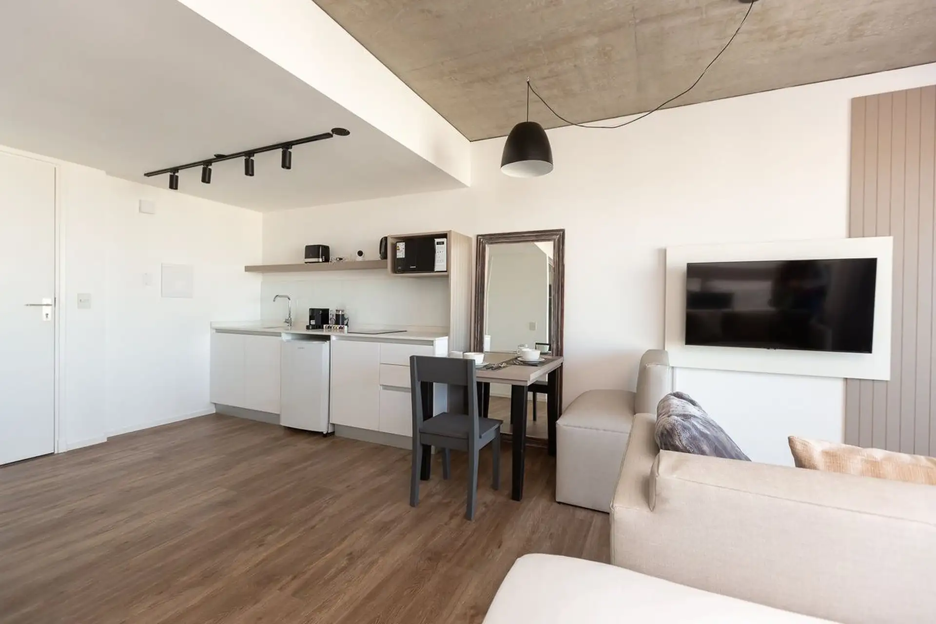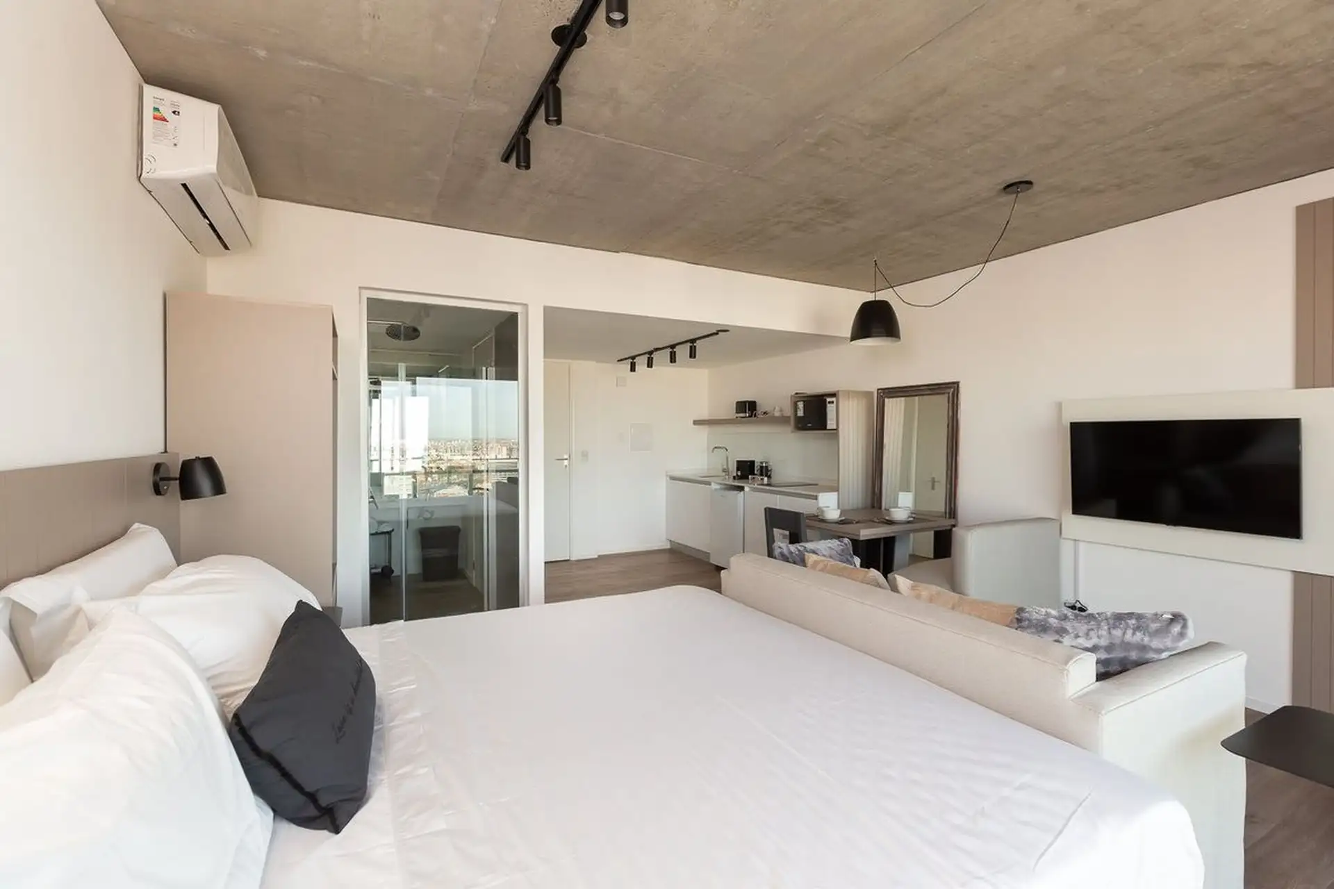 Departamento amoblado en Puerto Madero, en el piso 30+. Cocina semi-integrada equipada, con heladera y equipamiento de las marcas Samsung y Electrolux. Incluye balcón, baño completo, Smart TV y cafetera Nespresso con Aeroccino. El mobiliario incluye sillones a medida, mesa de comedor y escritorio, además de sommiers individuales King Soil y almohadas premium.