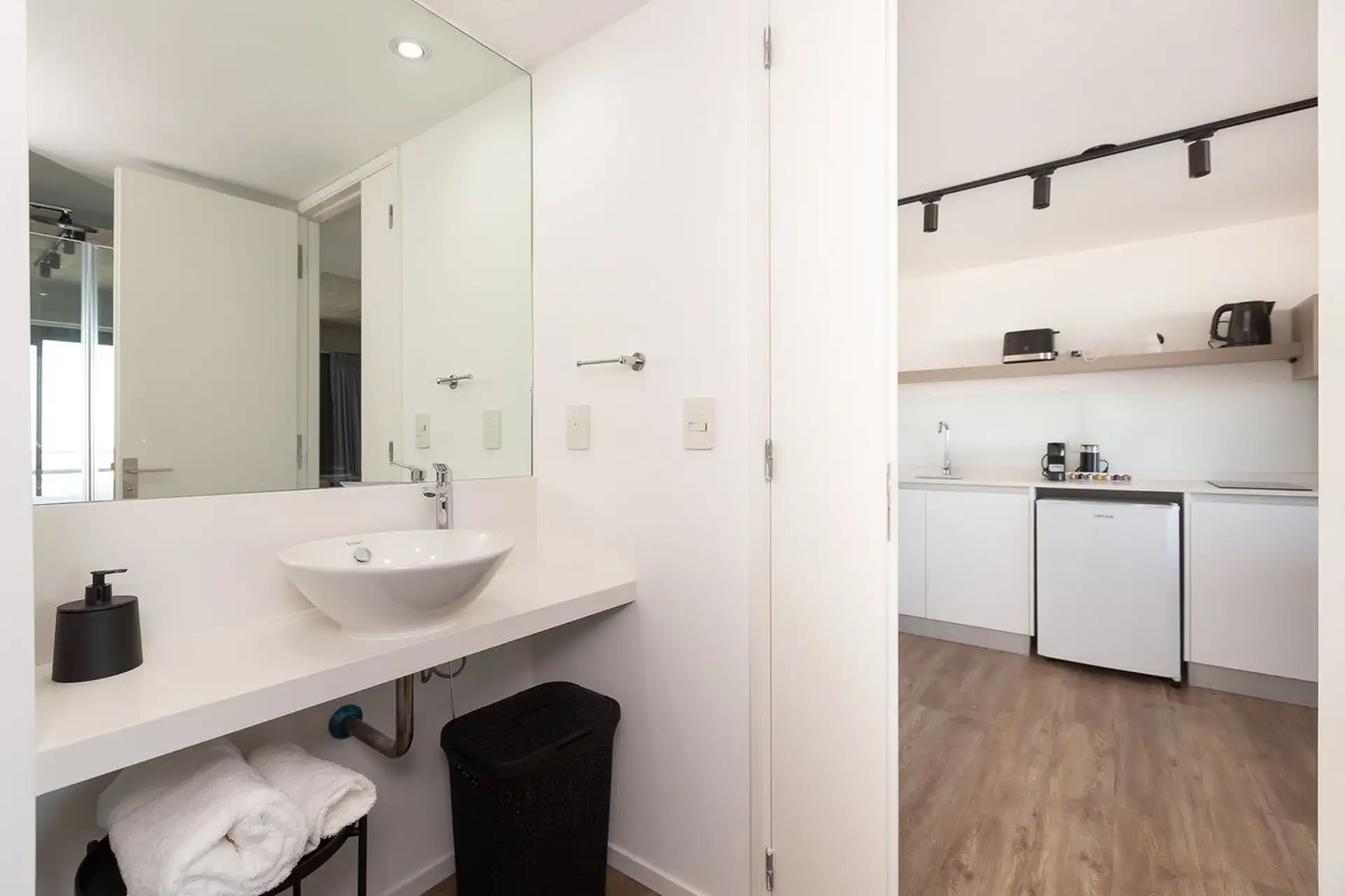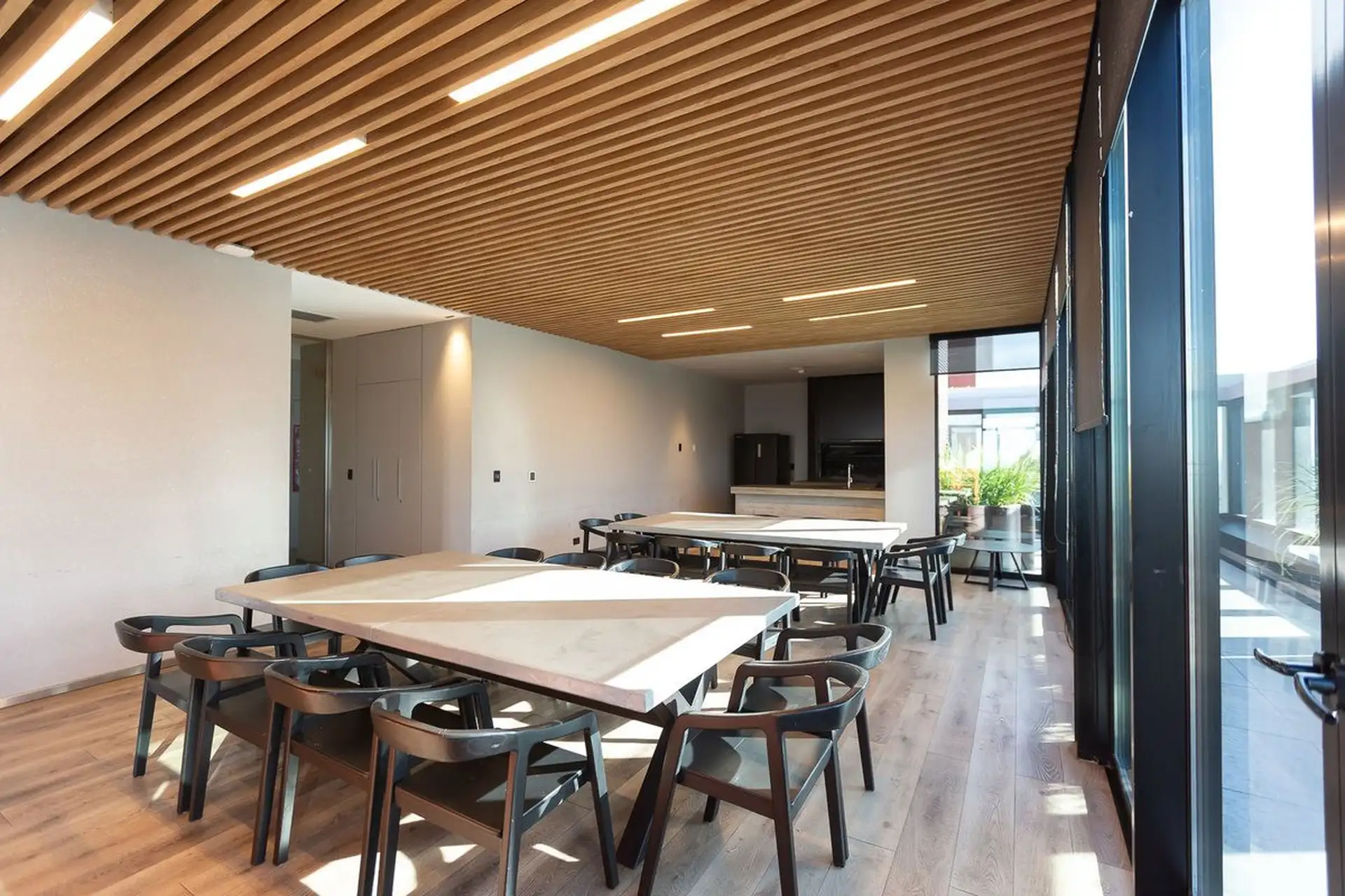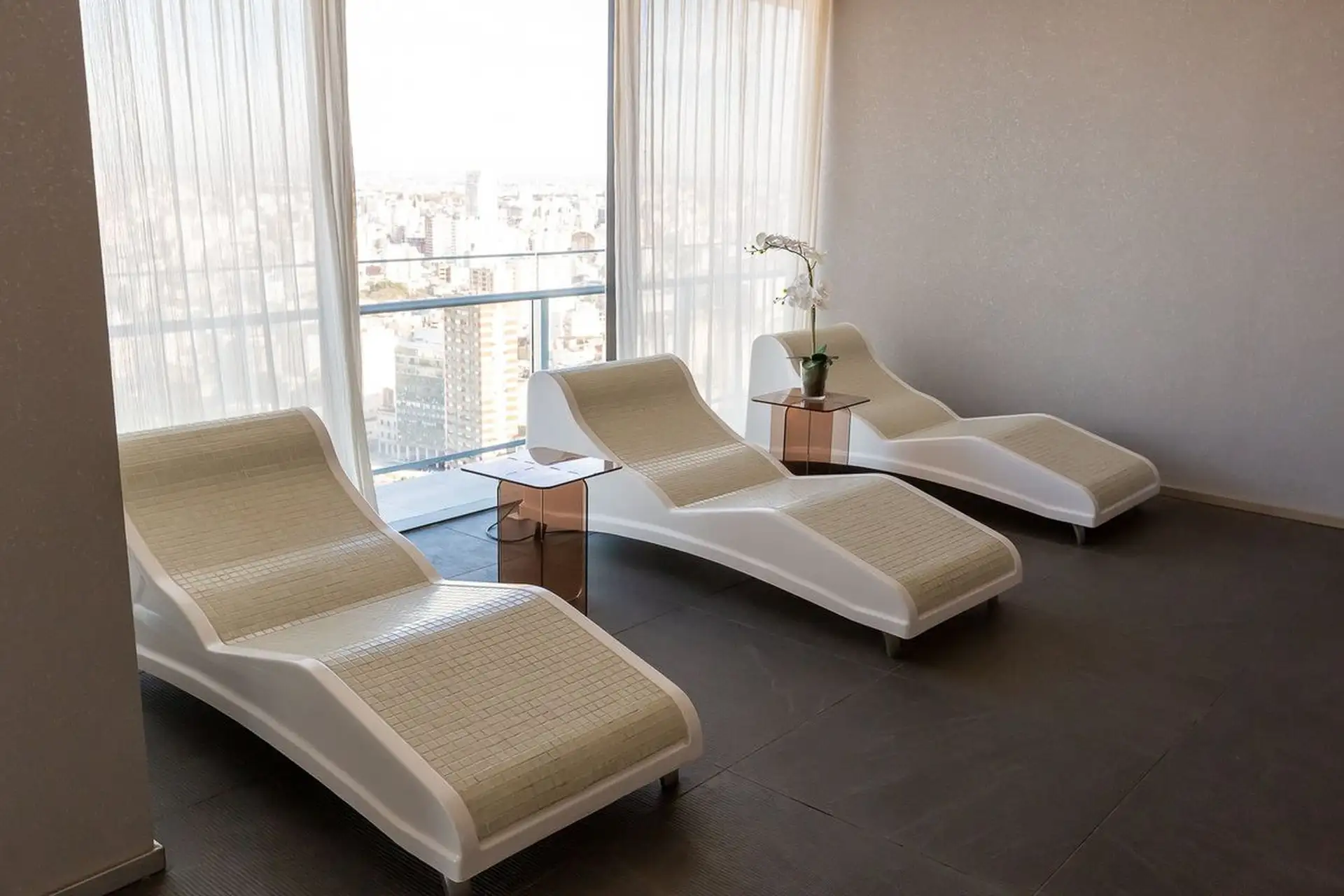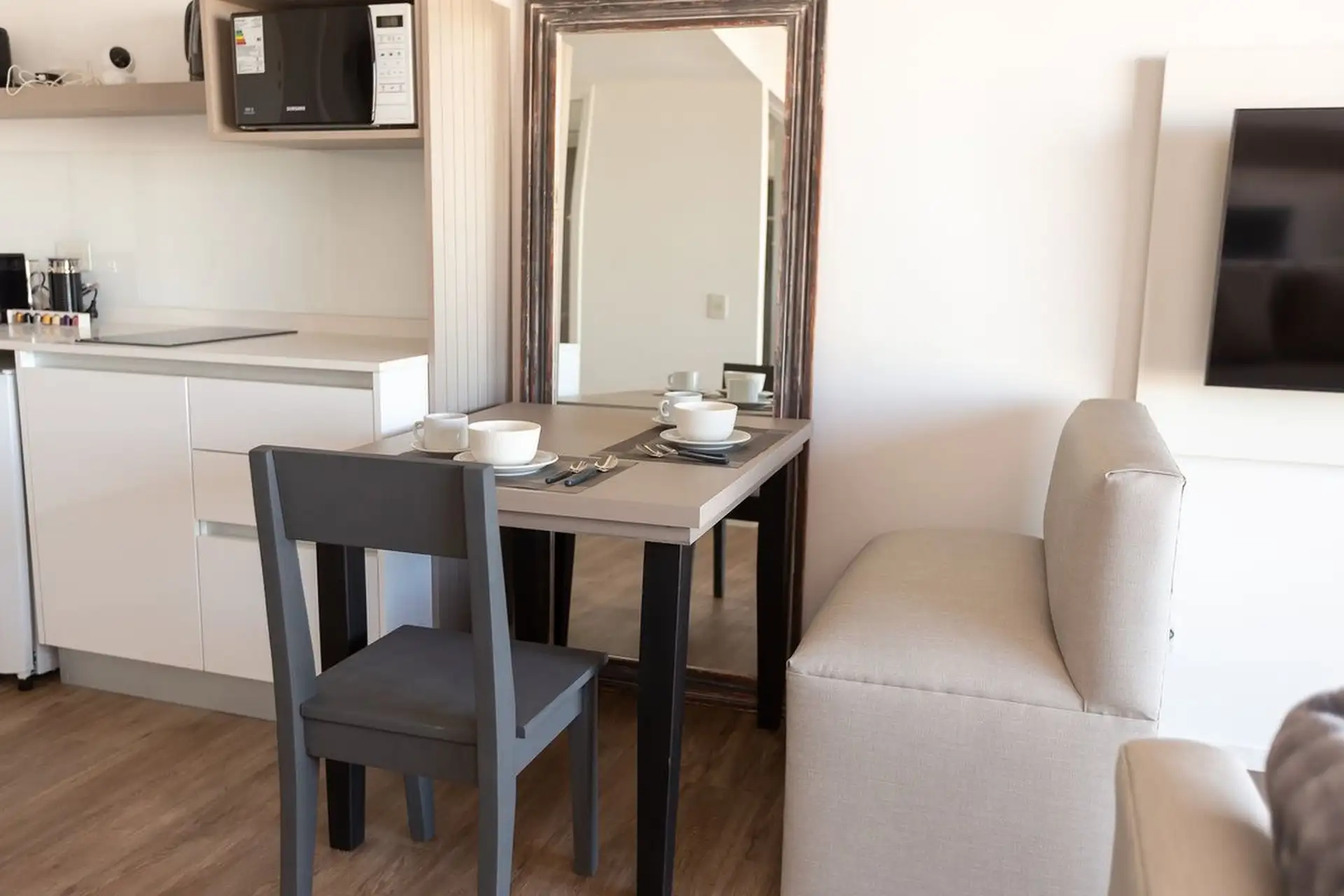 Departamento amoblado en Puerto Madero, en el piso 30+. Cocina semi-integrada equipada, con heladera y equipamiento de las marcas Samsung y Electrolux. Incluye balcón, baño completo, Smart TV y cafetera Nespresso con Aeroccino. El mobiliario incluye sillones a medida, mesa de comedor y escritorio, además de sommiers individuales King Soil y almohadas premium.
