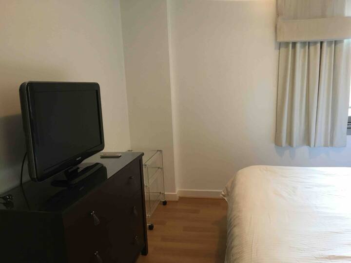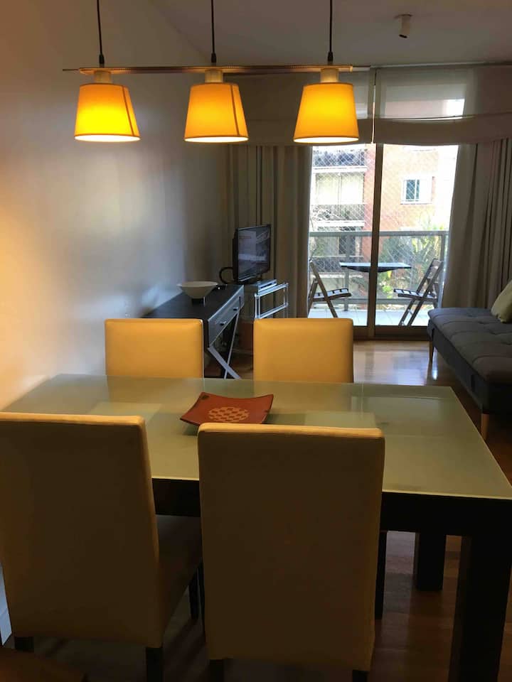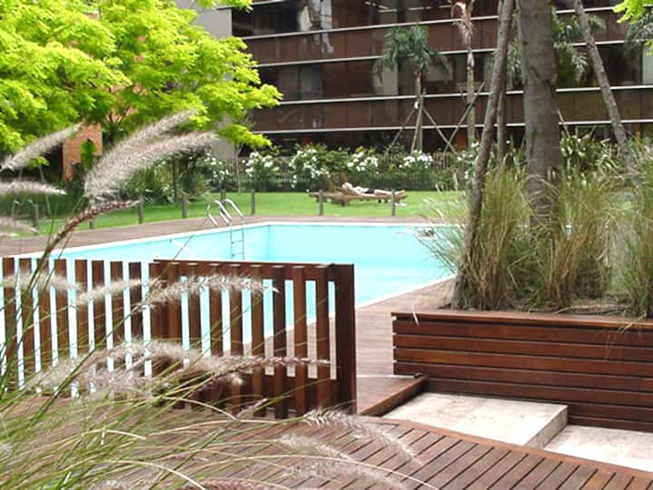 Departamento amoblado en Puerto Madero con 1 dormitorio, living, cocina y 1 baño. El alojamiento está equipado para 3 pasajeros: el tercer huésped duerme en el living. Cuenta con aire acondicionado y acceso a piscina climatizada, gimnasio, sauna y seguridad 24 horas.