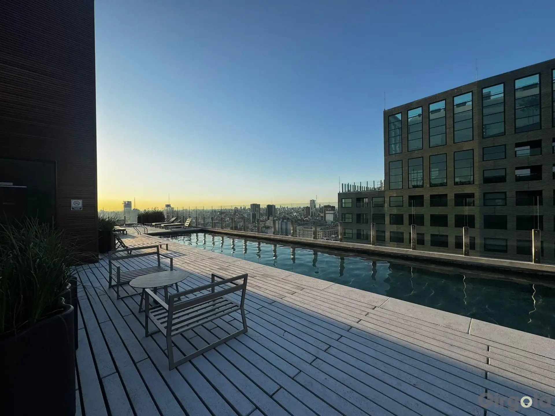 Departamento monoambiente en Puerto Madero, en la calle Venezuela, en el edificio Quartier. Tiene 35 m² de superficie total, con 31 m² cubiertos. El edificio cuenta con amenities. La unidad tiene un espacio para una moto. Medidas aproximadas.