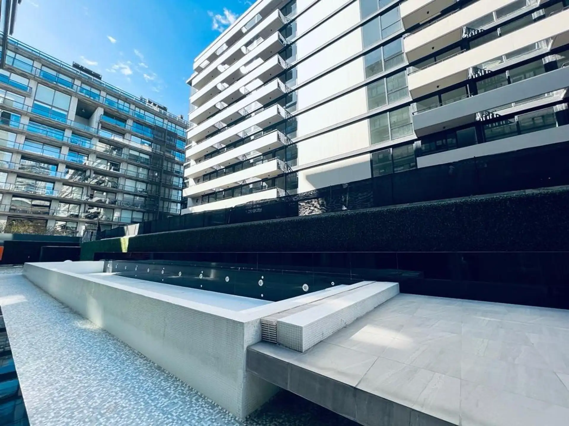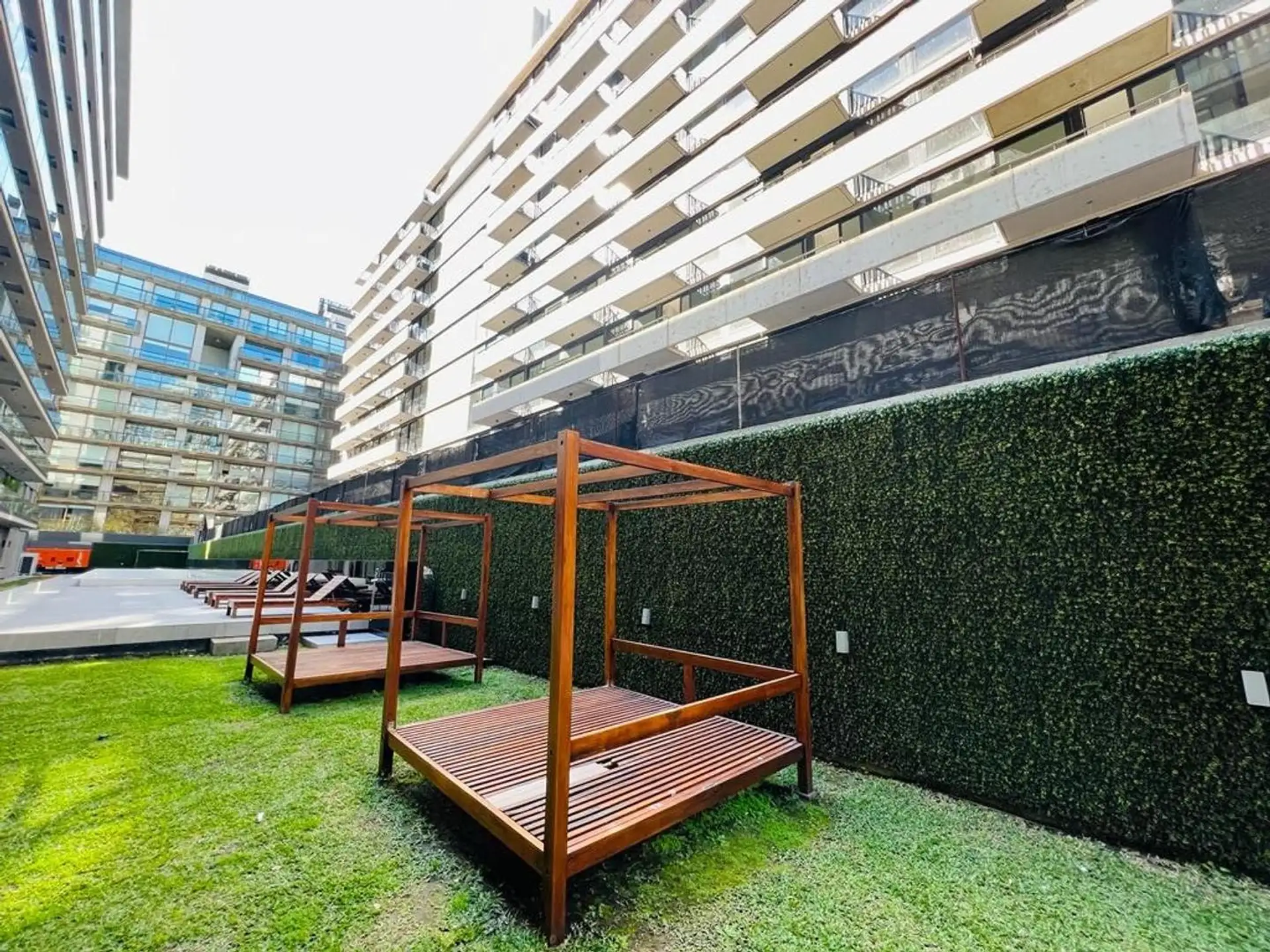 Apartamento de 2 ambientes em Puerto Madero, com 1 dormitório, mobiliado e pronto para entrada direta. Tem sala e cozinha integradas, lavabo de recepção, banheiro completo, varanda corrida (na sala e no dormitório) e área de lavanderia com lavadora. O apartamento conta com Wi-Fi e TV, e inclui vaga de garagem. O prédio oferece segurança 24 horas, piscina externa de temporada, centro de fitness e salão compartilhado, jardim e solário, além de acessibilidade para pessoas com mobilidade reduzida.