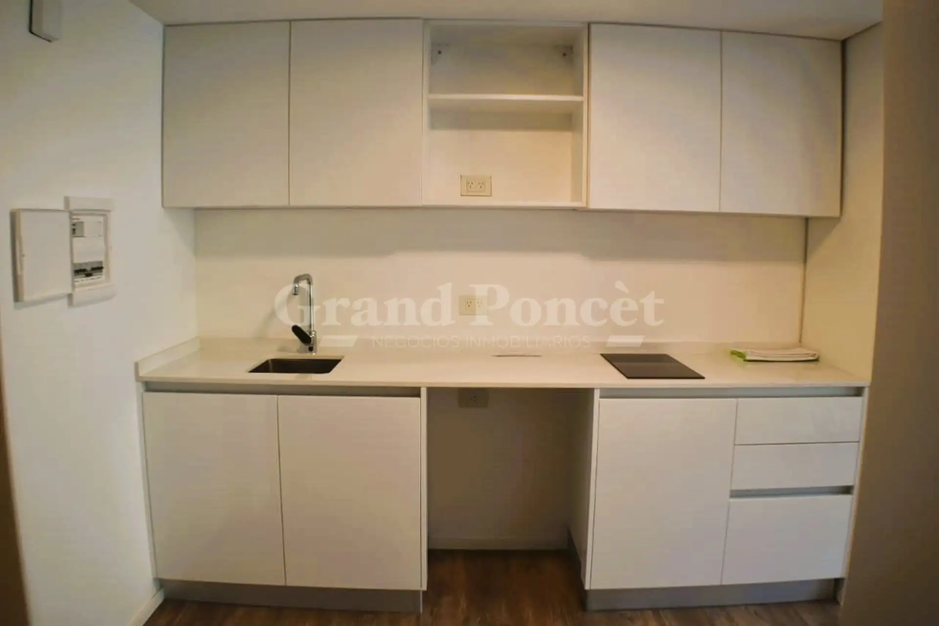Departamento de 1 ambiente con balcón en el Quartier del Bajo, en un cuarto piso, orientación sudeste. Incluye cocina incorporada y baño con ducha. El departamento tiene techos de 2,60 metros de altura. El Quartier del Bajo se compone de dos torres gemelas con amenities en los últimos pisos y cocheras en tres subsuelos comunes.