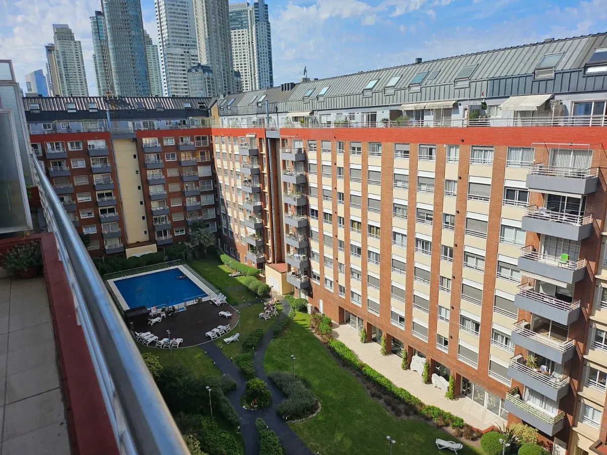 Departamento de 2 ambientes tipo dúplex en Puerto Madero, en el edificio Terrazas del Puerto. Orientación oeste con vista a la pileta y a los jardines del interior del complejo; aire acondicionado frío-calor en todos los ambientes. En la primera planta cuenta con living-comedor, cocina abierta, toilette y balcón terraza; en la segunda planta, dormitorio con techo abuhardillado y baño completo. El complejo dispone de 2 piscinas (una climatizada), jacuzzi, gimnasio, laundry, SUM y vigilancia 24 h.