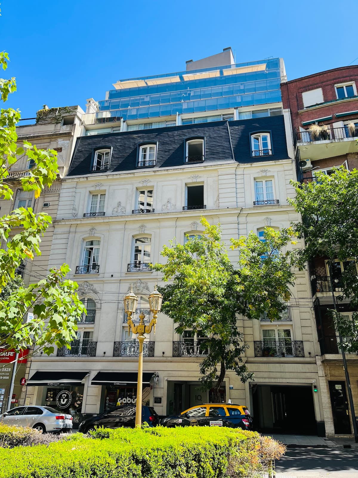Departamento monoambiente en edificio francés, reciclado. Está ubicado al frente de Plaza Vicente López, en Recoleta. Cuenta con pileta, spa, gimnasio y laundry, con acceso a las áreas comunes del edificio.