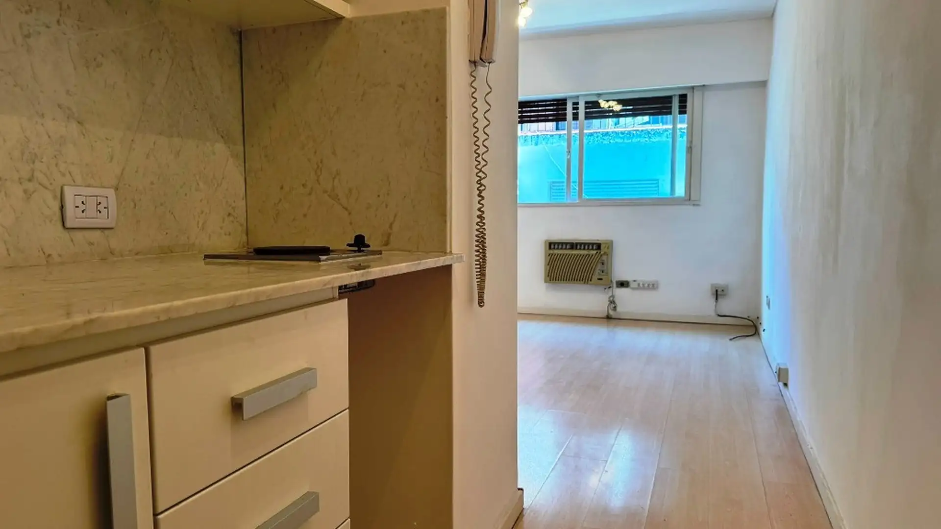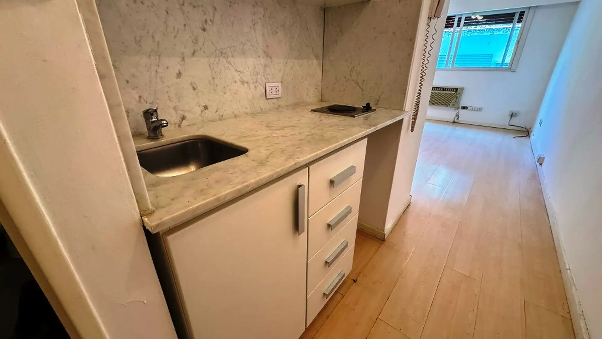 Monoambiente en piso 11, lateral, con orientación noroeste, en Retiro. Tiene 22,70 m² (23 m²) de superficie total. Incluye kitchenette y baño completo, con pasillo de ingreso (2,90 x 1,00 m) y ambiente principal (4,23 x 3,35 m). El edificio tiene 14 pisos, seguridad 24 hs con vigilancia, front desk/conserjería y encargado, 4 ascensores, laundry y terraza accesible. No acepta mascotas. Expensas: $215.000.