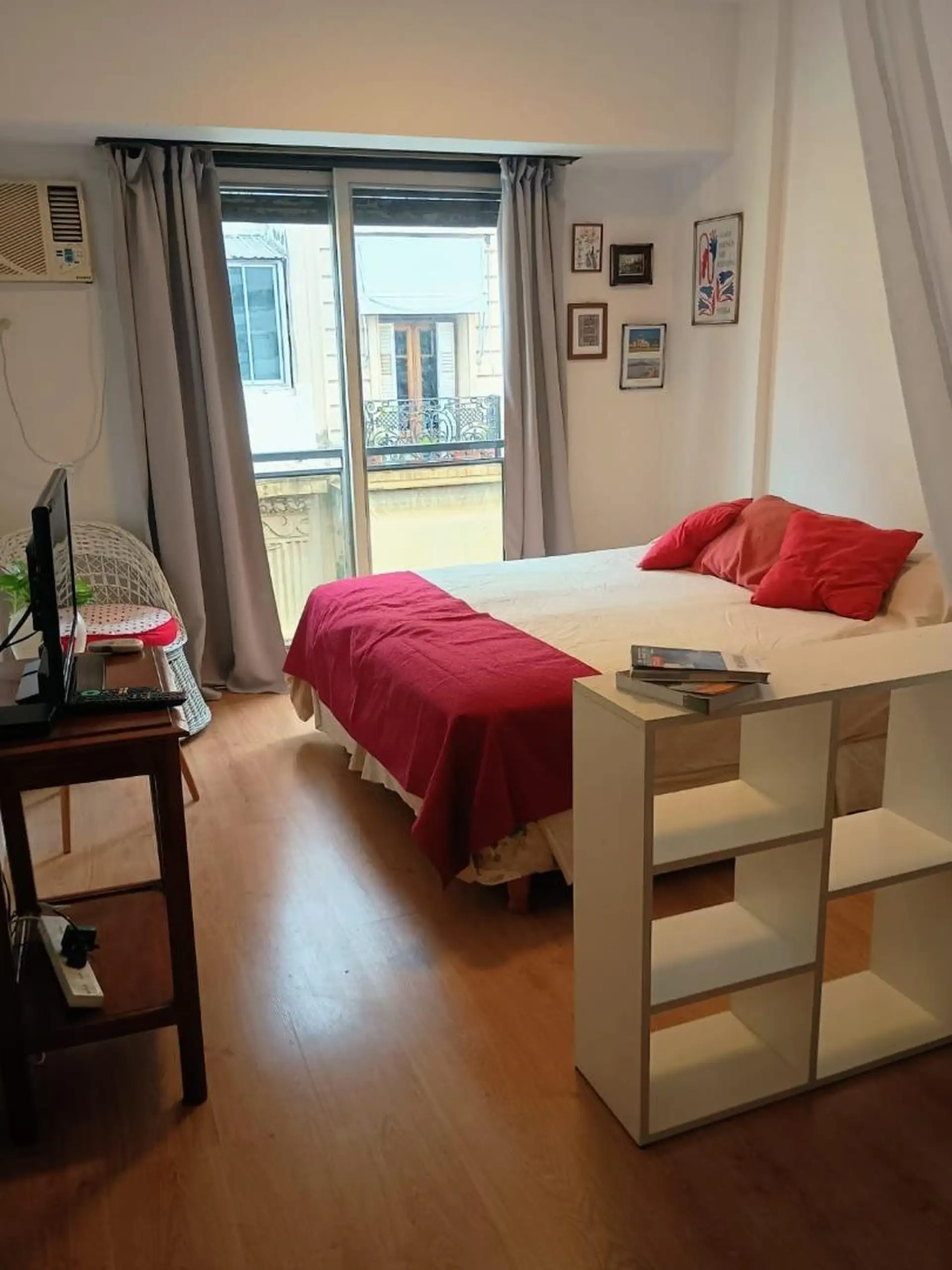 Departamento tipo estudio en alquiler temporario en Retiro. Totalmente amoblado y equipado, con comedor diario y balcón francés, cocina integrada con heladera bajo mesada y baño completo con bañera. Cuenta con aire acondicionado y calefacción central; TV de 32". El alquiler incluye expensas, WiFi, ABL y AYSA; el inquilino abona luz y gas. Capacidad para 2 personas. No acepta mascotas.
