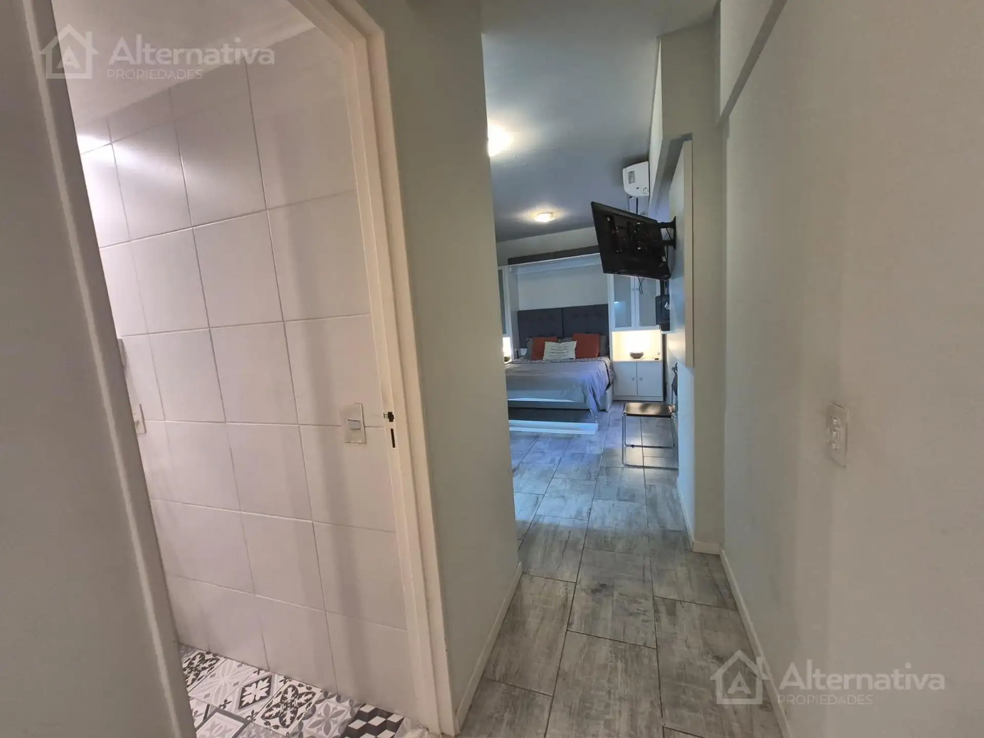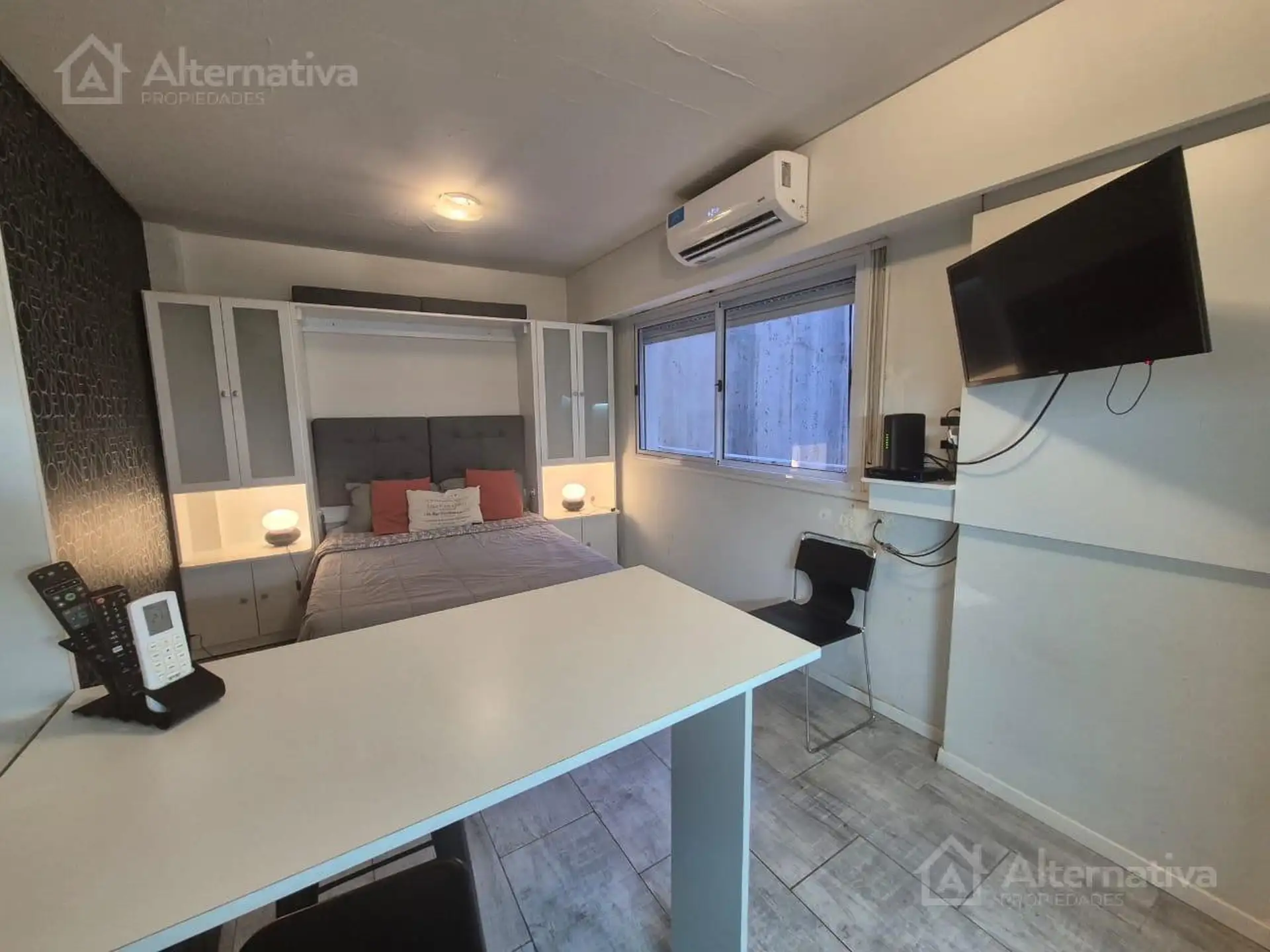 Departamento de 1 ambiente en Retiro, alquiler temporario con estadías de 1 a 12 meses, renovable. Cocina equipada con electrodomésticos y vajilla, 1 baño completo y aire acondicionado frío/calor. Se entrega reciclado y listo para habitar, con sillón, cama, mesa, sillas y blanquería, con amplio lugar de guardado. El precio paquete incluye expensas y servicios, internet y luz con tope de consumo.