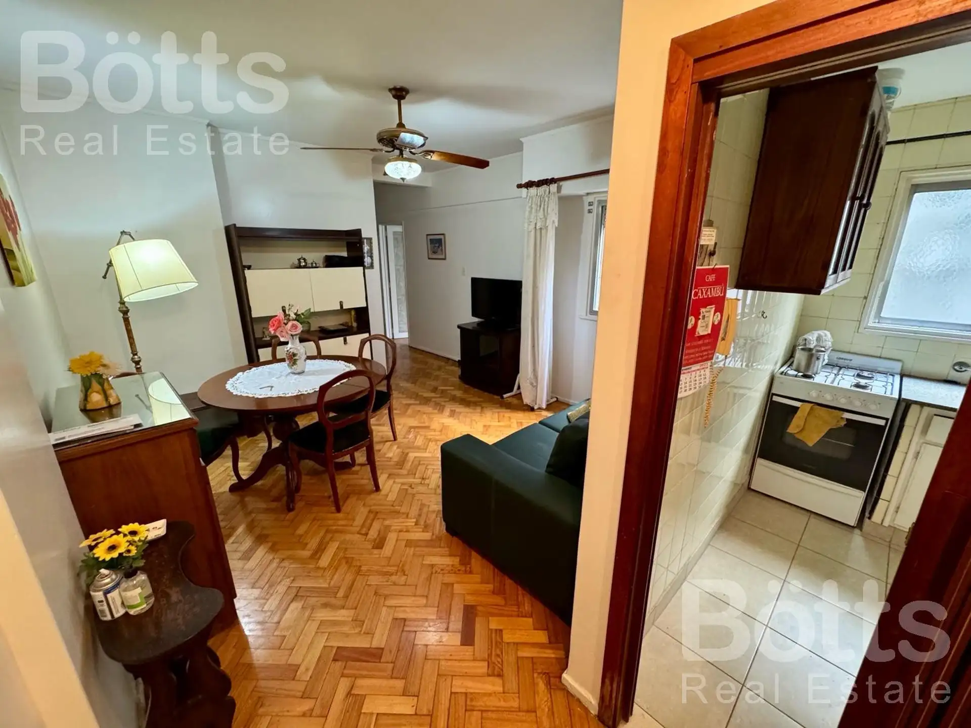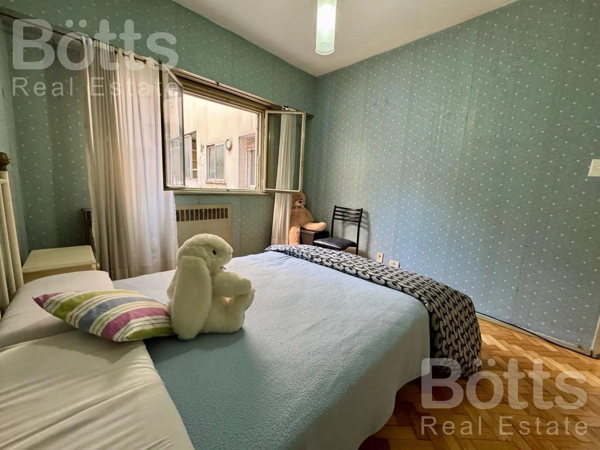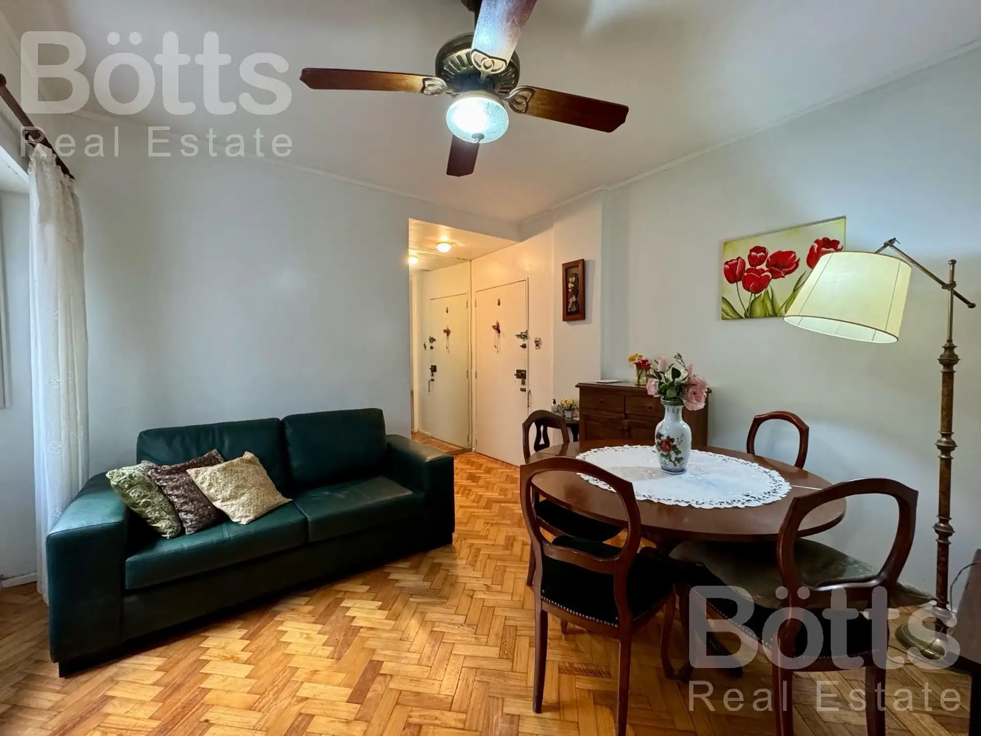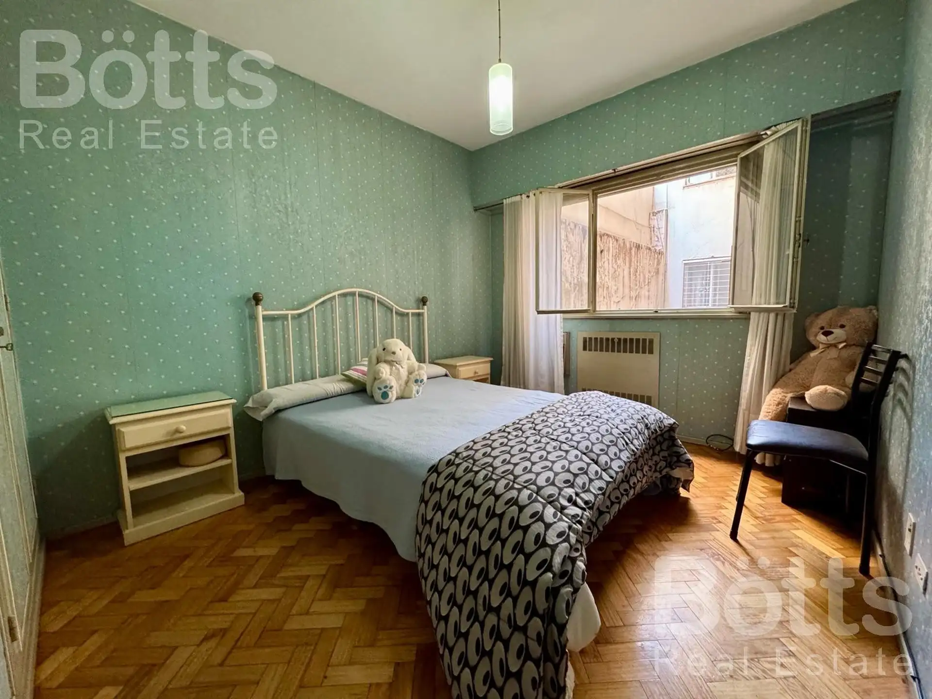 Departamento de 2 ambientes de alquiler, amoblado, en segundo piso. Edificio con dos ascensores y pisos de parquet originales. Incluye instalación para lavarropas y aire acondicionado en la habitación principal. Requisitos: garantía propietaria en CABA o seguro de caución, 1 mes adelantado y 1 mes de depósito.