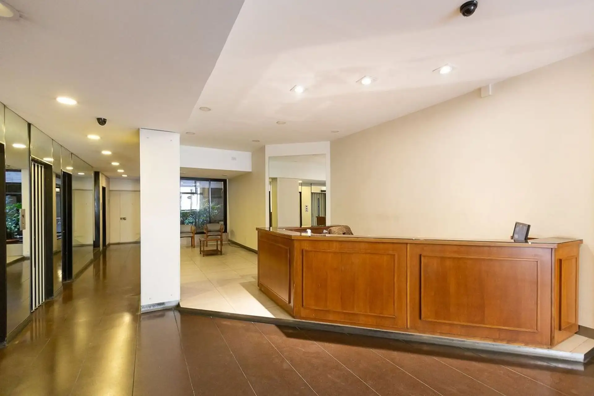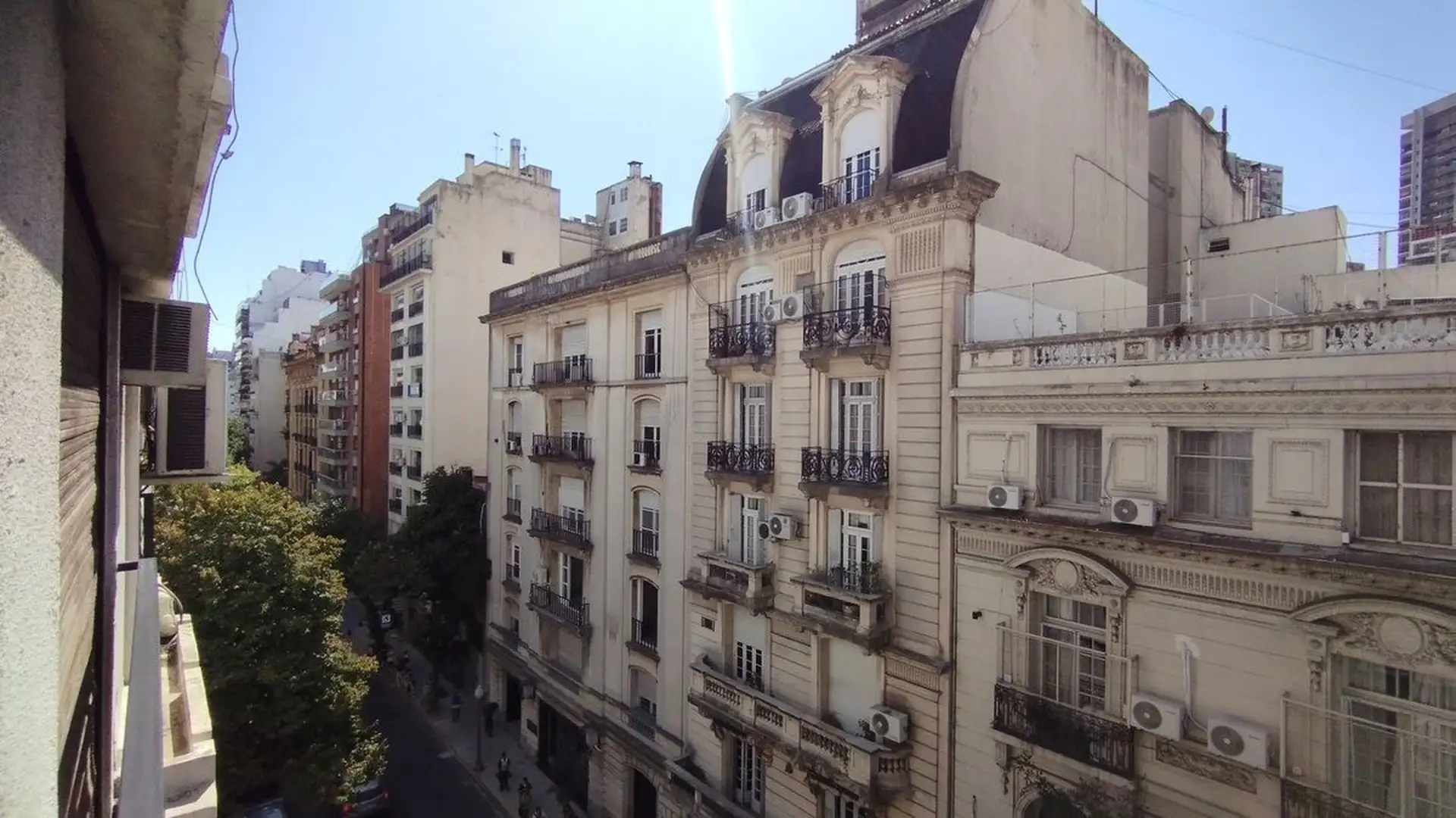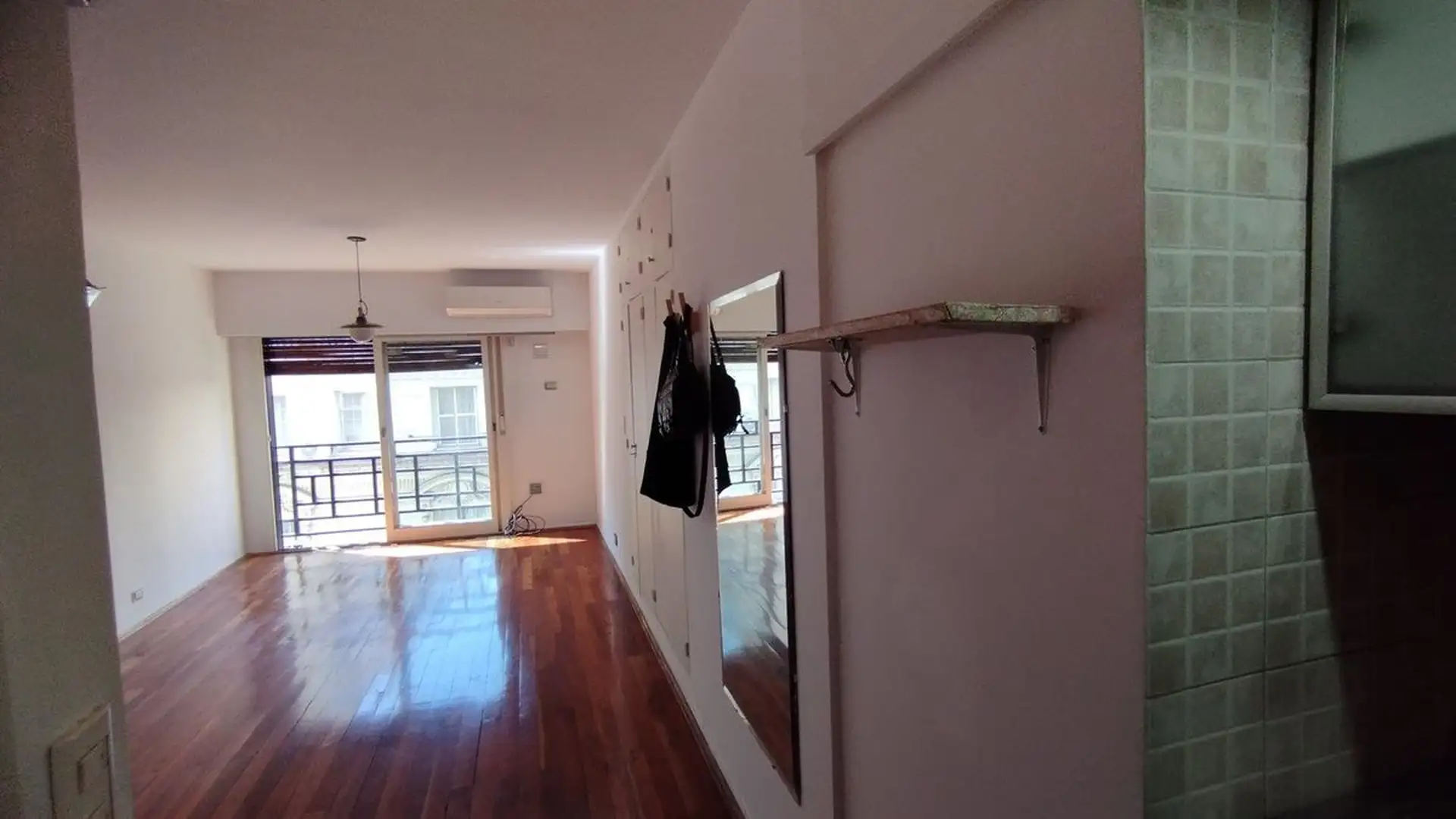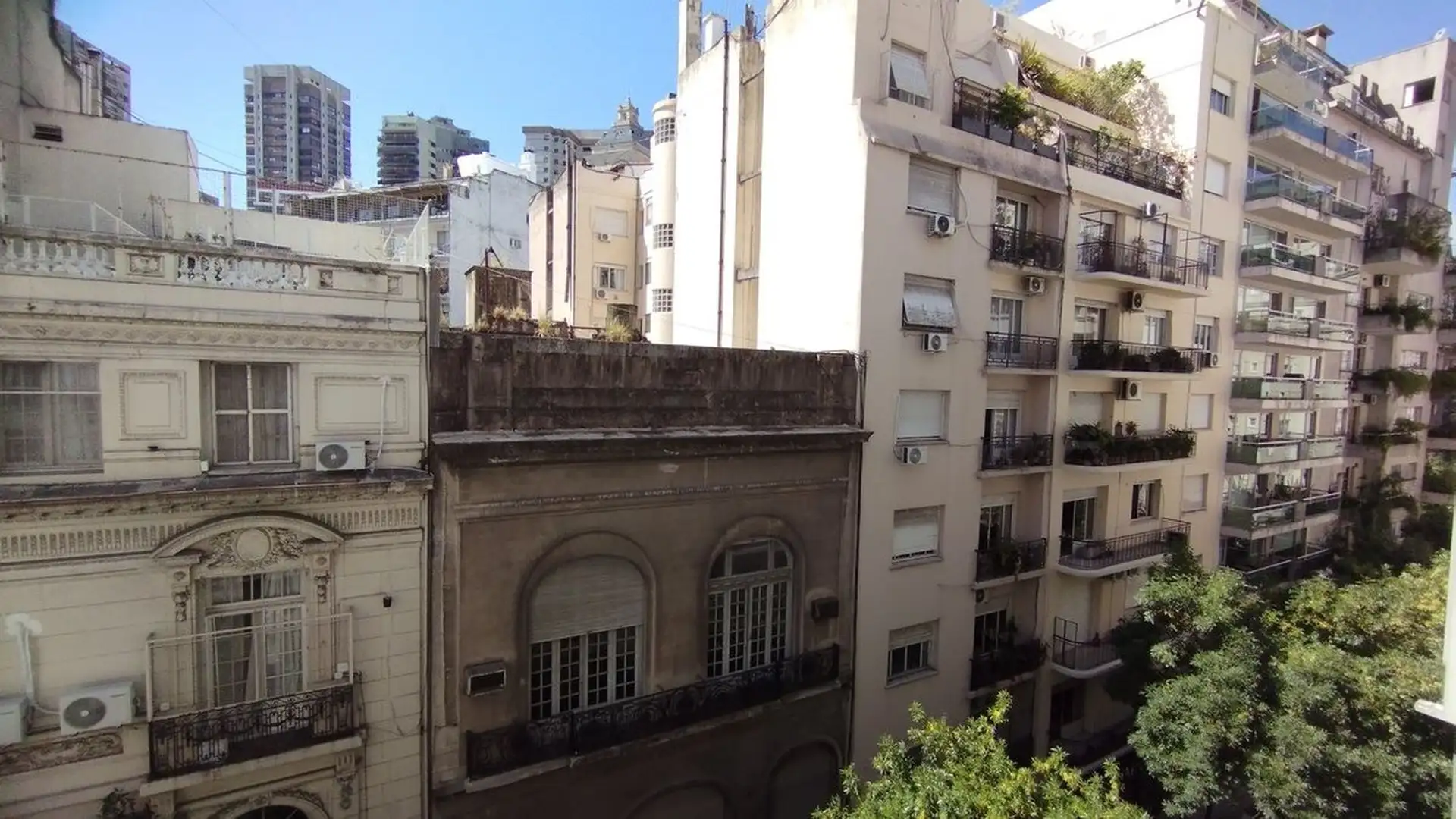 Monoambiente de 29 m² en el 5° piso, con orientación norte y ventanal con balcón francés. Piso de parquet, cocina integrada con kitchenette, baño completo y aire acondicionado frío-calor. Se entrega recién pintado. El edificio cuenta con tres ascensores y encargado con vivienda. La unidad está sobre calle Juncal, entre Suipacha y Esmeralda.