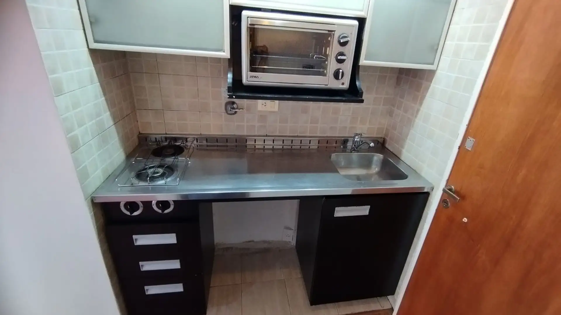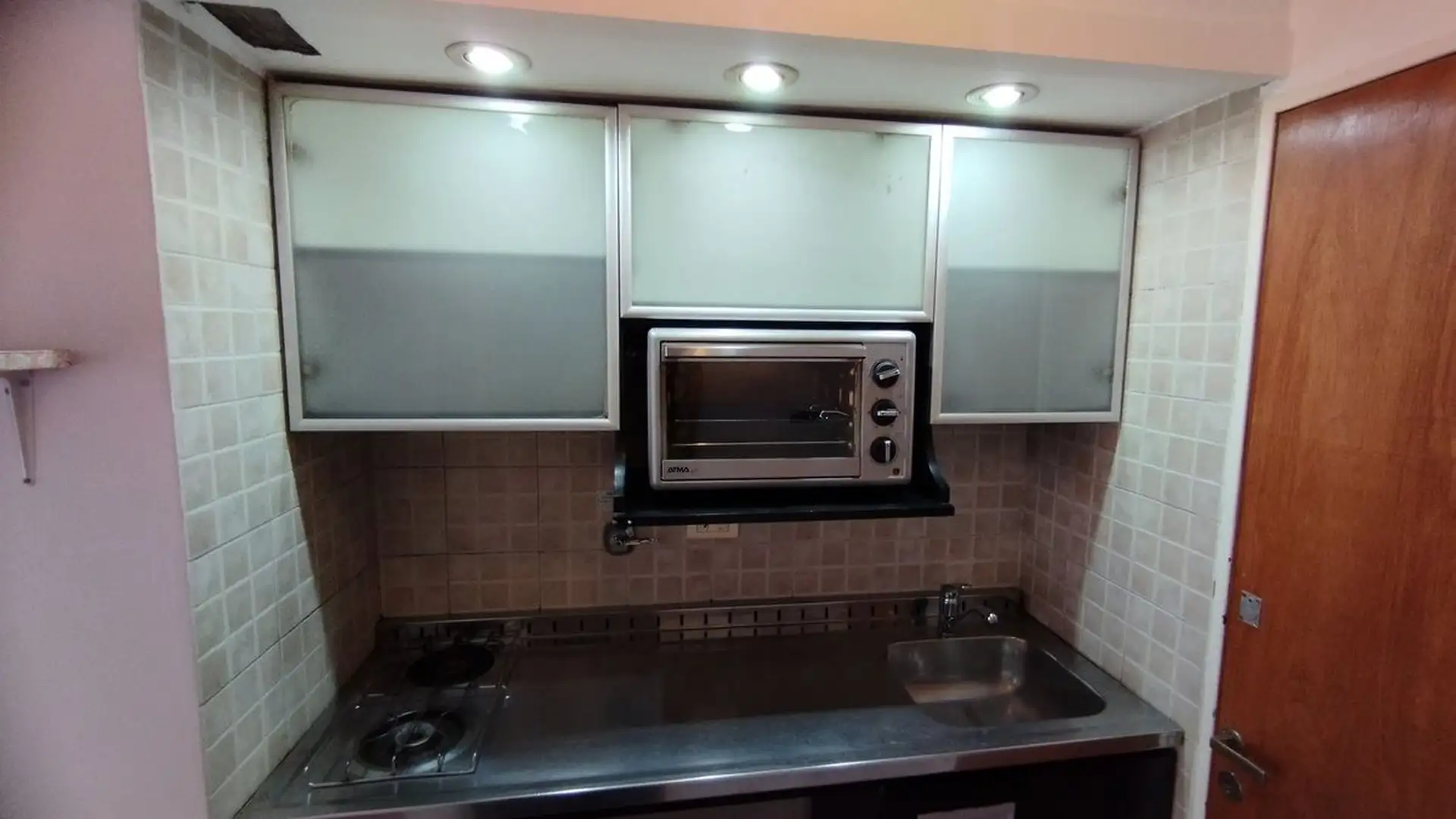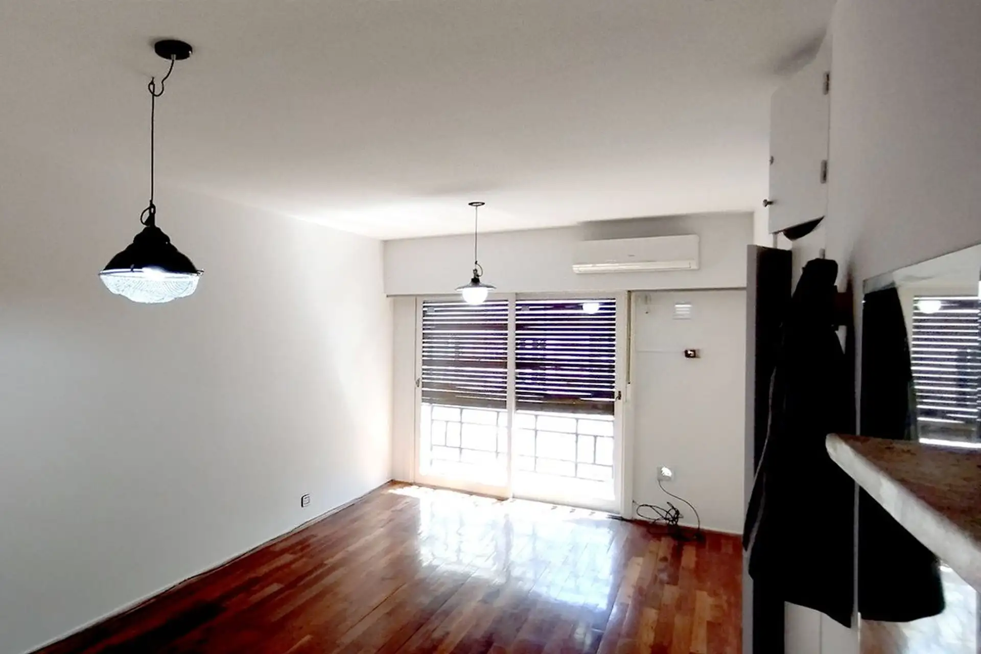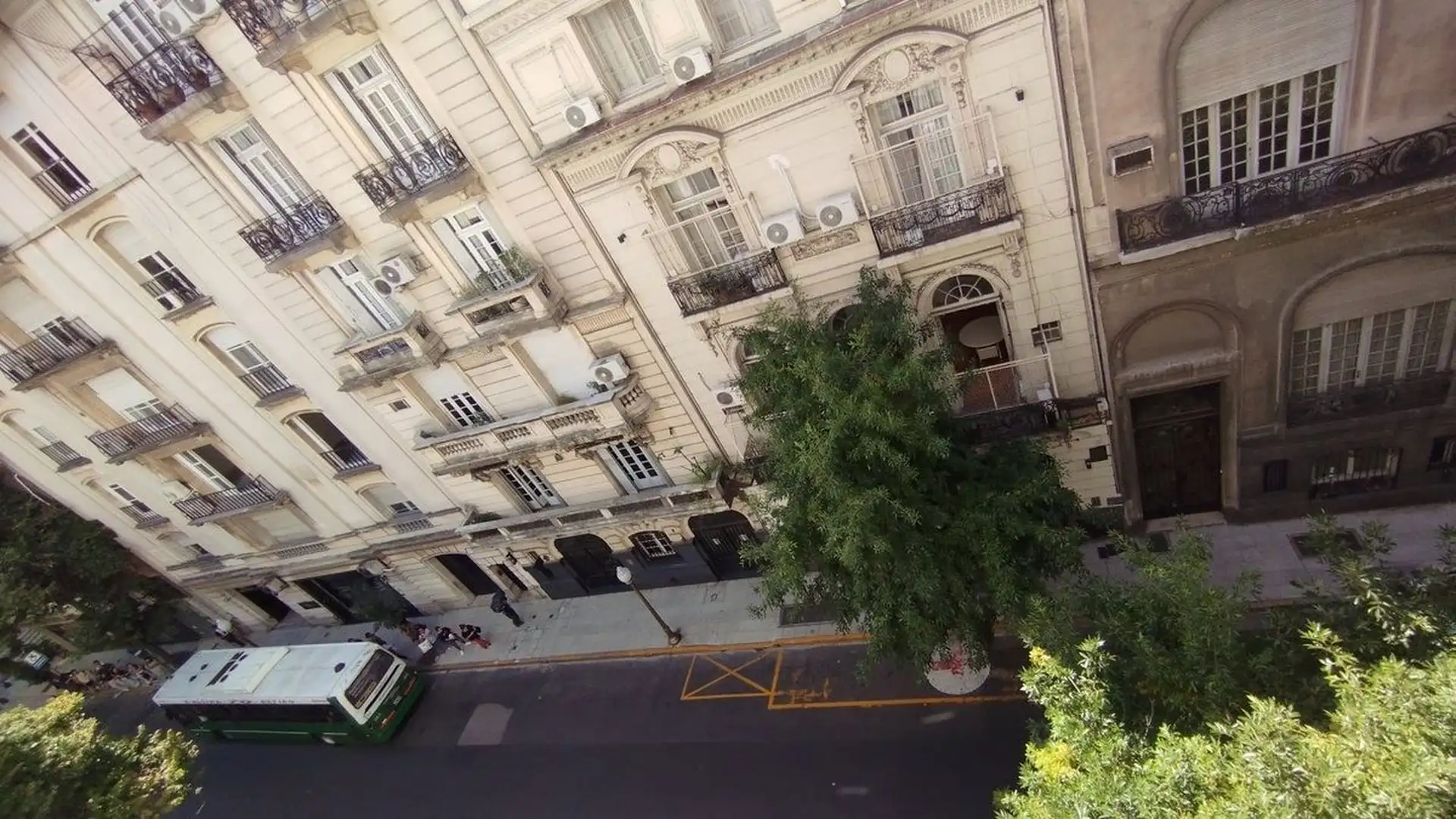 Monoambiente de 29 m² en el 5° piso, con orientación norte y ventanal con balcón francés. Piso de parquet, cocina integrada con kitchenette, baño completo y aire acondicionado frío-calor. Se entrega recién pintado. El edificio cuenta con tres ascensores y encargado con vivienda. La unidad está sobre calle Juncal, entre Suipacha y Esmeralda.