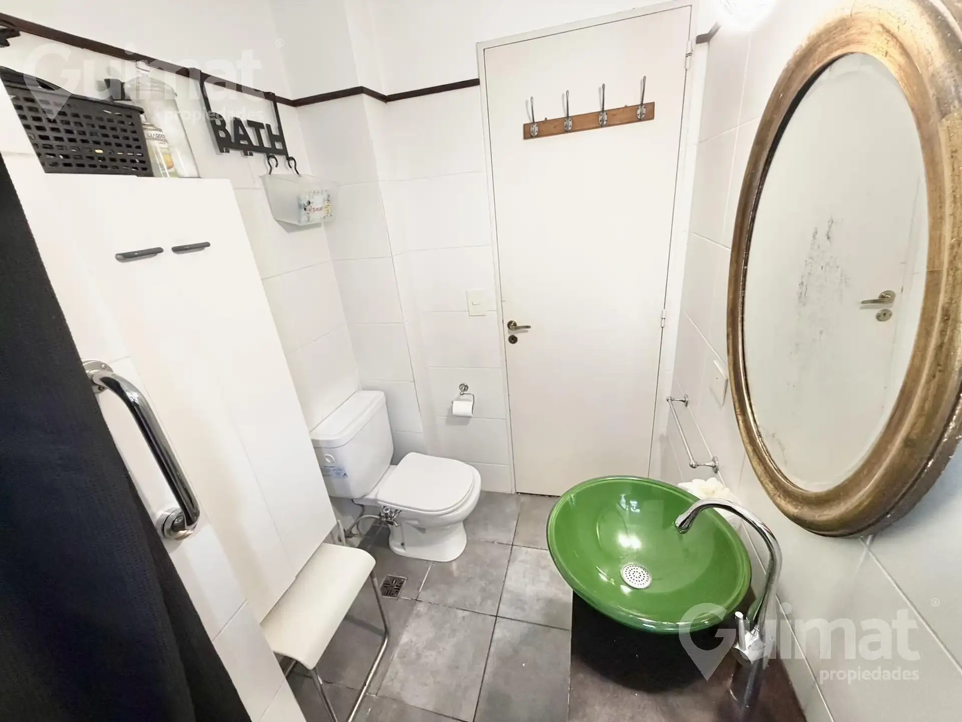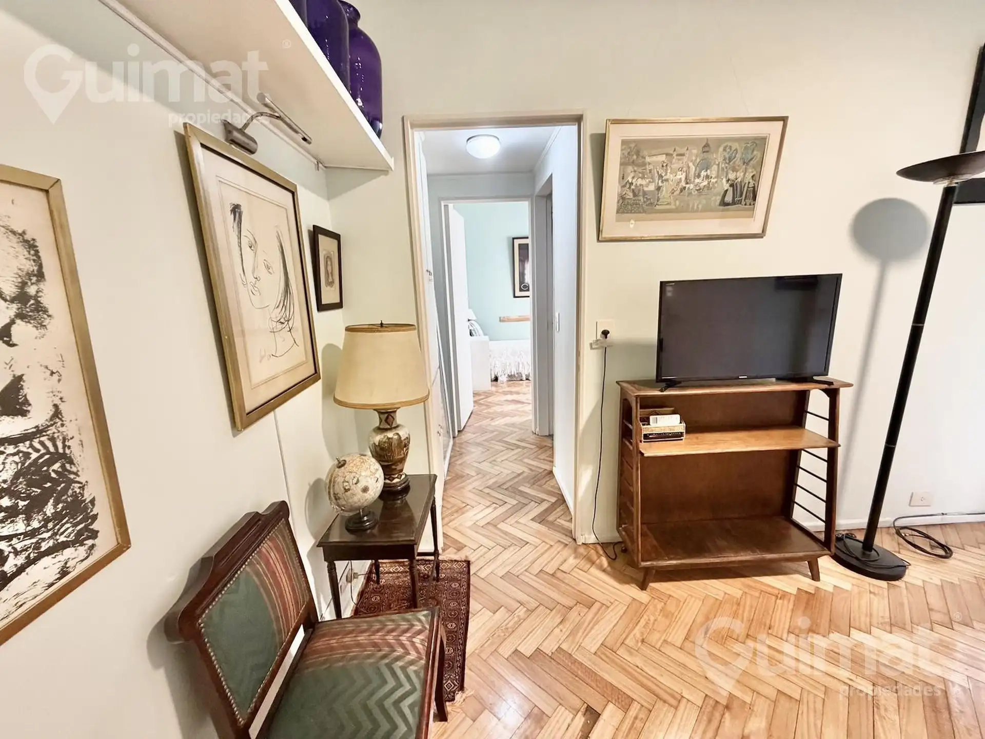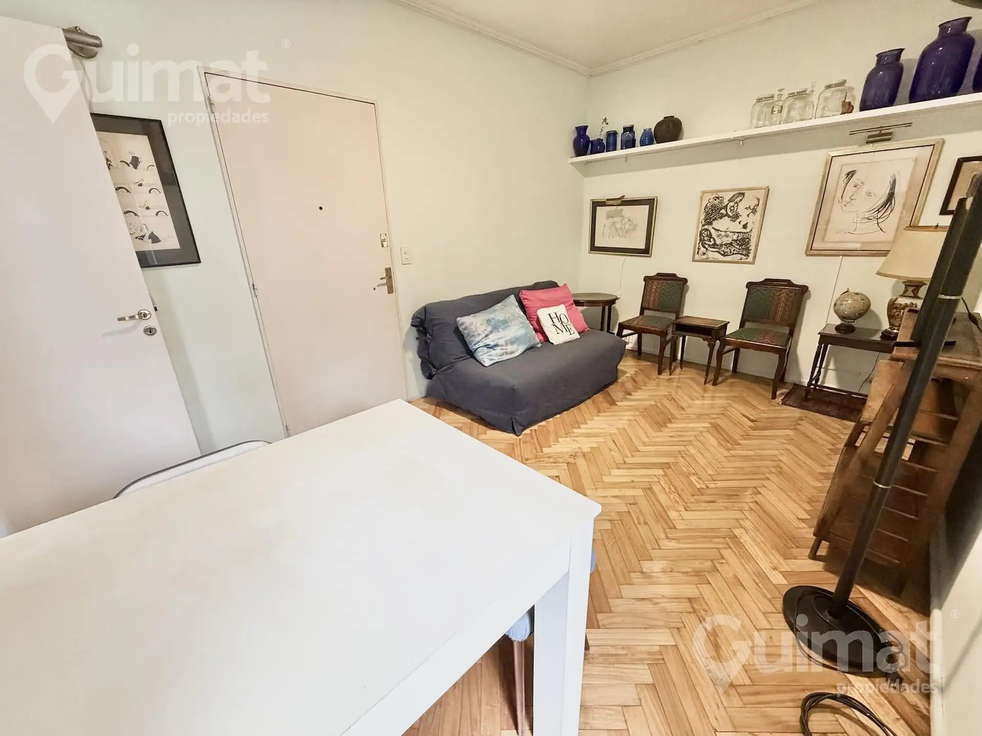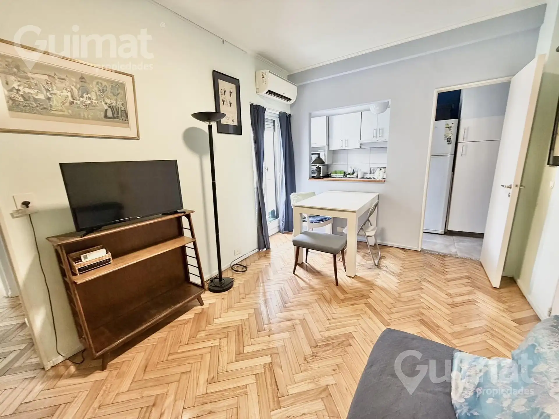 Departamento de 1 dormitorio amoblado en piso 9 en Retiro. Ingreso a living-comedor con pisos de parquet y equipo split frío/calor. Cocina aparte con pasaplatos, muebles completos sobre y bajo mesada, artefacto a gas natural y termotanque de gas natural, hall con placard, dormitorio con pisos de parquet y placard, baño con mesada y bacha, y balcón francés. El alquiler incluye todo menos luz y gas. Requiere alquiler mínimo de 6 meses, depósito de 2 meses y no admite mascotas; máximo 2 personas, a