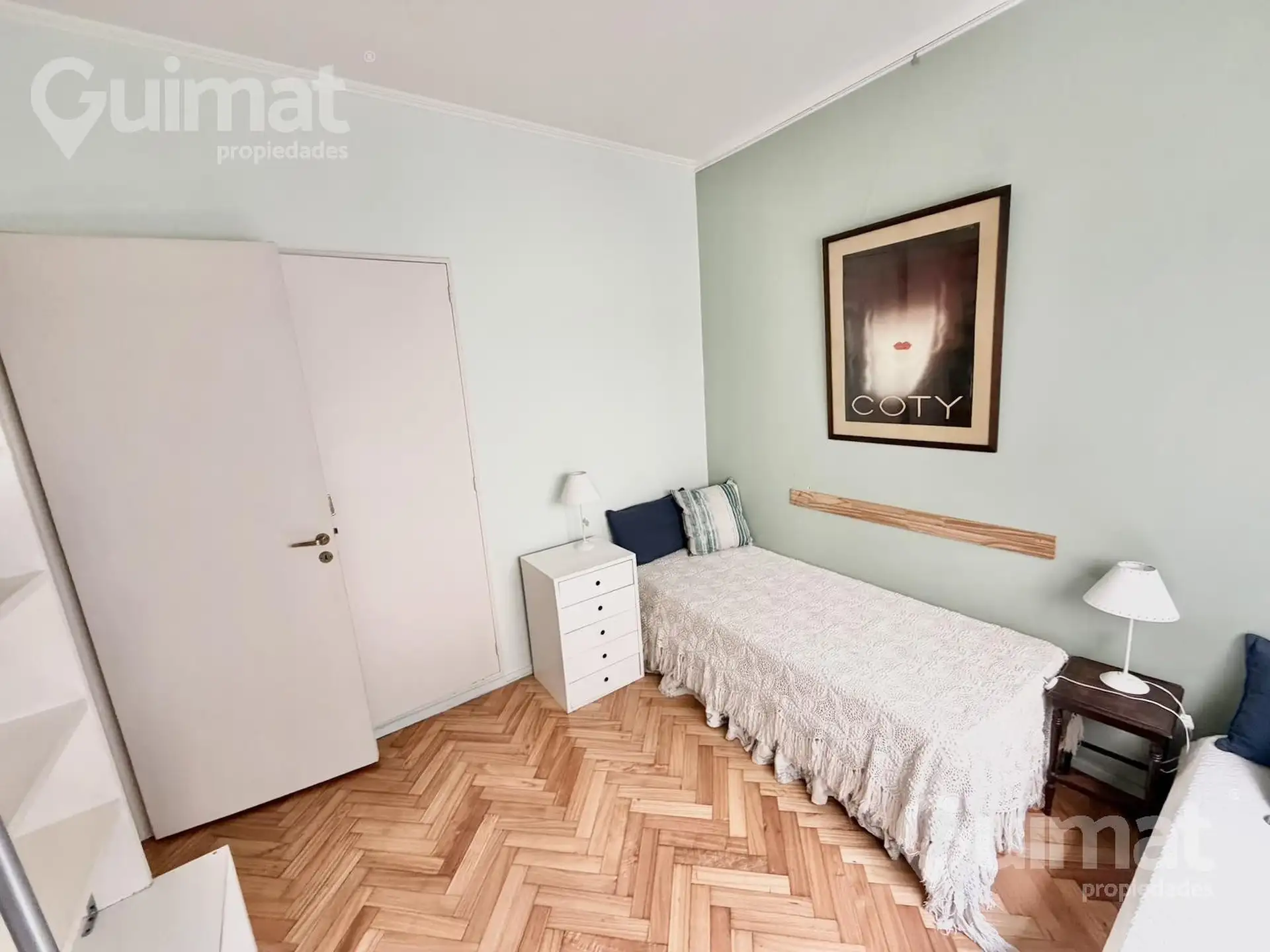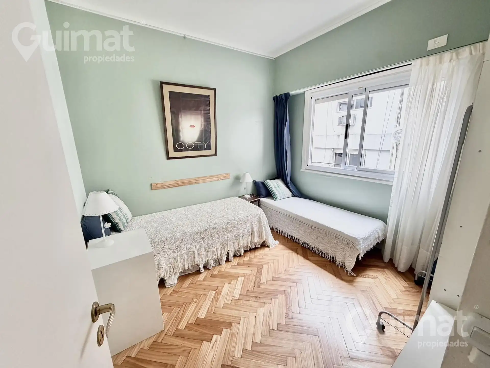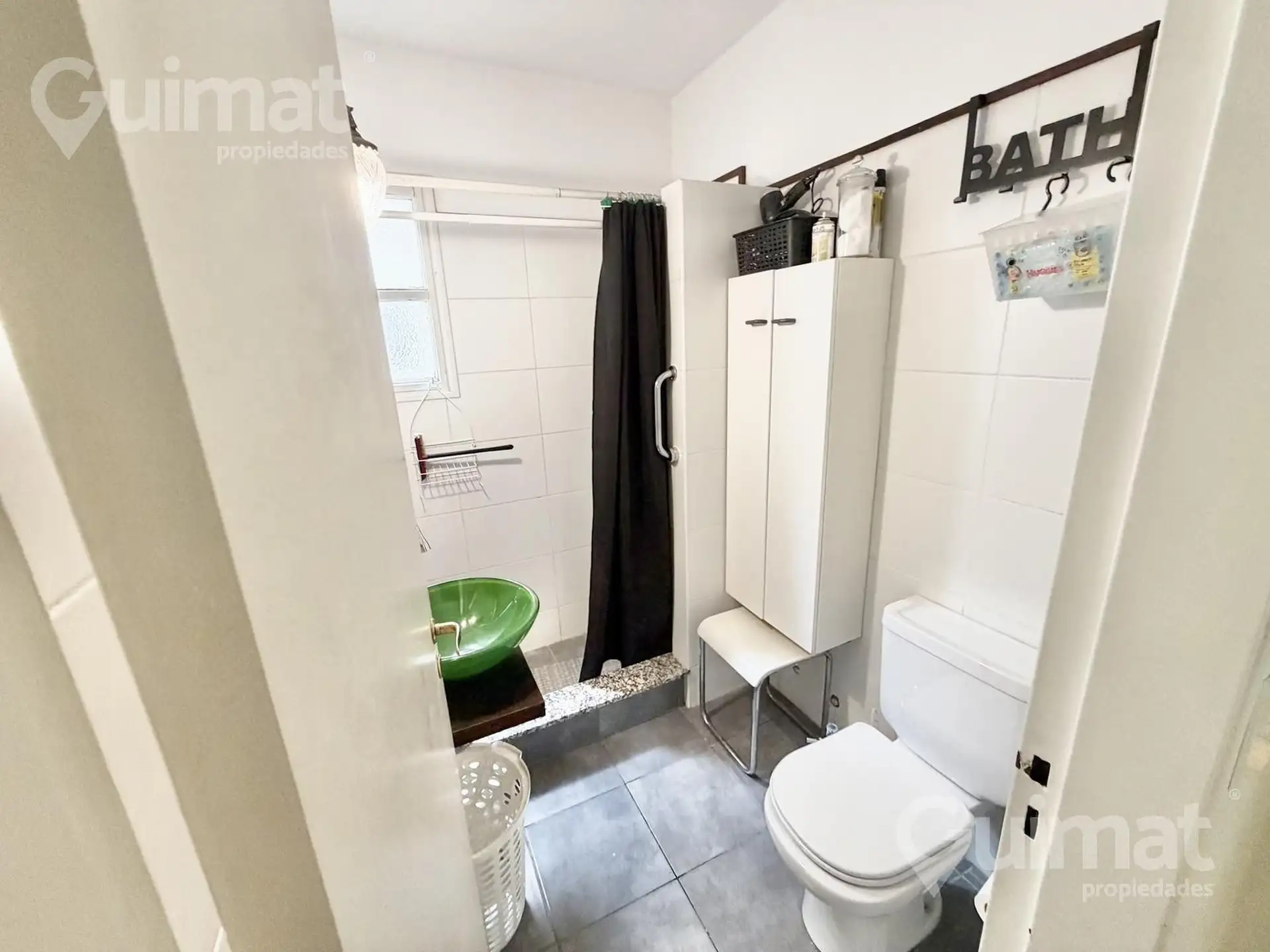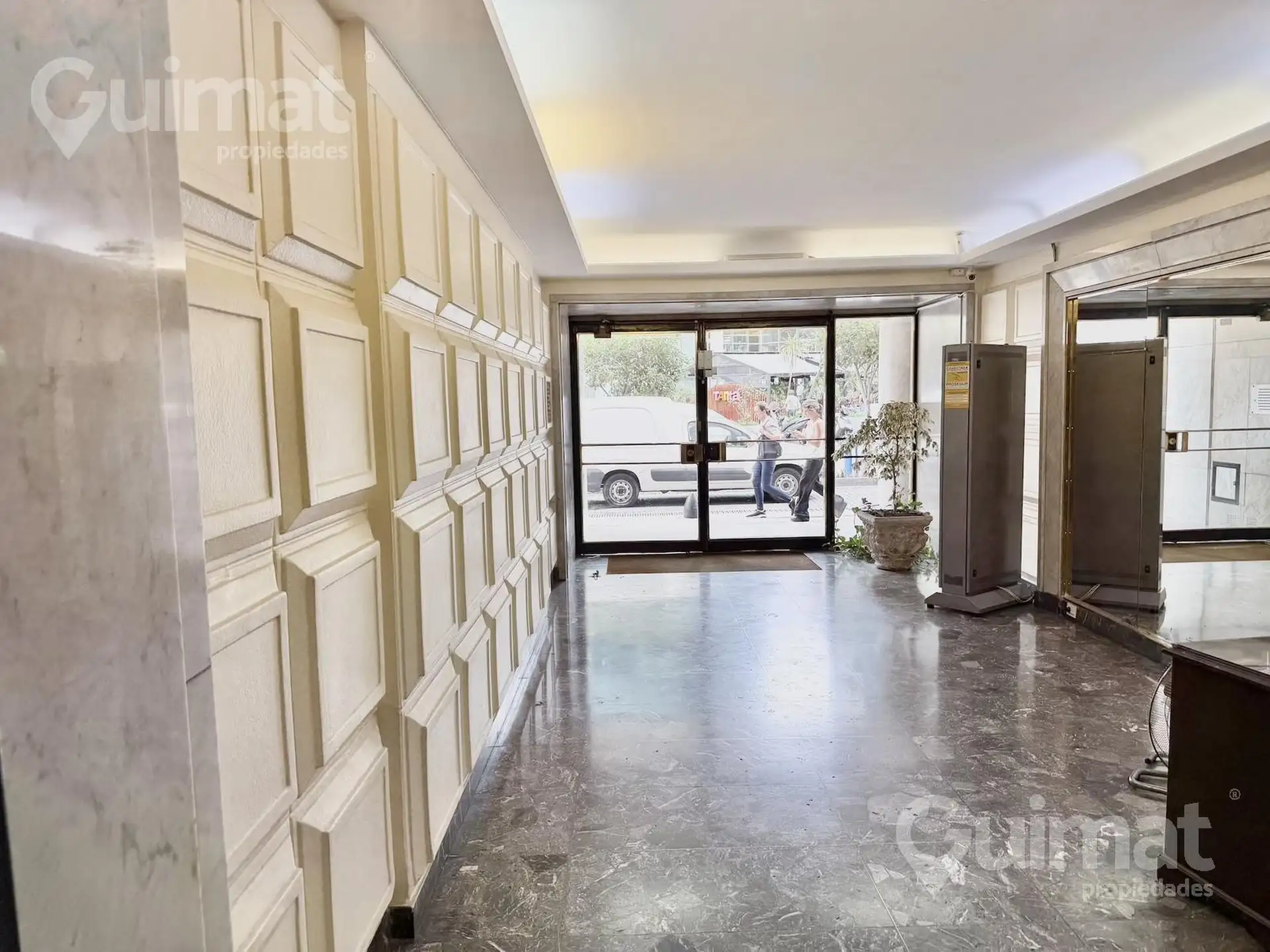 Departamento de 1 dormitorio amoblado en piso 9 en Retiro. Ingreso a living-comedor con pisos de parquet y equipo split frío/calor. Cocina aparte con pasaplatos, muebles completos sobre y bajo mesada, artefacto a gas natural y termotanque de gas natural, hall con placard, dormitorio con pisos de parquet y placard, baño con mesada y bacha, y balcón francés. El alquiler incluye todo menos luz y gas. Requiere alquiler mínimo de 6 meses, depósito de 2 meses y no admite mascotas; máximo 2 personas, a