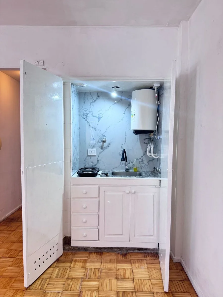 Monoambiente en alquiler en Retiro, ubicado sobre Esmeralda al 800. Tiene 18 m², está en contrafrente y en piso alto. Cocina y baño reciclados, apto profesional y listo para usar.