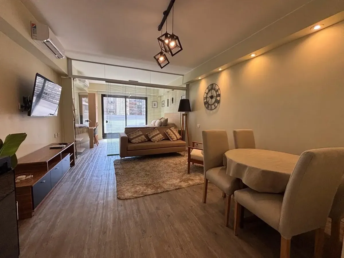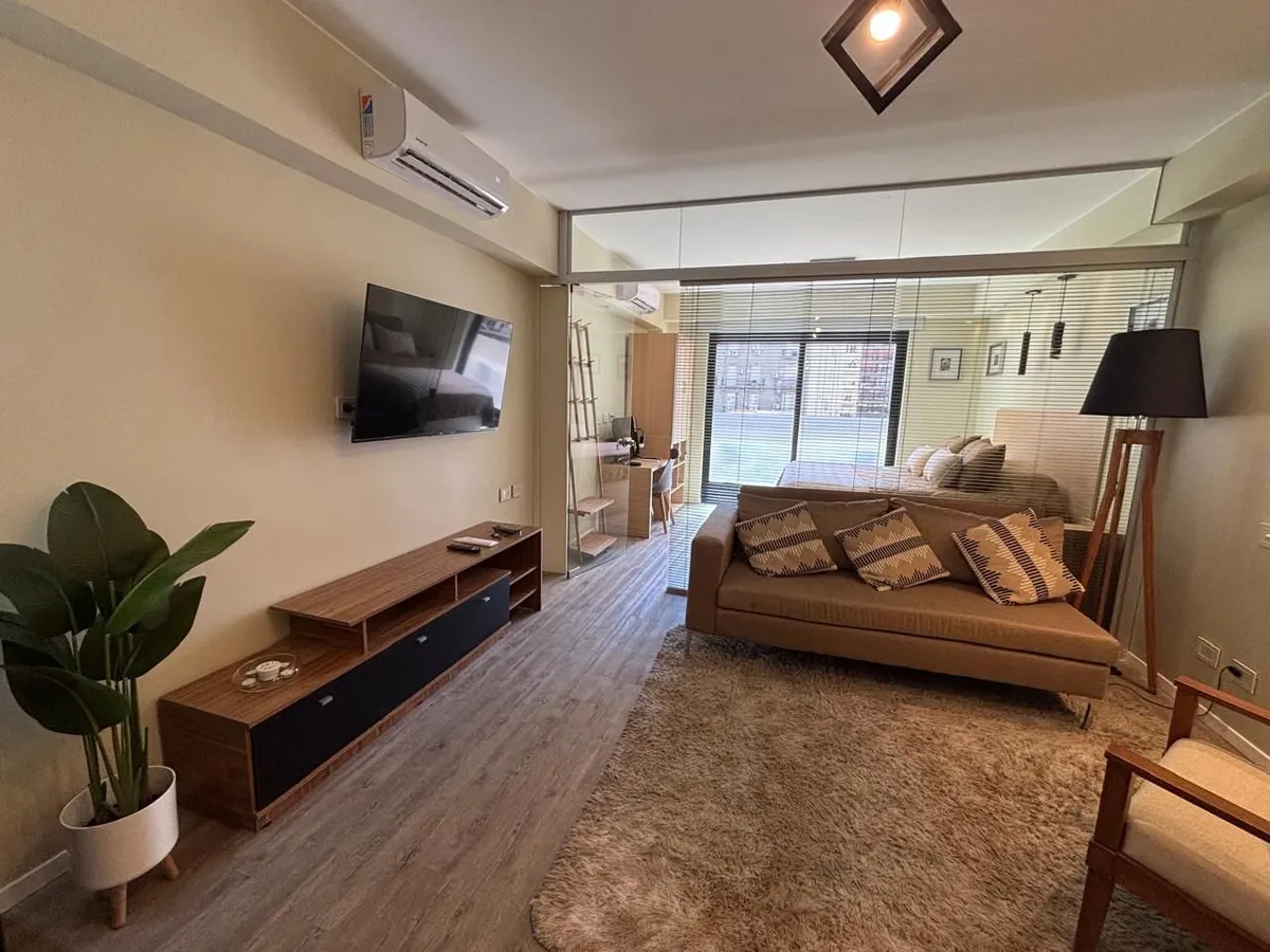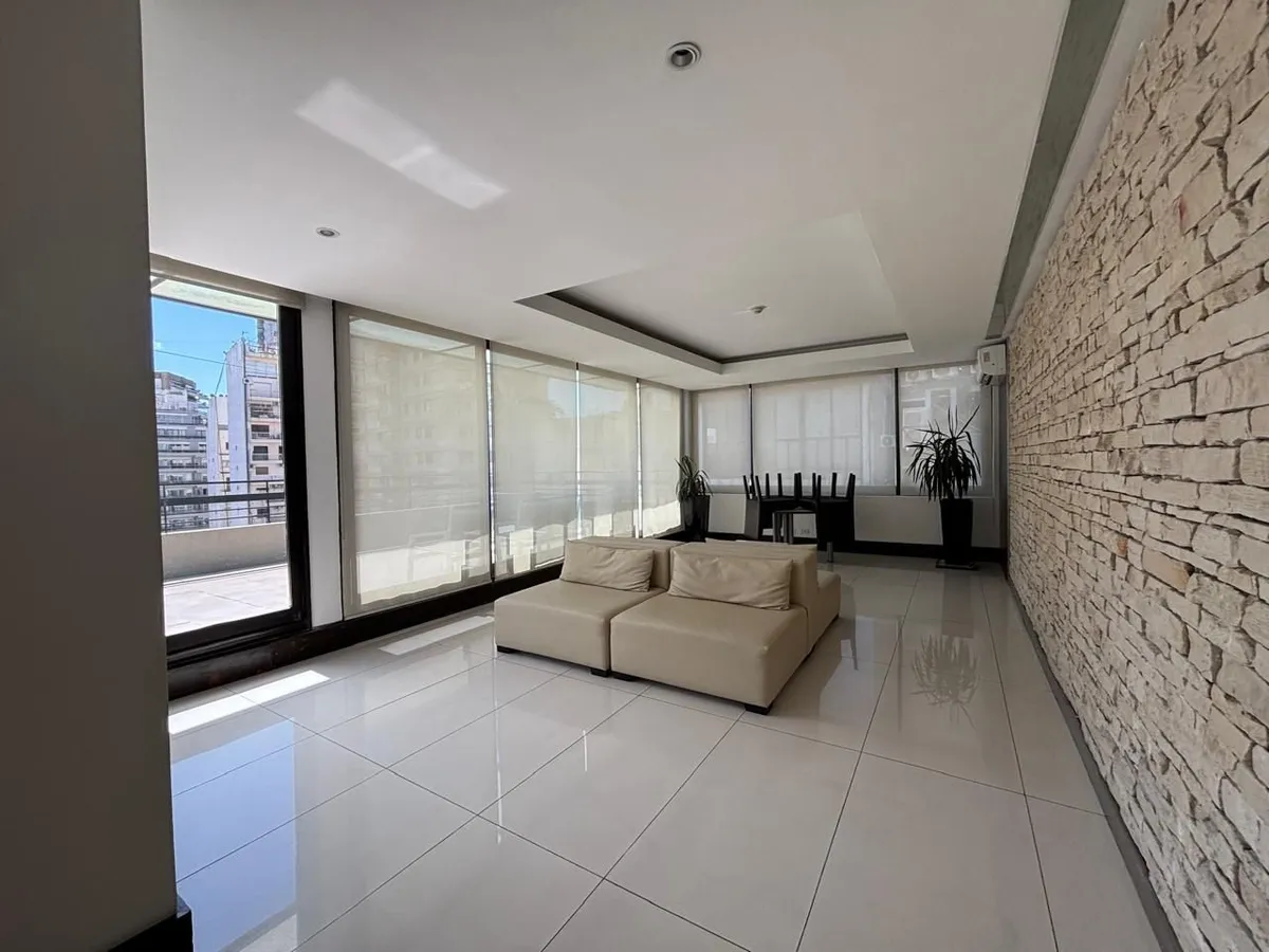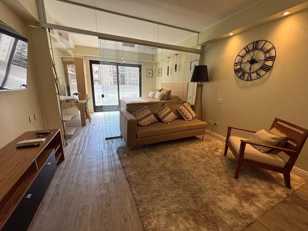 Departamento de 2 ambientes, al contrafrente, con 1 dormitorio. Incluye living comedor con salida a balcón, cocina, baño completo y dormitorio; se ofrece amoblado. Cuenta con aire acondicionado y agua caliente provista por termotanque. El edificio tiene 11 pisos, 6 departamentos por piso y 2 ascensores. Dispone de SUM, microcine, piscina cubierta, solárium con 2 jacuzzi, gimnasio, sauna, vestuarios, portero visor y wifi, con reconocimiento facial en el edificio y en el departamento.