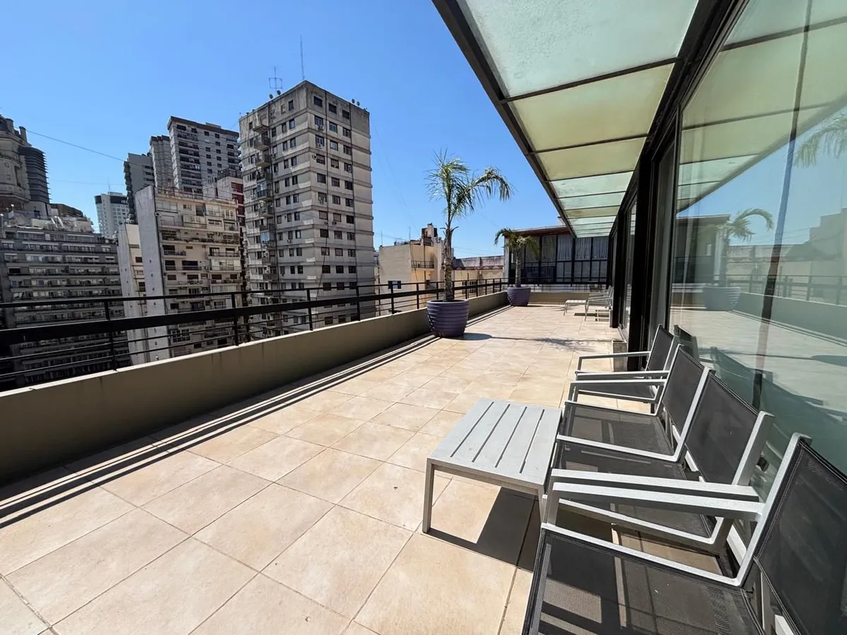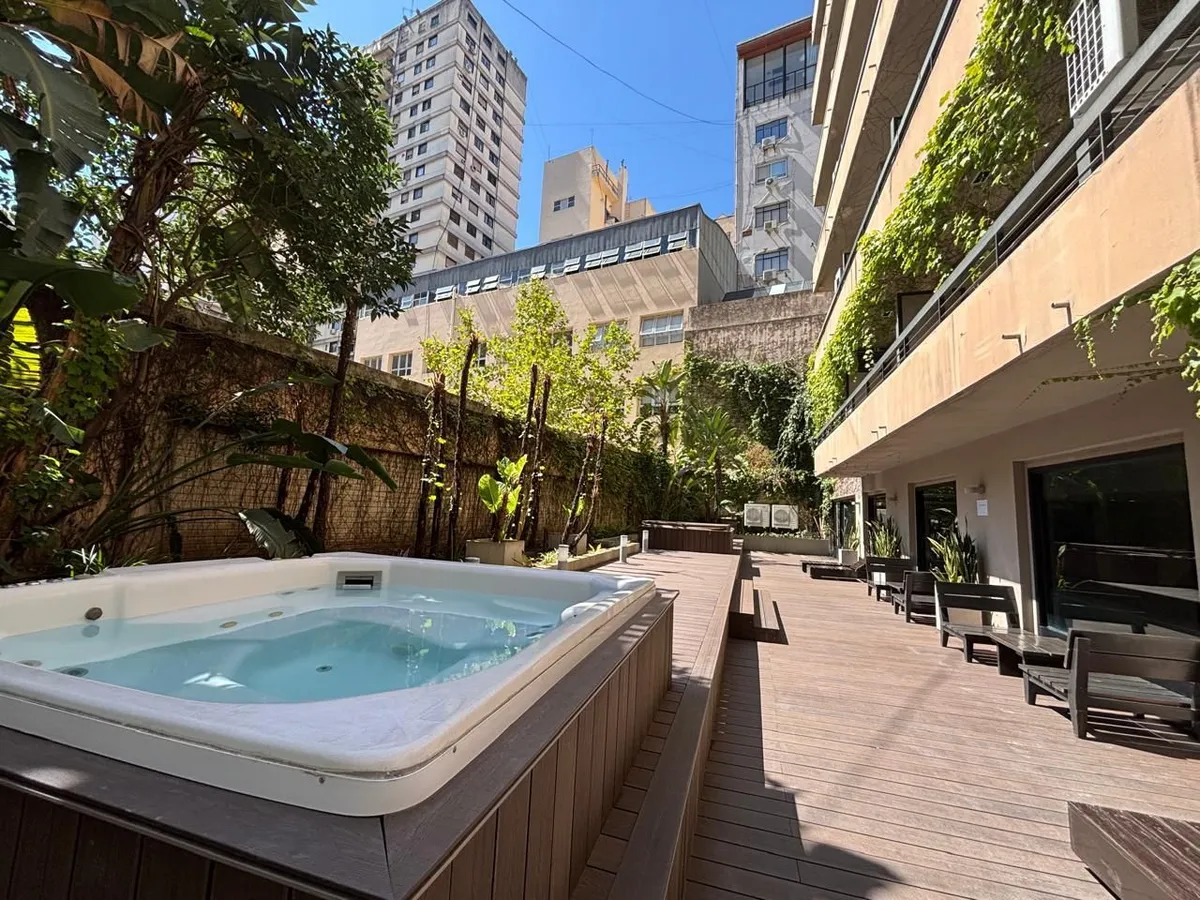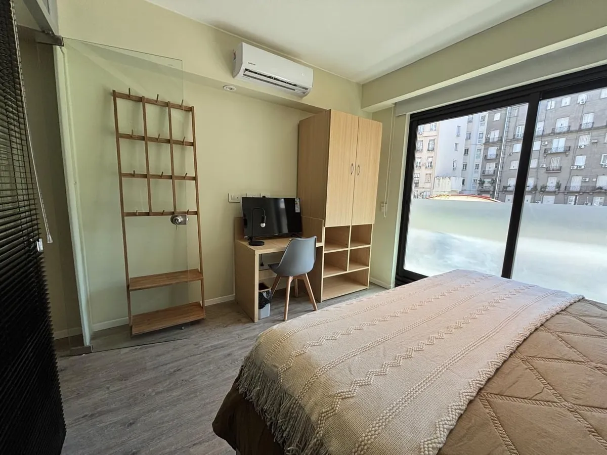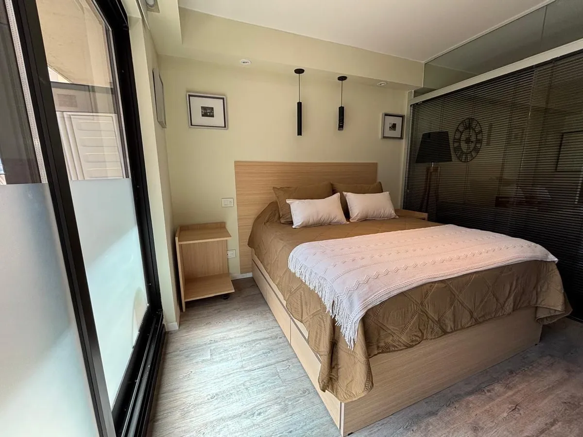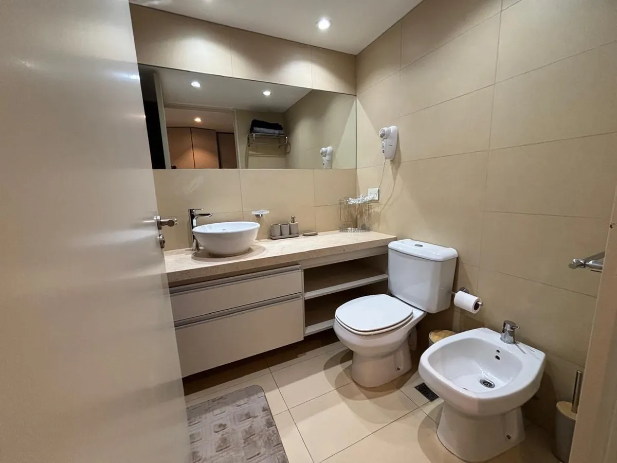 Departamento de 2 ambientes, al contrafrente, con 1 dormitorio. Incluye living comedor con salida a balcón, cocina, baño completo y dormitorio; se ofrece amoblado. Cuenta con aire acondicionado y agua caliente provista por termotanque. El edificio tiene 11 pisos, 6 departamentos por piso y 2 ascensores. Dispone de SUM, microcine, piscina cubierta, solárium con 2 jacuzzi, gimnasio, sauna, vestuarios, portero visor y wifi, con reconocimiento facial en el edificio y en el departamento.