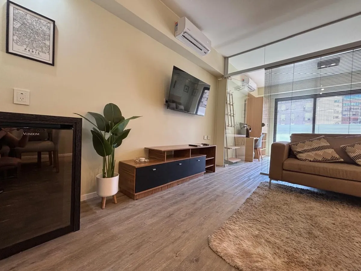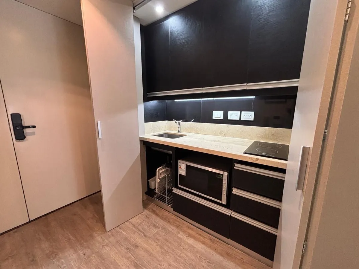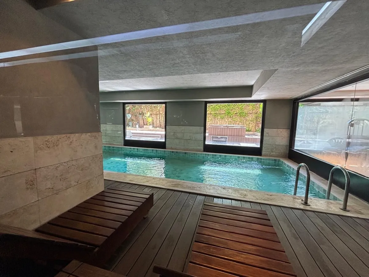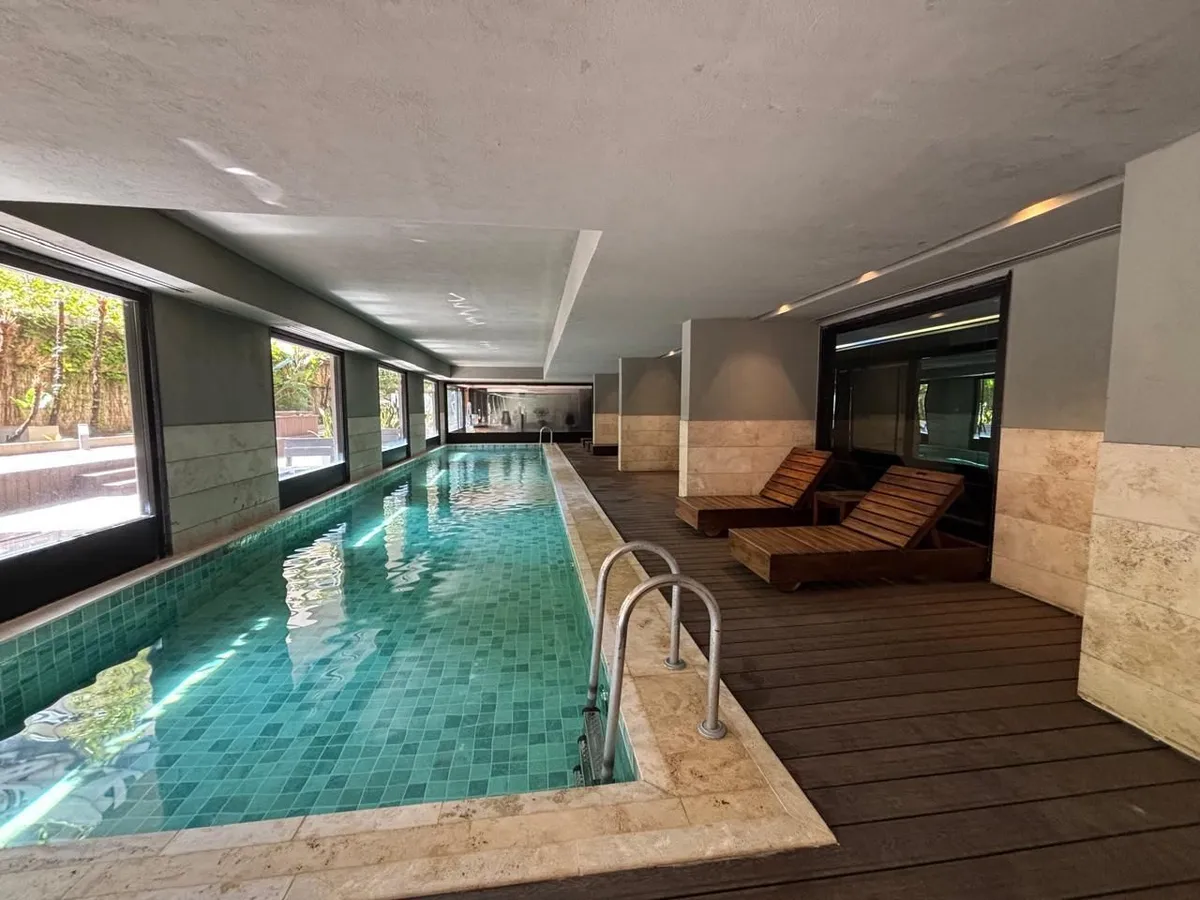 Departamento de 2 ambientes, al contrafrente, con 1 dormitorio. Incluye living comedor con salida a balcón, cocina, baño completo y dormitorio; se ofrece amoblado. Cuenta con aire acondicionado y agua caliente provista por termotanque. El edificio tiene 11 pisos, 6 departamentos por piso y 2 ascensores. Dispone de SUM, microcine, piscina cubierta, solárium con 2 jacuzzi, gimnasio, sauna, vestuarios, portero visor y wifi, con reconocimiento facial en el edificio y en el departamento.