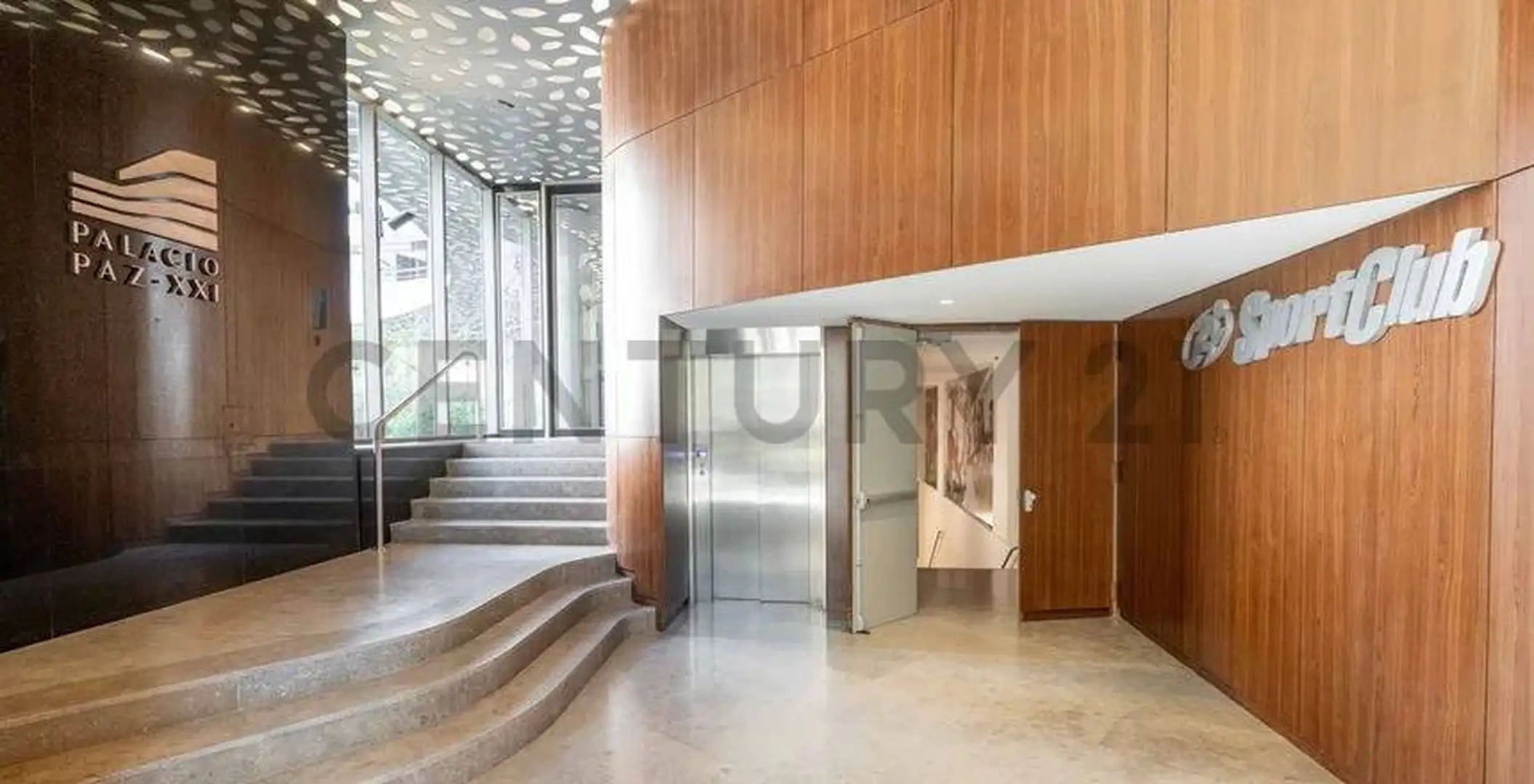 Departamento de 56 m² en el Palacio Paz XXI, en Retiro, con balcones. Cuenta con área de living, escritorio, comedor y dormitorio, además de baño amplio con bañera y laundry en el edificio. Dispone de AACC frío-calor con ventanales de doble vidrio hermético y sistema VRV frío-calor con panel de comando en la unidad. El edificio tiene seguridad 24 horas, pileta cubierta de 8 x 20 m y gimnasio con polígono de tiro administrado por Sport Club, con fee promocional para propietarios e inquilinos. El