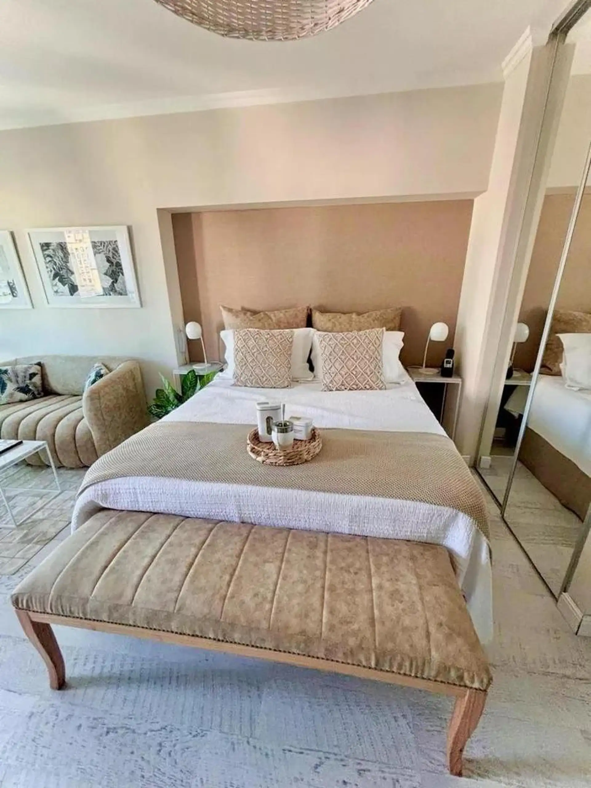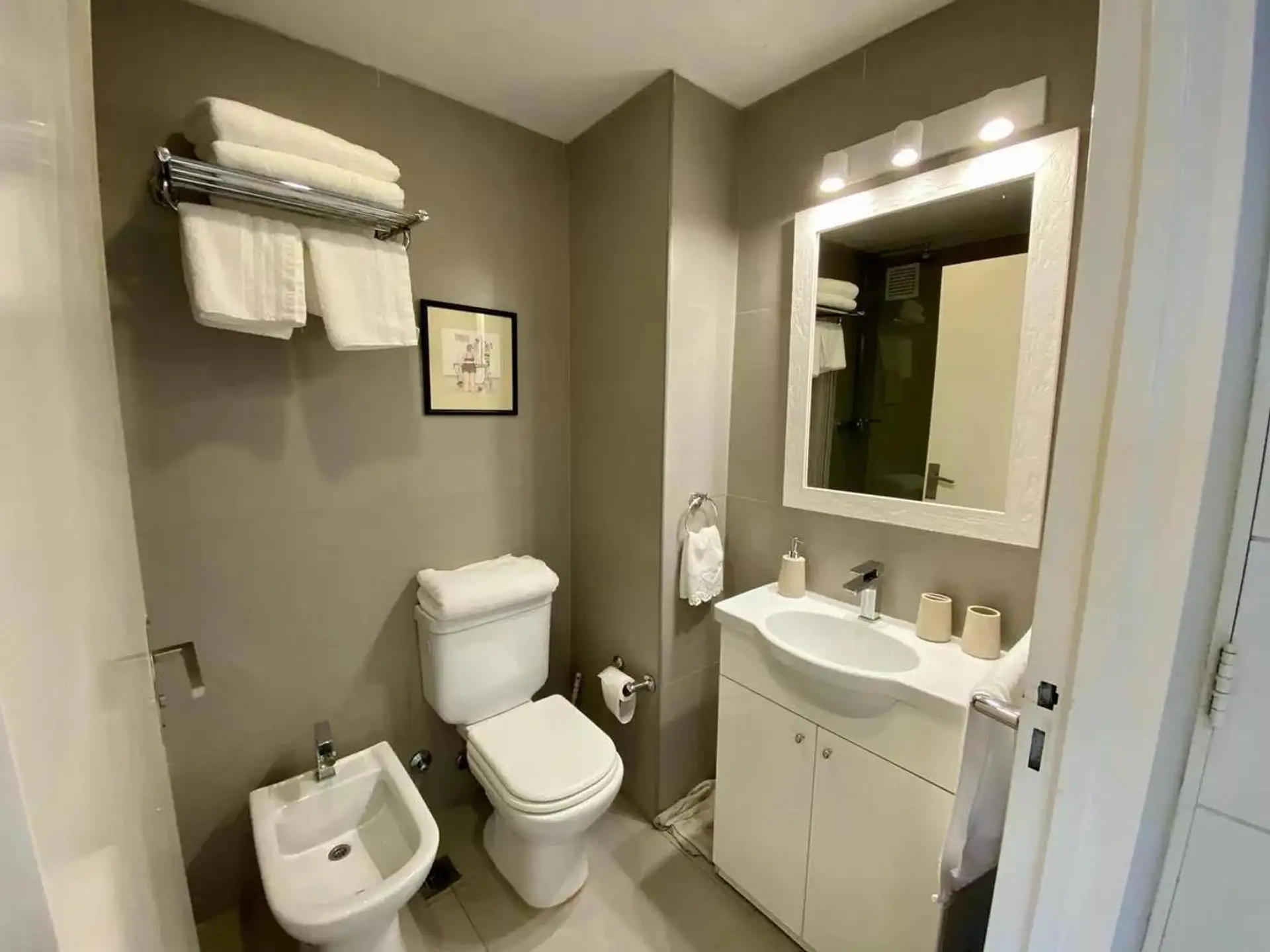 Monoambiente de 35 m² en Retiro, en la Torre Bellini Esmeralda, en un piso alto con vista abierta. Se alquila totalmente amoblado y con equipamiento: cama doble, escritorio y sector living-comedor, aire acondicionado frío/calor, cortinas con Black Out, cocina completa con vajilla incluida y baño completo con accesorios. Incluye Smart TV Samsung QLED 55 The Frame, Wi-Fi de alta velocidad y caja de seguridad.