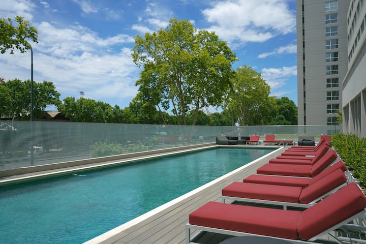 Квартира в Retiro с 1 спальней, с кроватью размера king и матрасом. В наличии 2 ванных комнаты с душем, оборудованная кухня и гостиная с Smart TV и рабочим местом. Предусмотрены Wi-Fi и зона для работы с письменным столом. В здании указаны подогреваемый бассейн, спа и сауна, тренажёрный зал, зона гриля, круглосуточная стойка регистрации, ранний заезд и поздний выезд.