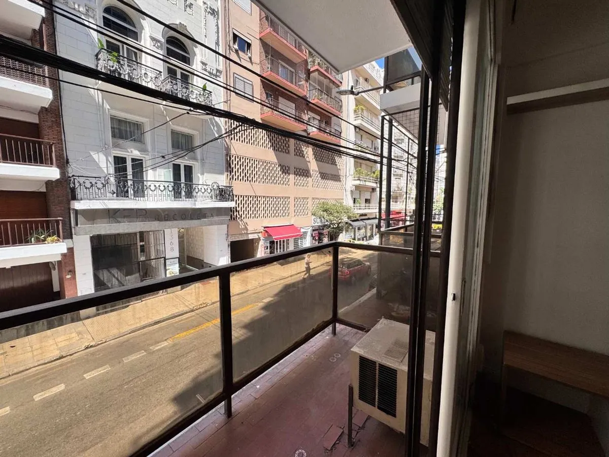 Departamento de 2 ambientes amoblado en Recoleta, al frente sobre Marcelo T. de Alvear, con balcón y patio privado. Cocina separada equipada con heladera y microondas, calefón y vajilla; living comedor con mesa, cuatro sillas, sillón y escritorio, con ventanal al patio. Baño completo con bañera; habitación con placard, sommier, mesa de luz y A.A., con calefacción por losa radiante central. Apto profesional; a 6 cuadras del Teatro Colón y a 1 cuadra de Av. Santa Fe.