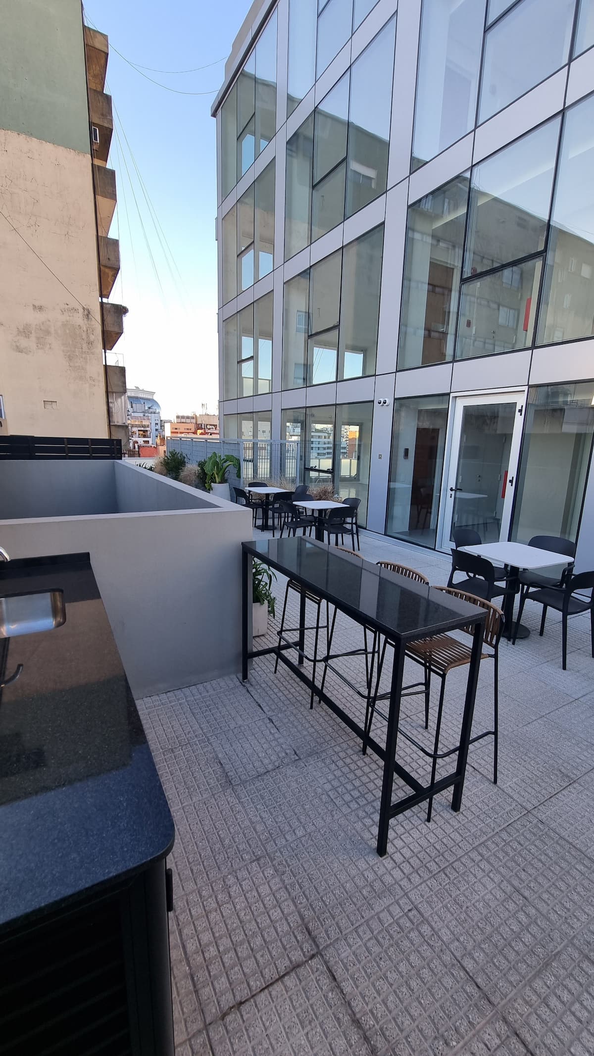 Departamento en Retiro, sobre la calle Paraguay, a 200 m del Teatro Colón y a 100 m de Av. 9 de Julio. El edificio cuenta con gimnasio, co-working y terraza, con acceso mediante biometría. El ingreso al edificio se realiza por reconocimiento facial y se solicita el envío de una foto sin anteojos ni sombreros para el registro.