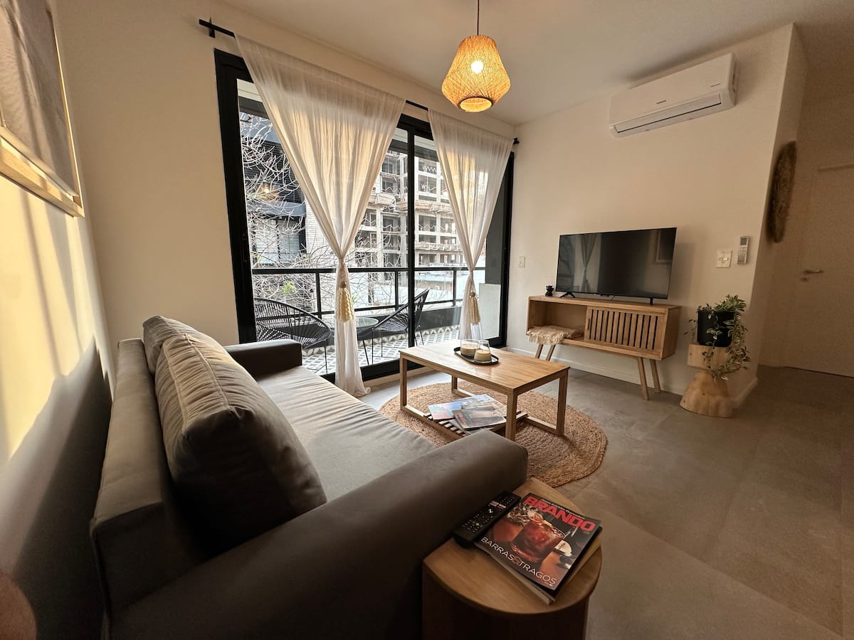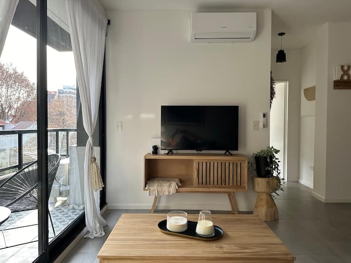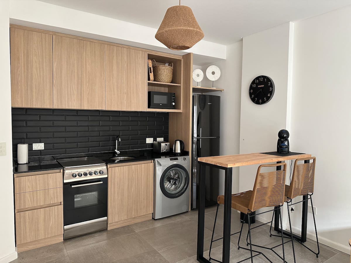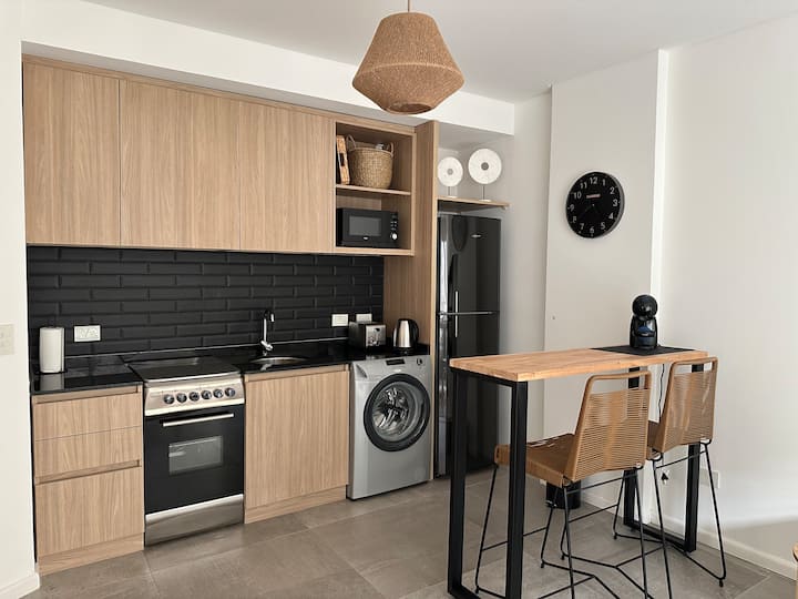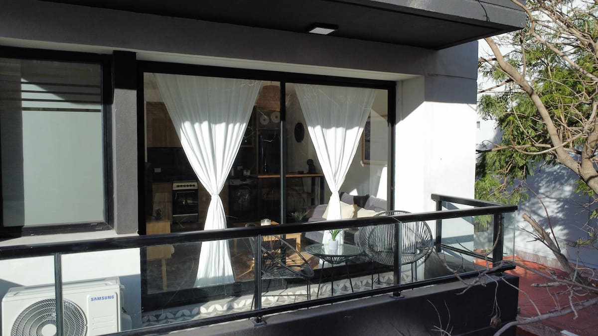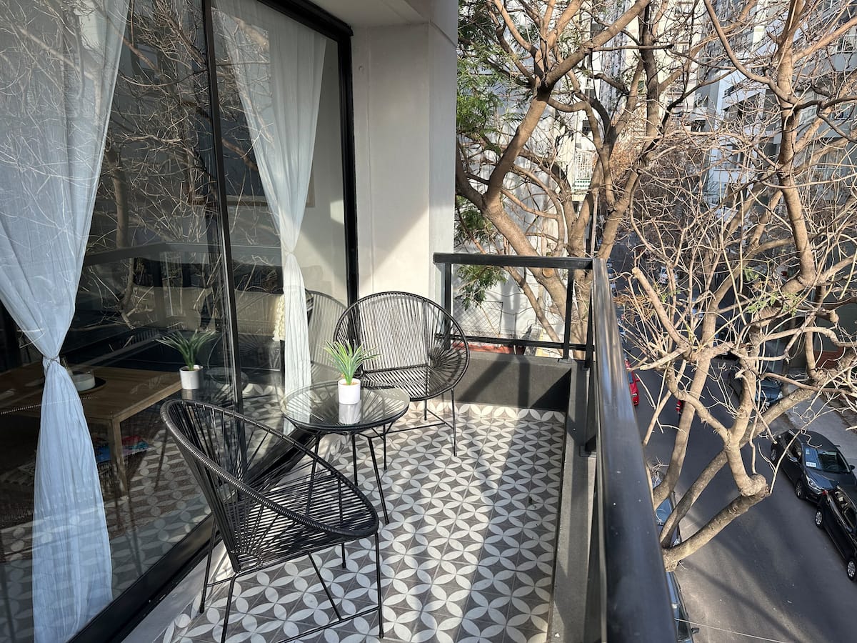 Departamento de 2 ambientes con 1 dormitorio en Saavedra. Dispone de balcón y ventanas al noroeste. Cocina integrada con heladera grande, microondas y máquina de espresso, con extractor. Cuenta con lavarropas automático, televisión smart de 44 pulgadas, placard y cama queen en el dormitorio; el baño tiene ventana y extractor.