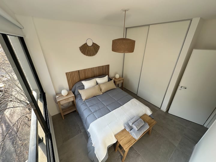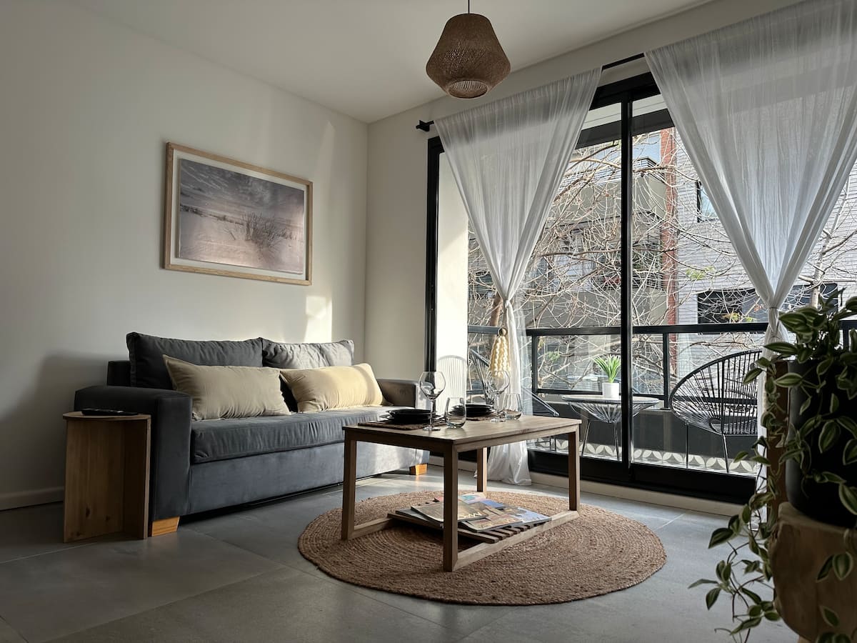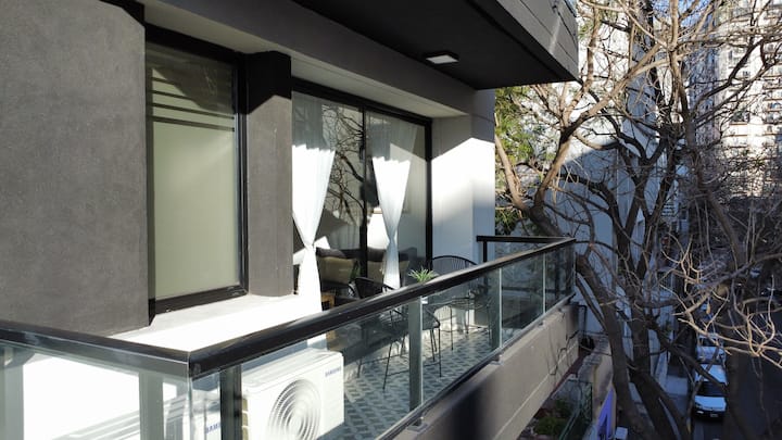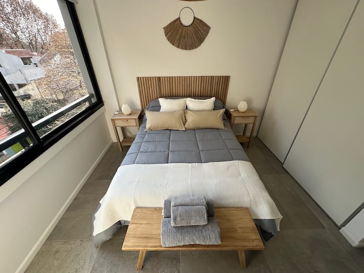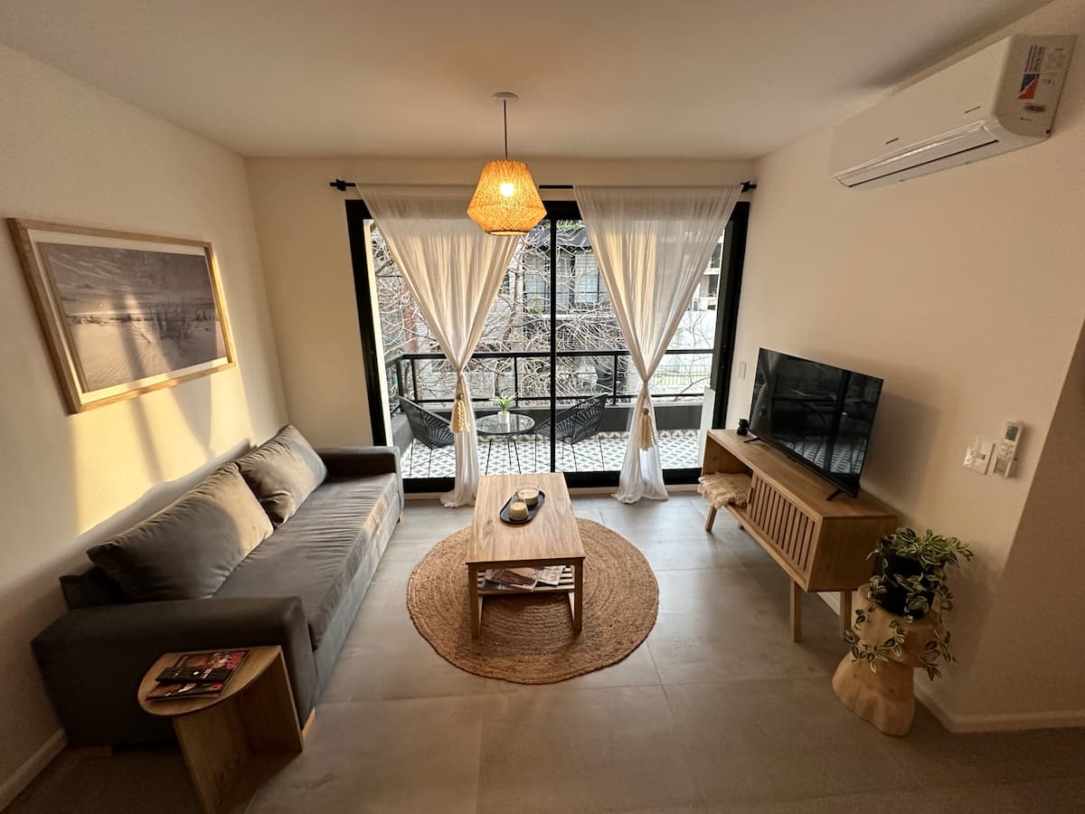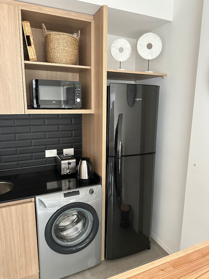 Departamento de 2 ambientes con 1 dormitorio en Saavedra. Dispone de balcón y ventanas al noroeste. Cocina integrada con heladera grande, microondas y máquina de espresso, con extractor. Cuenta con lavarropas automático, televisión smart de 44 pulgadas, placard y cama queen en el dormitorio; el baño tiene ventana y extractor.