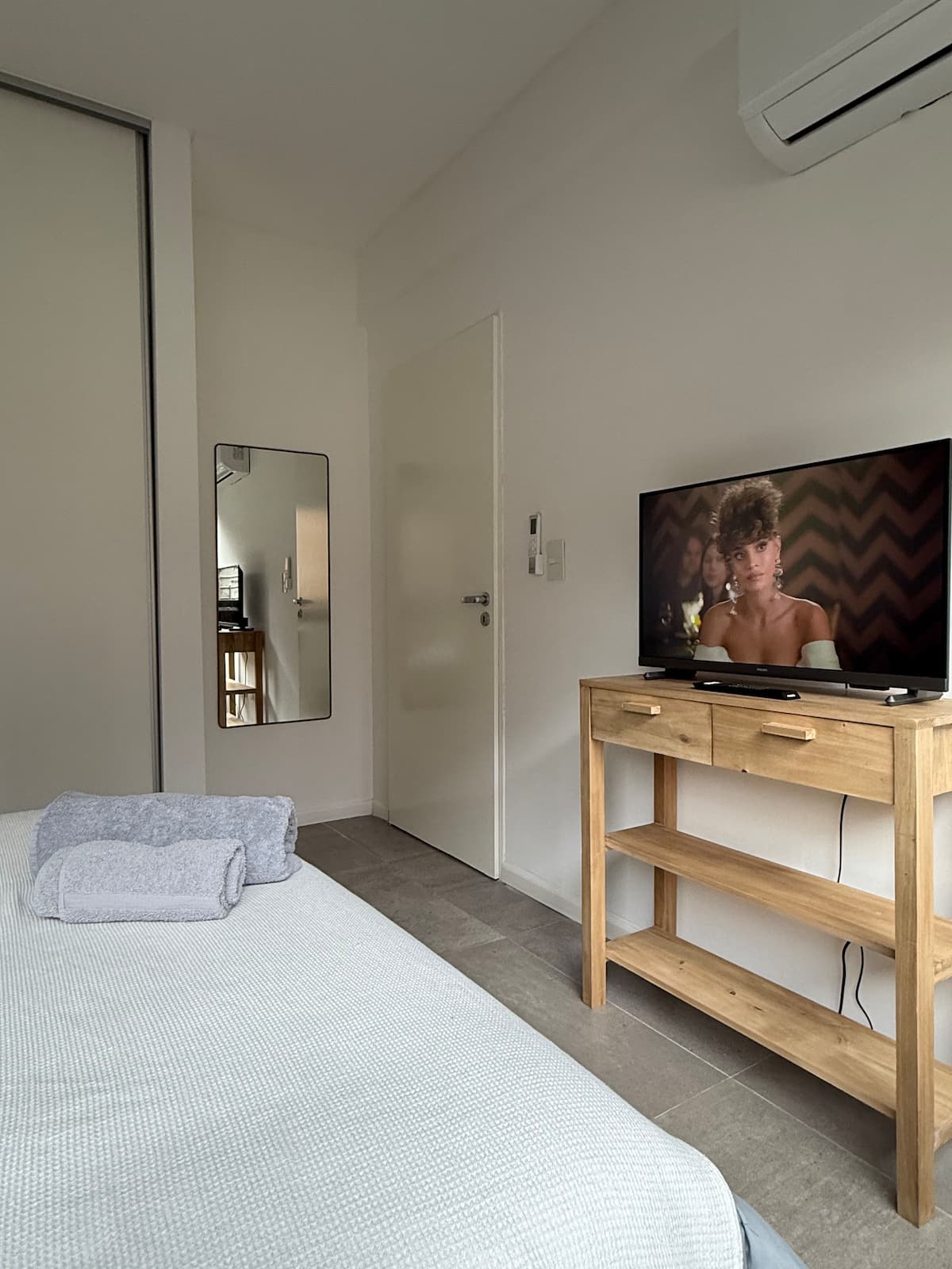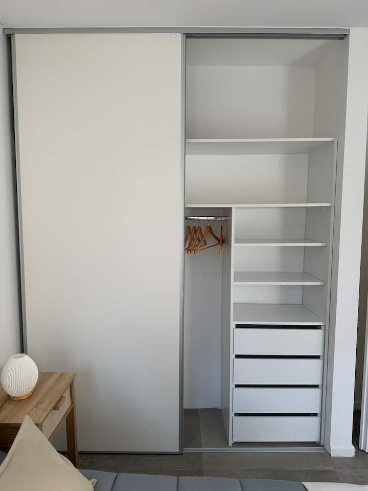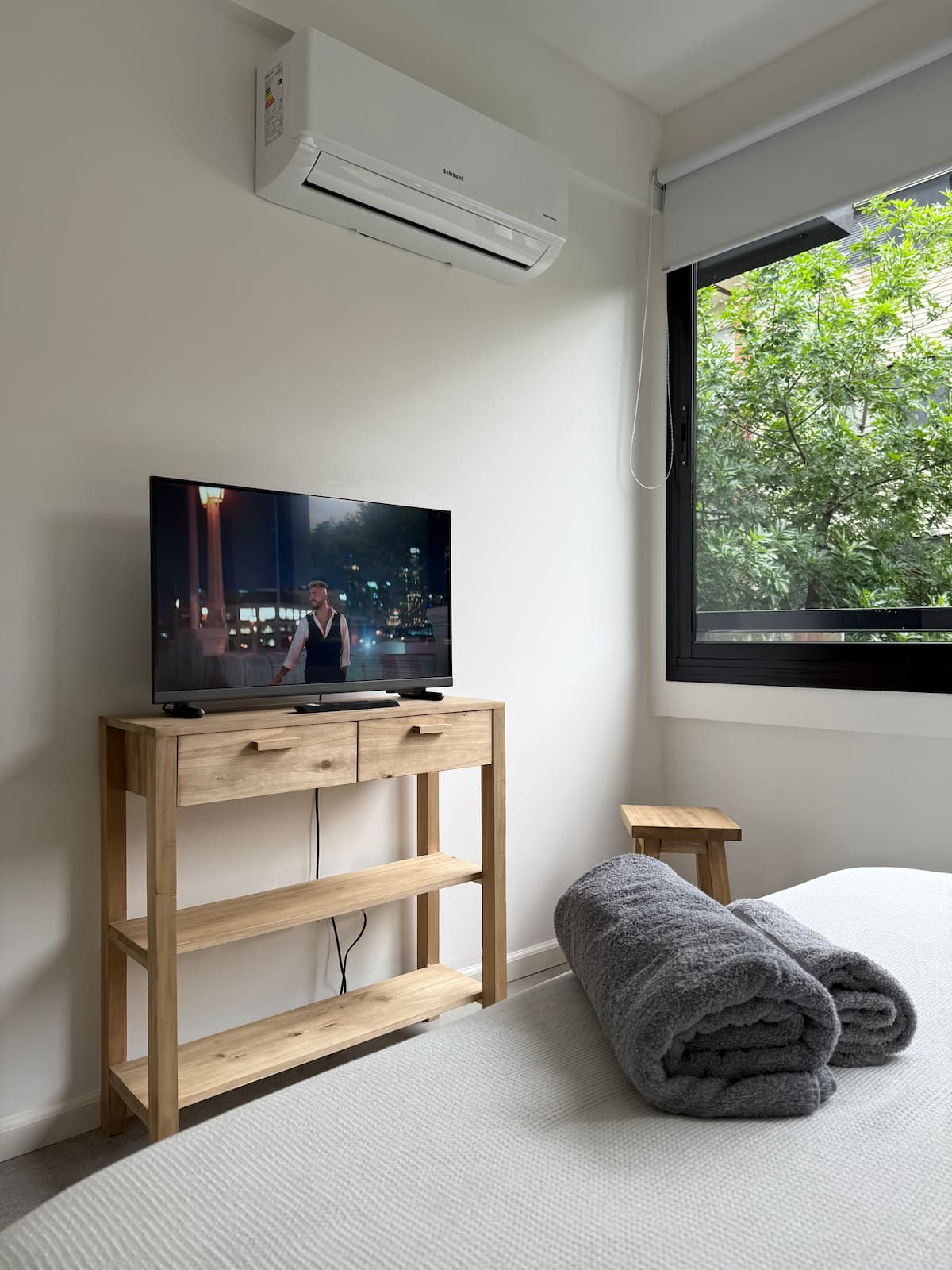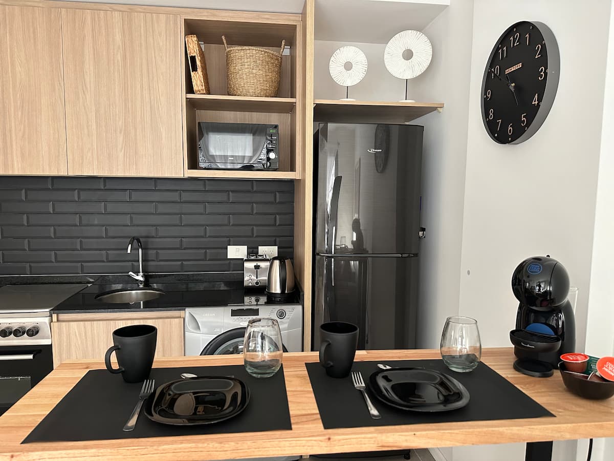 Departamento de 2 ambientes con 1 dormitorio en Saavedra. Dispone de balcón y ventanas al noroeste. Cocina integrada con heladera grande, microondas y máquina de espresso, con extractor. Cuenta con lavarropas automático, televisión smart de 44 pulgadas, placard y cama queen en el dormitorio; el baño tiene ventana y extractor.
