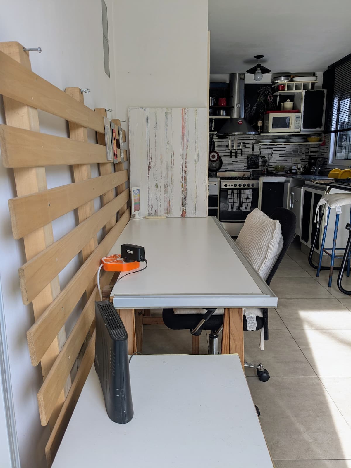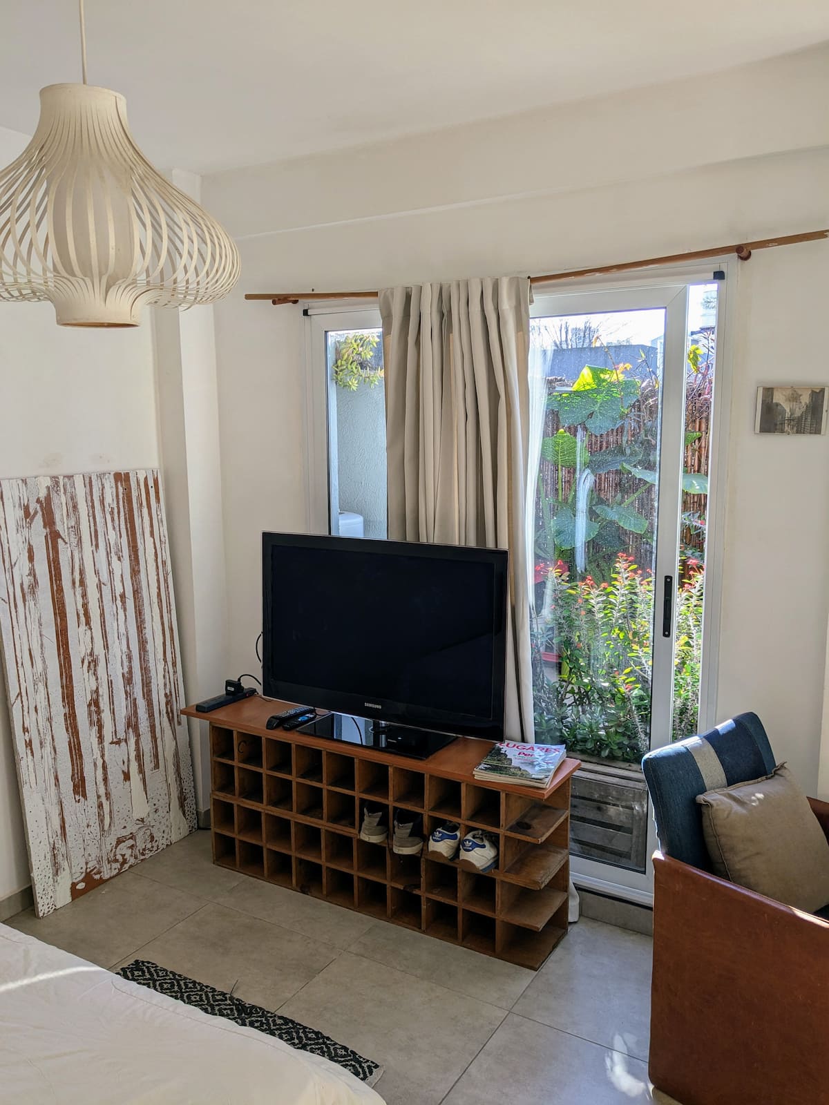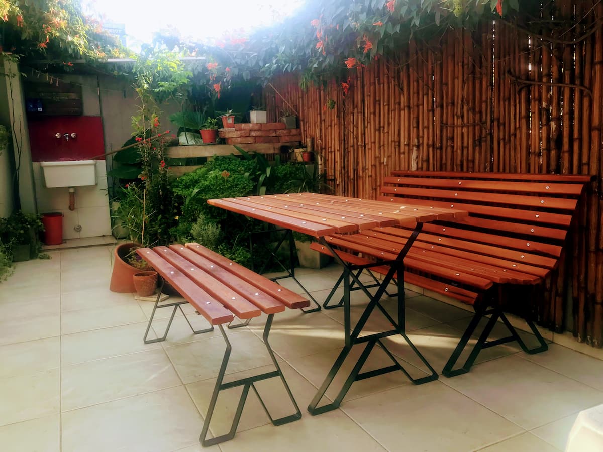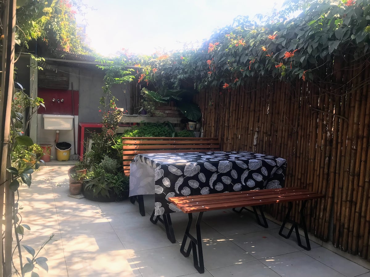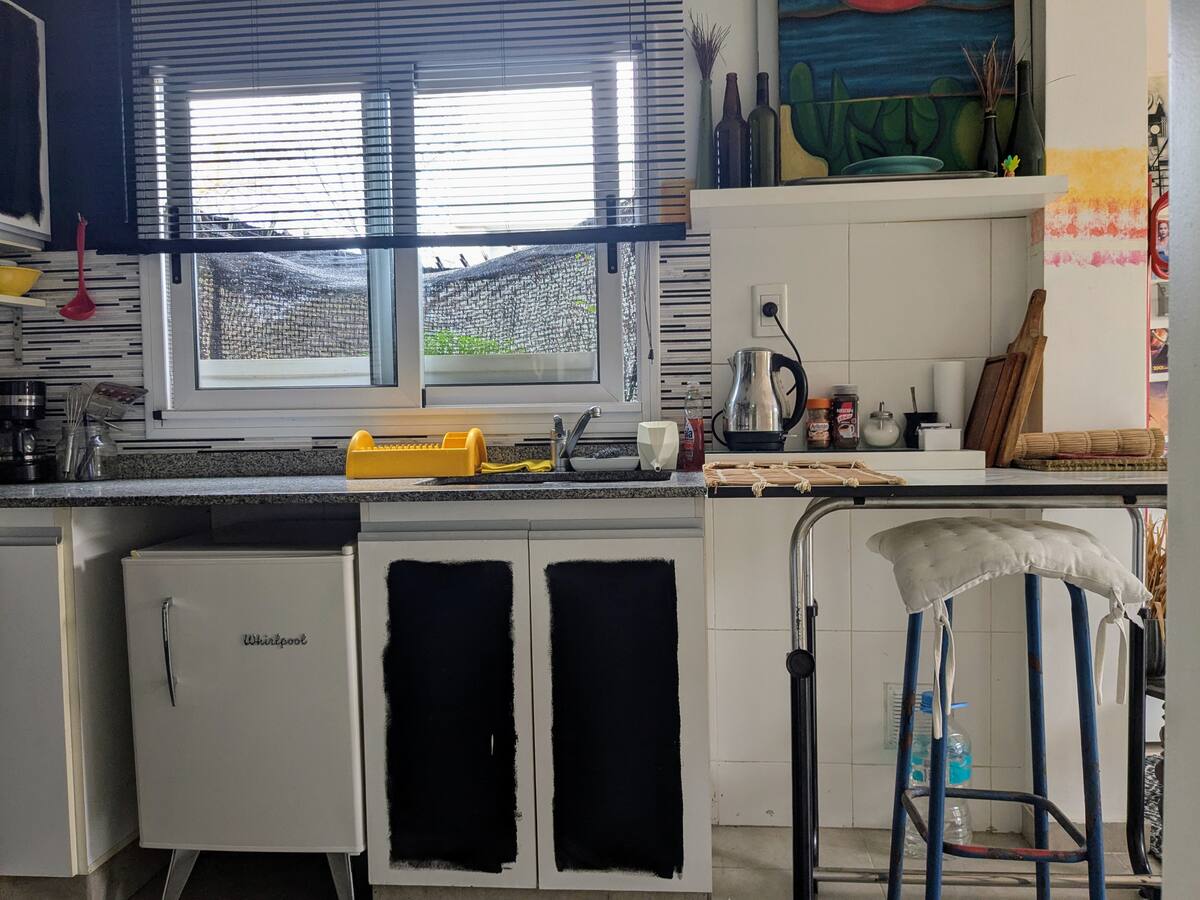 Estudio en alquiler con entrada independiente por escaleras y gran balcón. El ambiente se alquila completo. Cuenta con cocina equipada con microondas, frigobar, pava eléctrica, cafetera y sandwichera; baño completo con ducha. Dispone de WiFi y TV de 42" con cable y Chromecast.