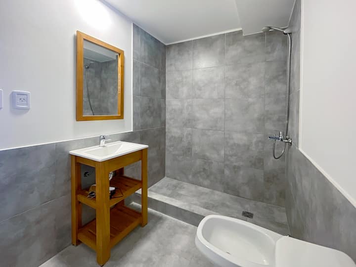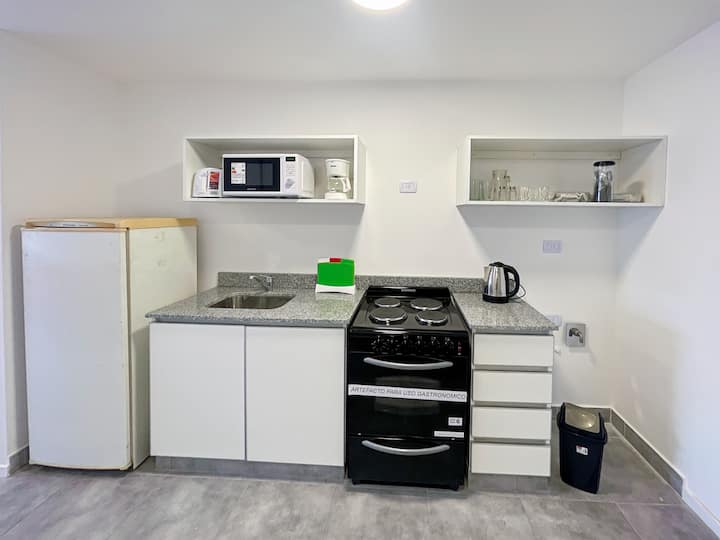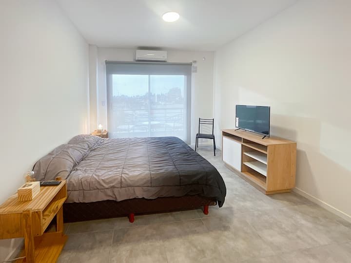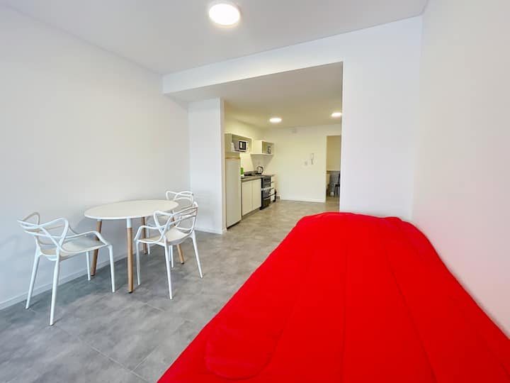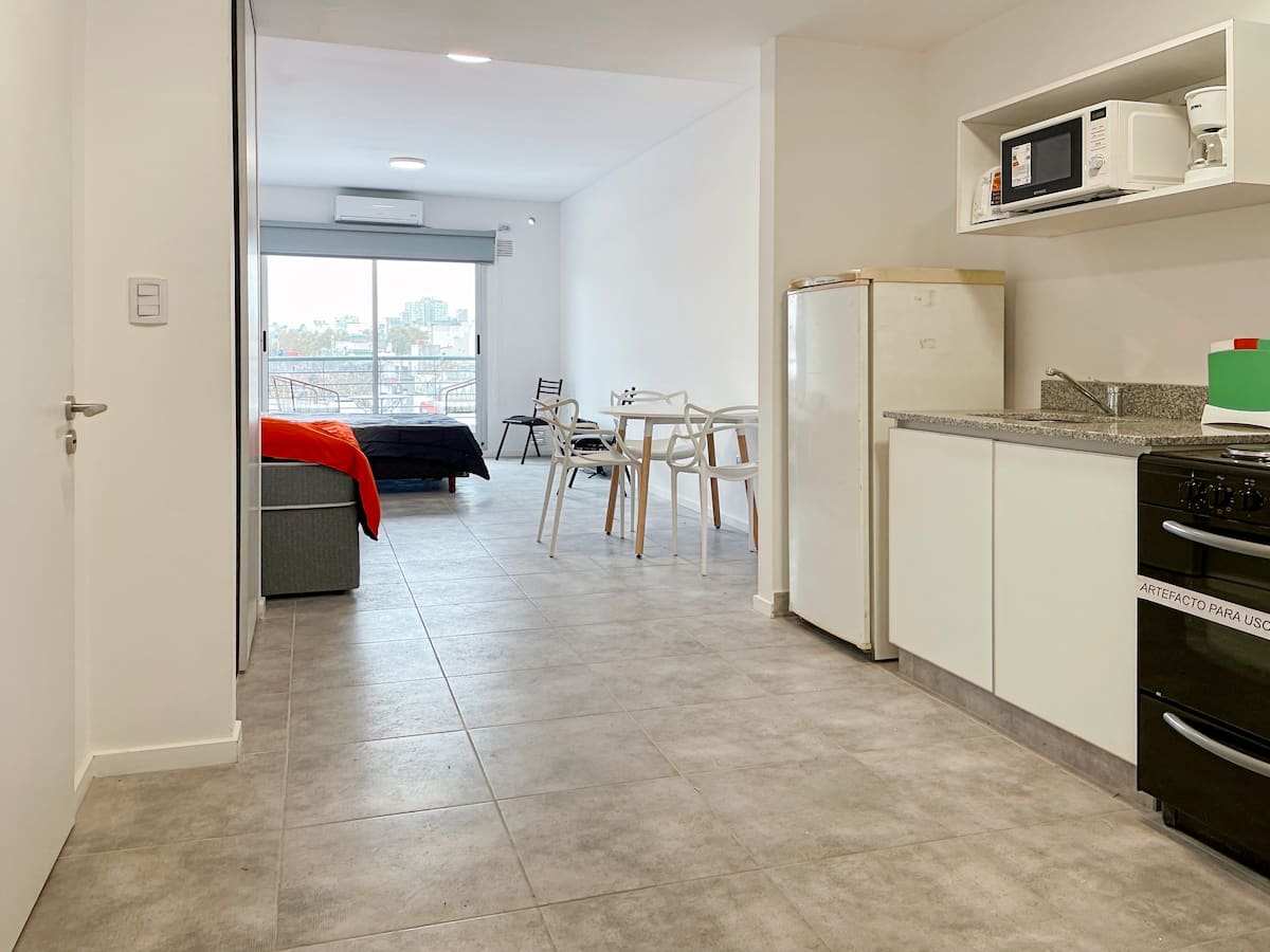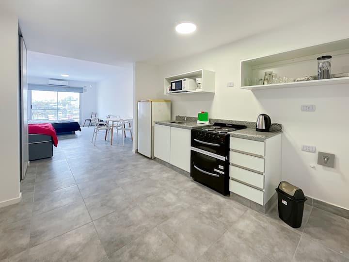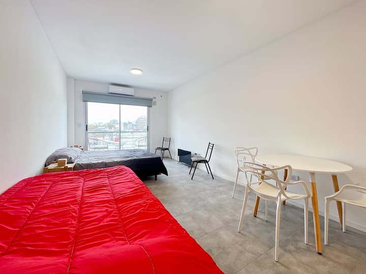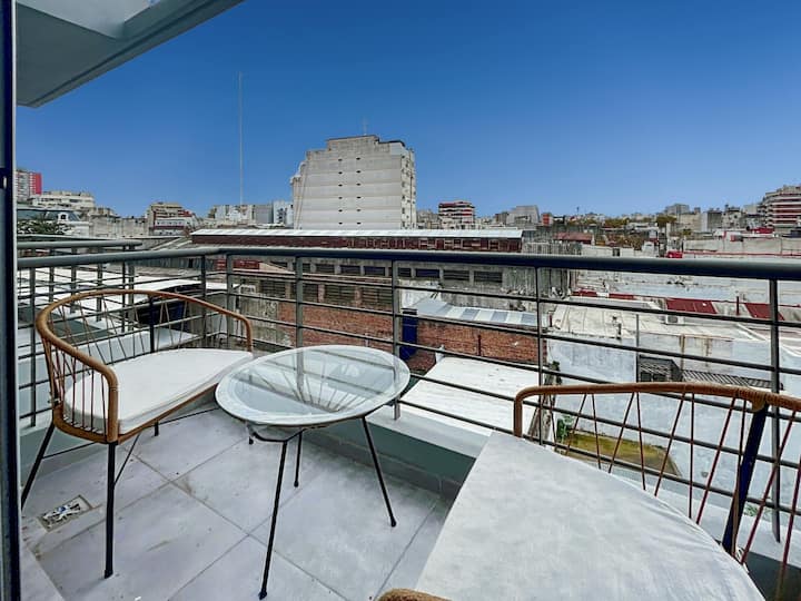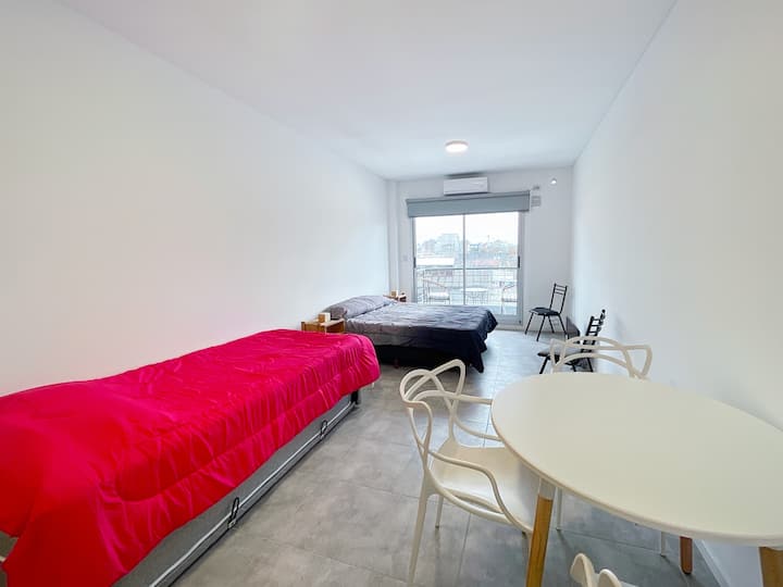 Monoambiente en San Cristóbal con balcón privado. Tiene capacidad para 4 personas: cama doble y 2 camas individuales. Cocina equipada y baño completo. Se ubica en el recorrido hacia atrás al Hospital César Milstein y a 4 cuadras del Hospital Ramos Mejía; a 3 cuadras de las líneas de subte E y H.