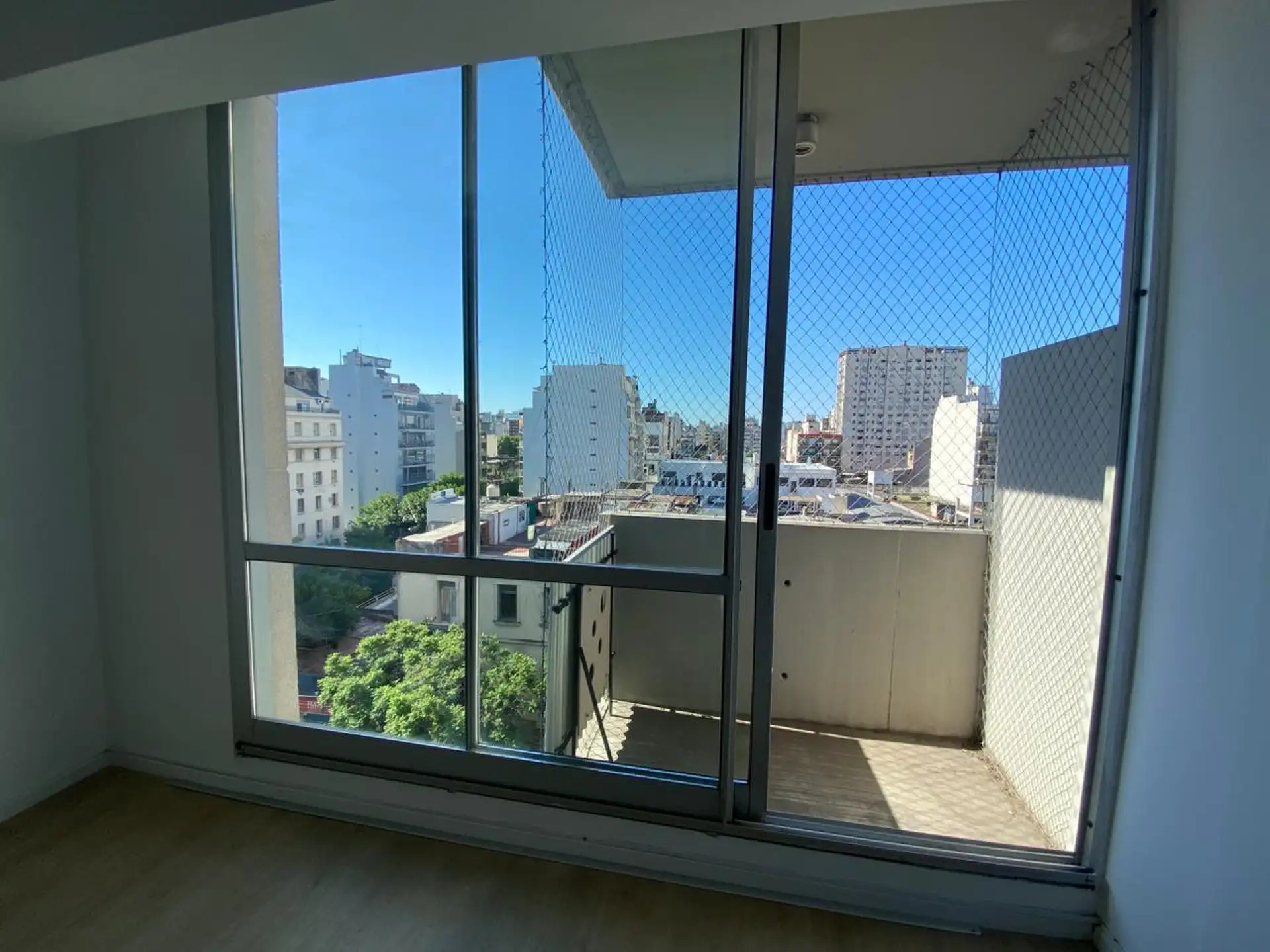 Departamento monoambiente divisible de piso alto al frente, con cocina integrada y dividida con barra y mueble, alacena y bajo mesada con conexión para lavarropas. Cuenta con anafe eléctrico y calefacción por contrapiso radiante regulable por departamento en el ambiente y en el baño; además, tiene conexión para equipo de aire acondicionado. El edificio dispone de SUM con parrilla, baño, sector comedor y solárium. Aysa y agua caliente central están incluidos en las expensas; el alquiler exige con