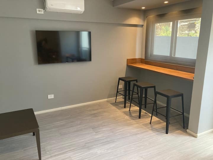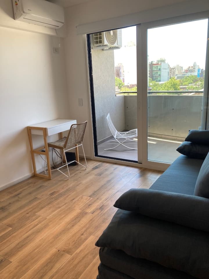 Departamento a estrenar de 2 ambientes con aire acondicionado, balcón y cocina totalmente equipada. El edificio cuenta con laundry con terraza y SUM. Está en zona hospitalaria: Hospital Garrahan a 500 m, Hospital Muñiz a 1000 m, British a 1200 m; Metrobus Av. Garay a 100 m y estaciones de Subte H e Inclan a 150 m, Subte y Jujuy a 400 m.