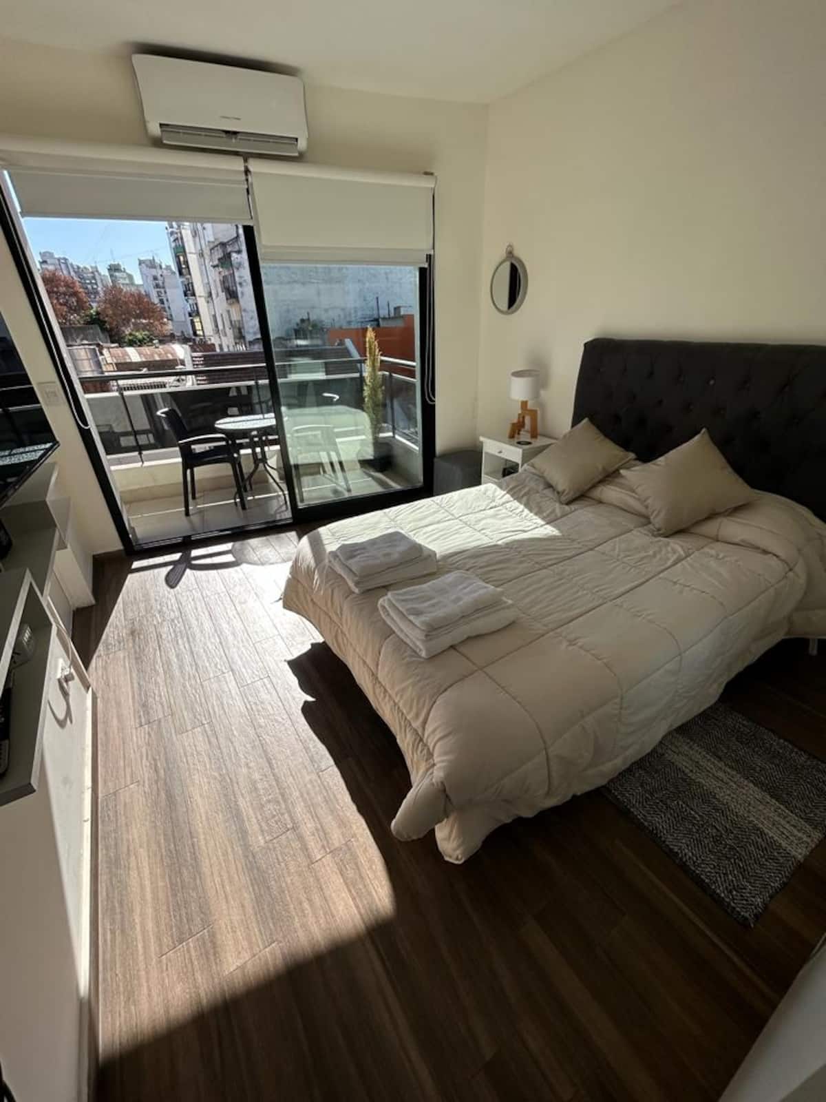 Monoambiente en San Cristóbal con balcón. Amoblado y listo para uso. A 1 cuadra de un subte que conecta gran parte de la ciudad. A 15 cuadras del Congreso Nacional y a 20 cuadras de San Telmo.