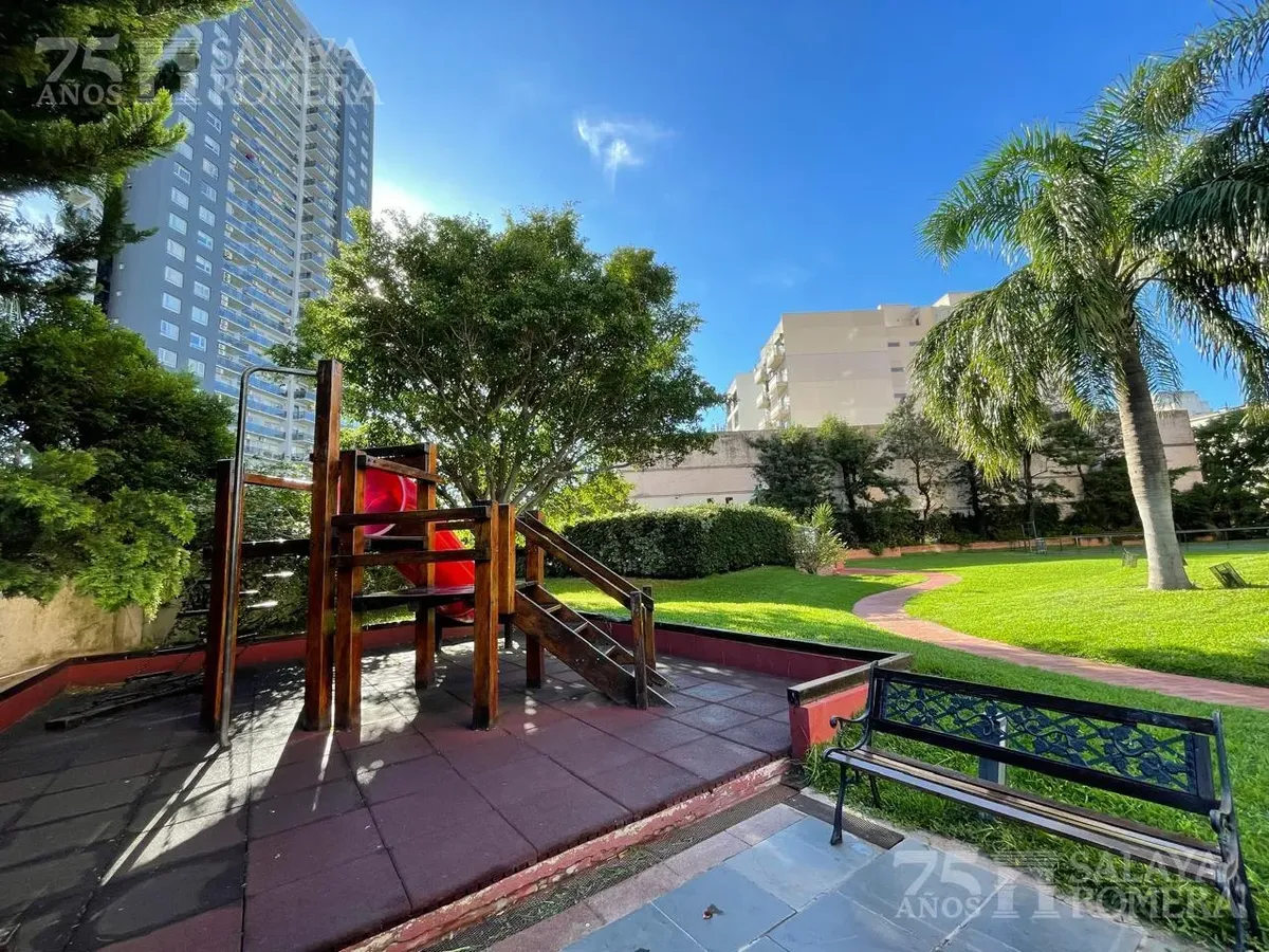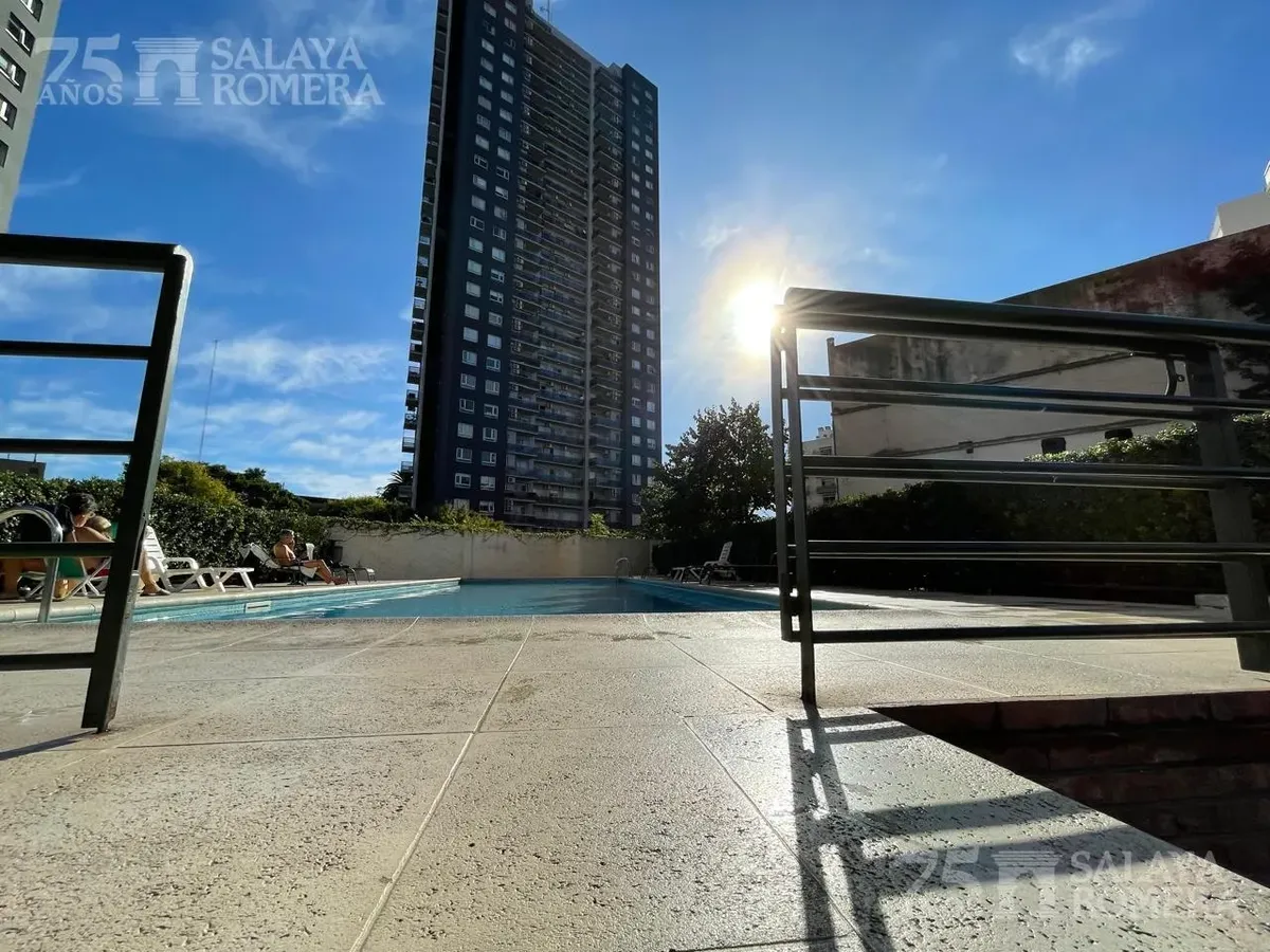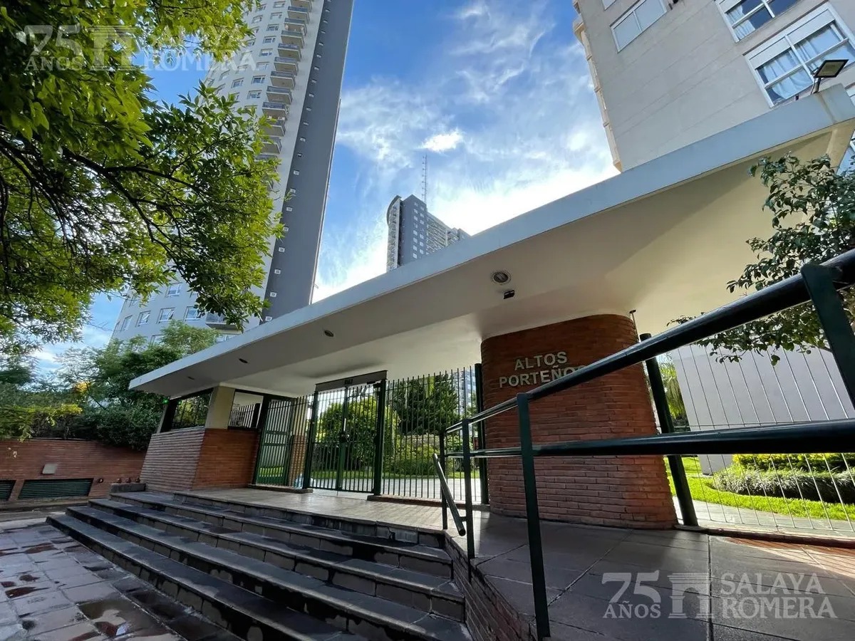 Departamento de 1 dormitorio en el complejo Altos Porteños, Torre 1, en San Cristóbal, ubicado en un piso alto con orientación al frente. Cuenta con living con salida a balcón, cocina independiente con lavadero incorporado y acceso al balcón, baño completo y dormitorio con placard. Tiene cortinas a medida y fue recientemente pintado; pisos en buen estado. Los servicios son individuales: agua caliente por calefón individual y calefacción individual, además de aire acondicionado frío/calor. El com