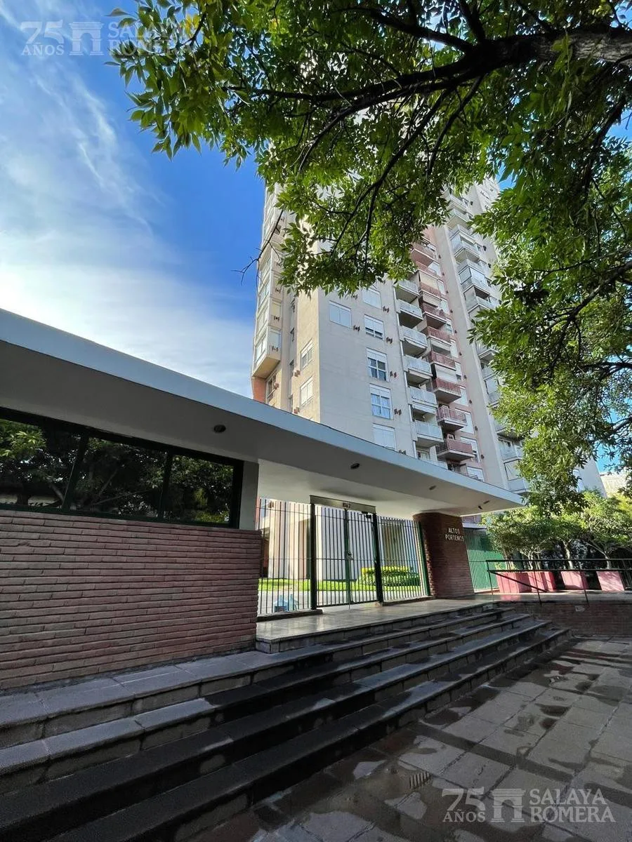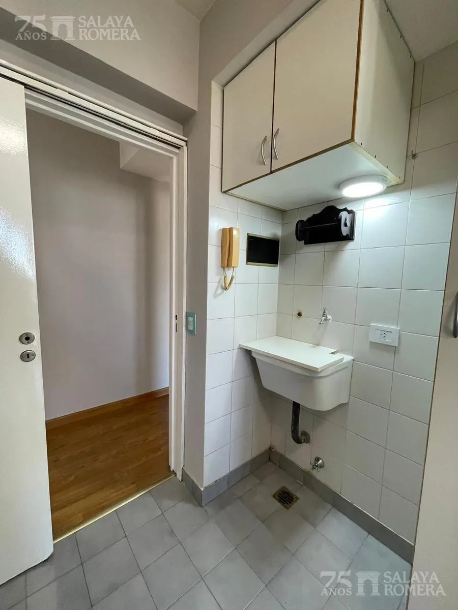 Departamento en alquiler en el complejo Altos Porteños, Torre 1, en San Cristóbal. Unidad en un piso alto, al frente, con balcón, living con salida al balcón y cocina independiente con lavadero incorporado y acceso al mismo balcón. Tiene 1 baño completo y 1 dormitorio con placard; cuenta con agua caliente por calefón individual y calefacción individual, además de aire acondicionado frío/calor. Incluye cortinas a medida y fue recientemente pintada; no se permiten mascotas. El alquiler es por 24 m