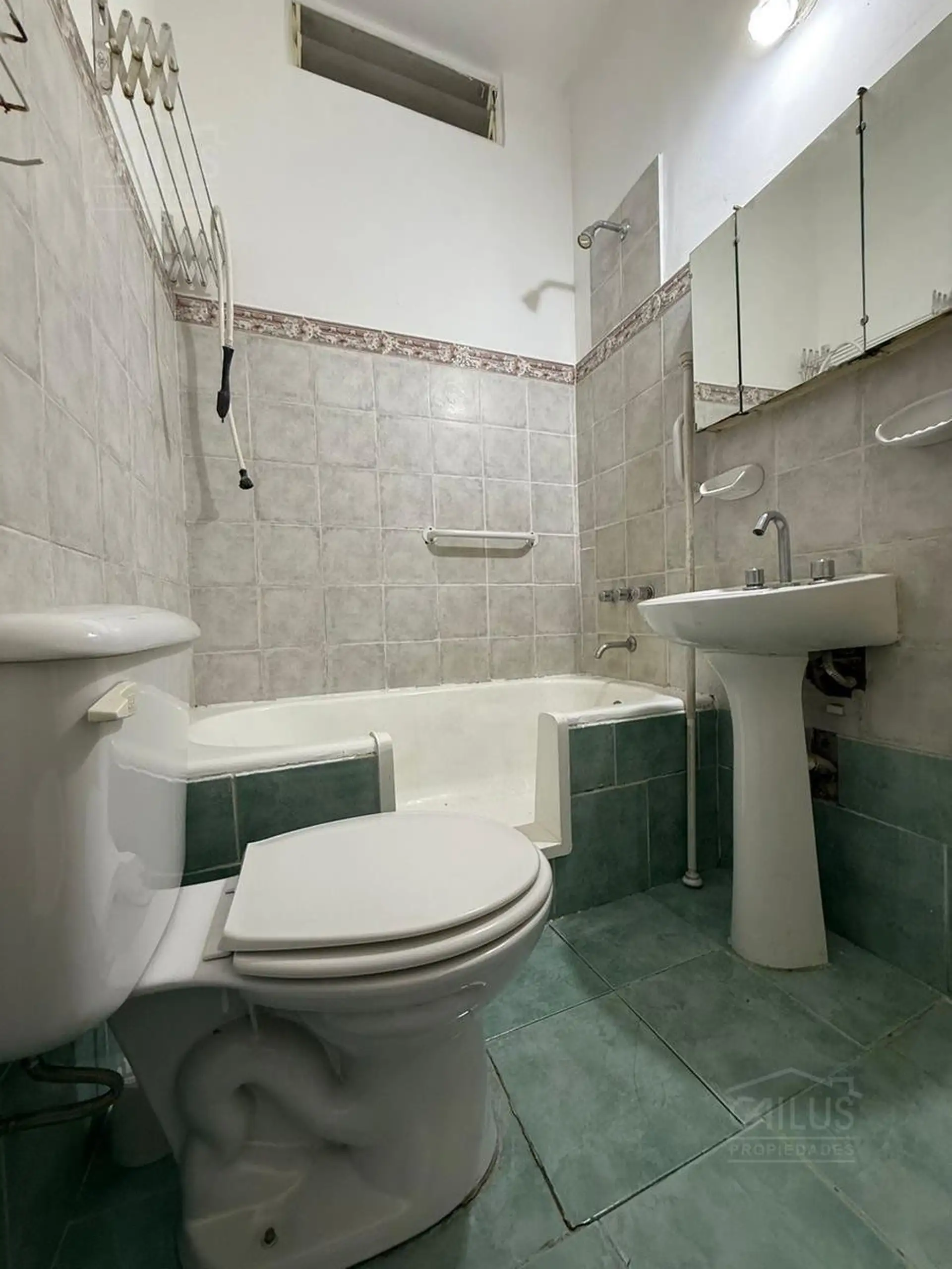 Two-room apartment in San Cristóbal on the first floor accessed by stairs, with building fees described as low. Street-facing bedroom with a front balcony. The rental requires 1 month in advance plus a security deposit equal to 1 month, a 24-month contract with quarterly CPI adjustments, and a CABA property-owning guarantee. Pets are accepted. Not suitable for professional use or an office.