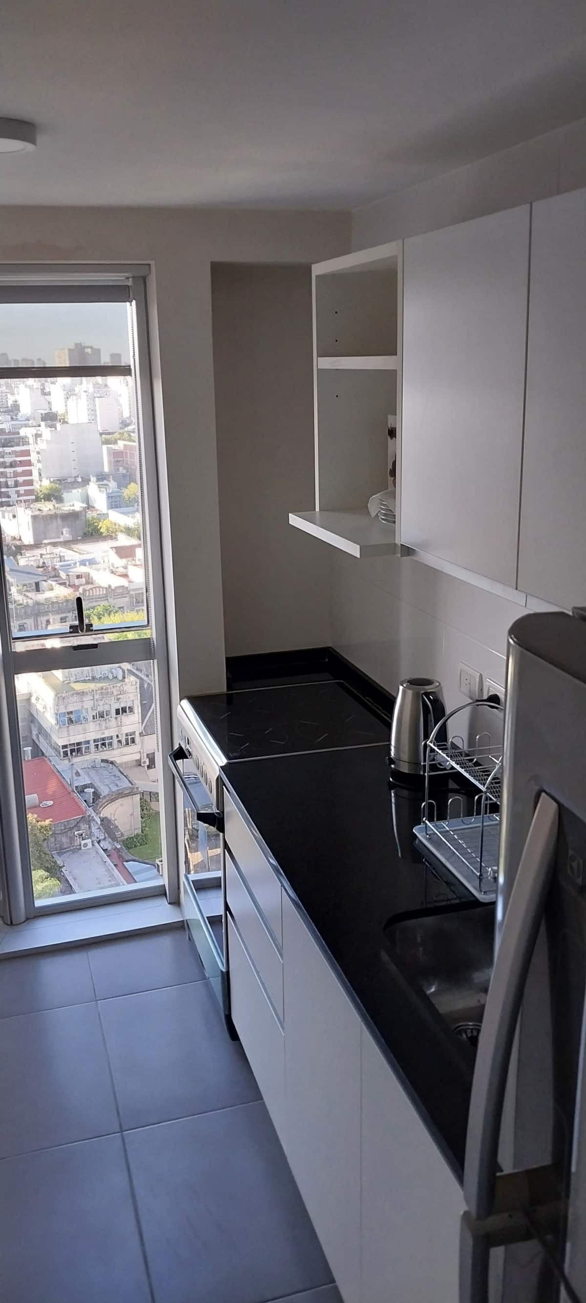 Departamento de 2 dormitorios en el 16º piso, con balcón y vista a la ciudad. Cuenta con living con 2 sofá camas y cocina equipada, y un dormitorio con cama doble, placard y ropa de cama. El complejo Altos porteños, en Carlos Calvo 3080, dispone de pileta para adultos y otra para niños, gimnasio, cancha deportiva, laundry, parrilla y seguridad 24 horas.
