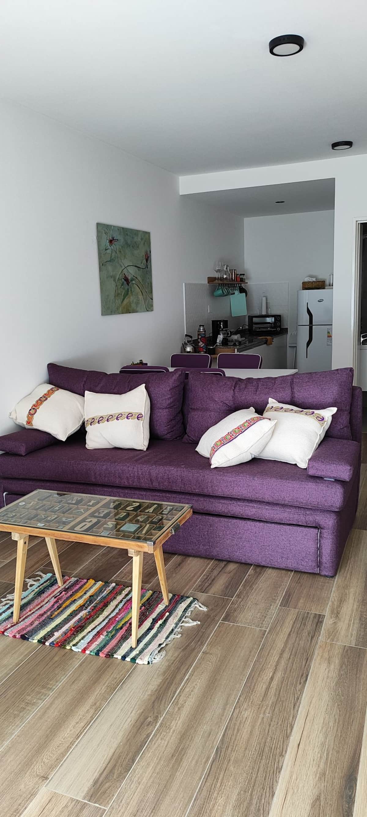 Departamento en San Cristóbal, sobre Av. San Juan. Cuenta con 1 dormitorio y está equipado para 4 huéspedes. El edificio ofrece gimnasio, parque, pileta y laundry. Se incluyen sábanas y toallas.
