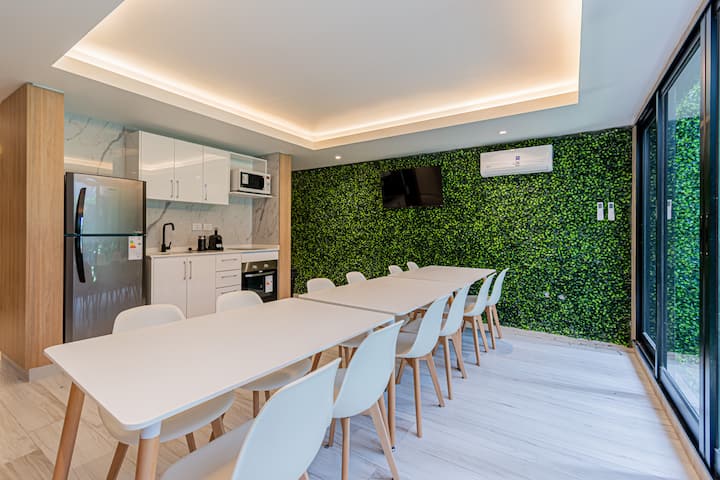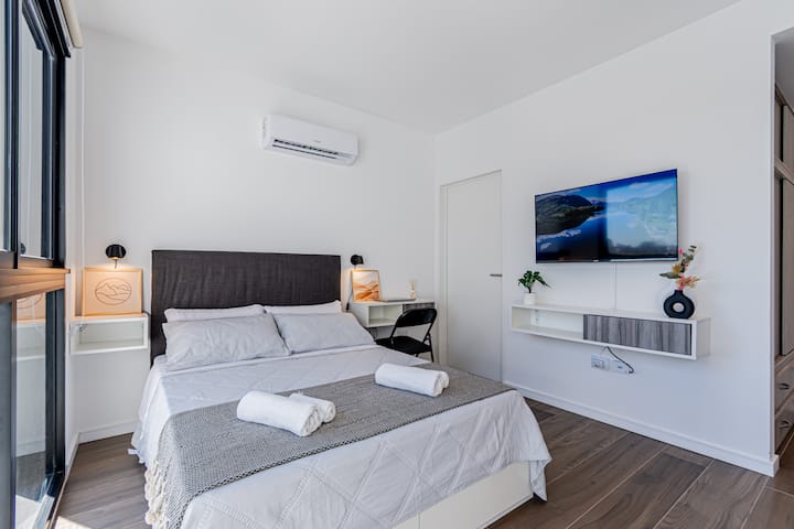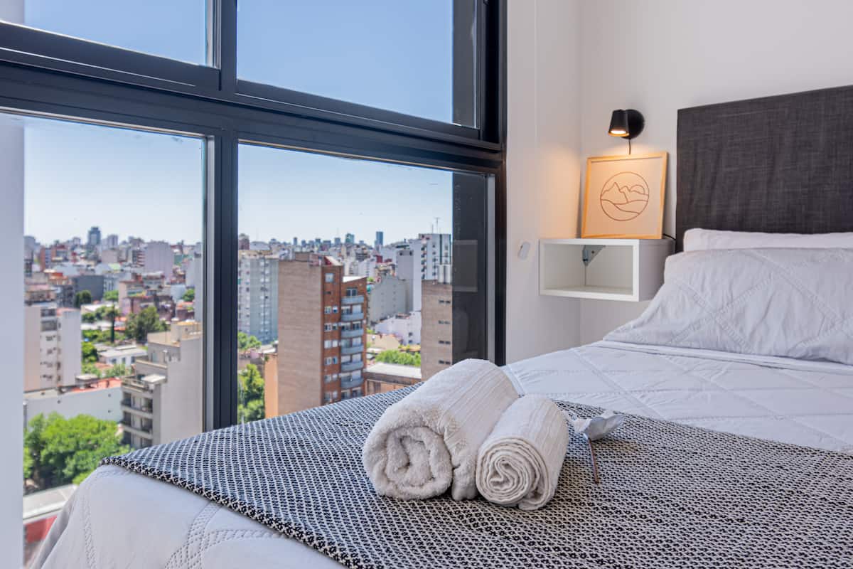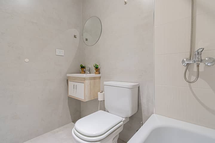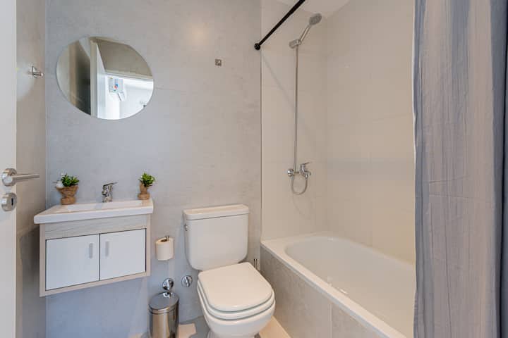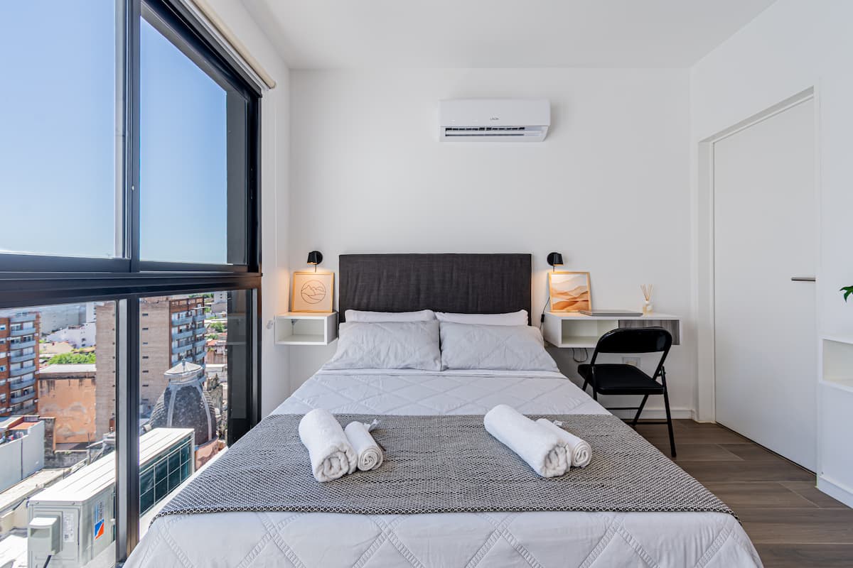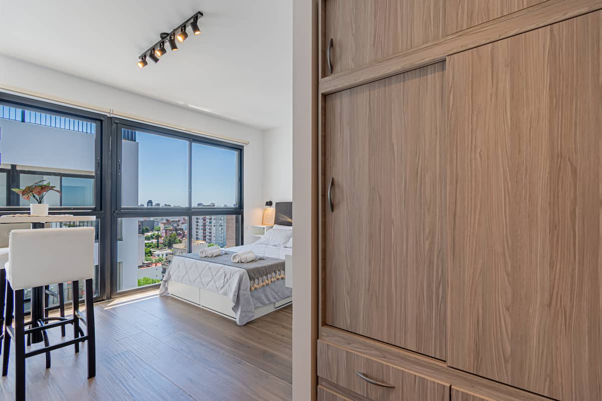 Apartamento de 1 quarto com 23 m², no 14º andar, em edifício novo em San Cristóbal, com vista aberta. Mobiliado para 2 pessoas, com acesso digital ao prédio e ao apartamento, internet Wi‑Fi e TV smart de 43" com Android TV. Cozinha integrada com geladeira com freezer, forno e fogão elétricos, torradeira e chaleira elétrica, além de ar-condicionado split frio e quente e banheiro completo com banheira.