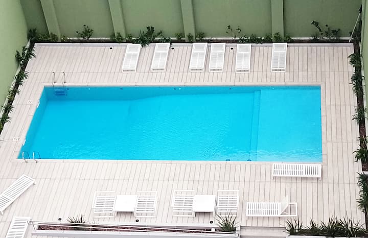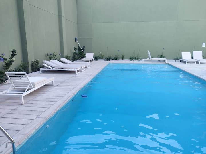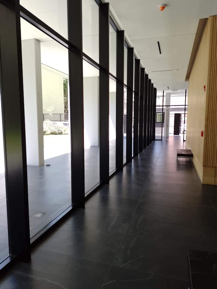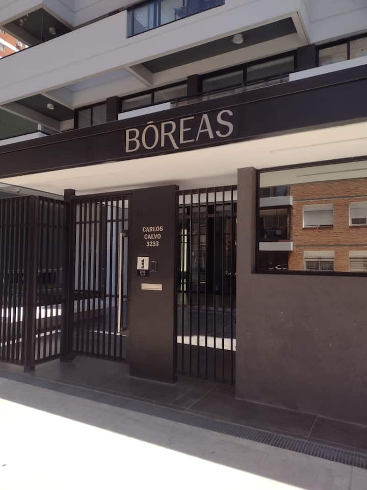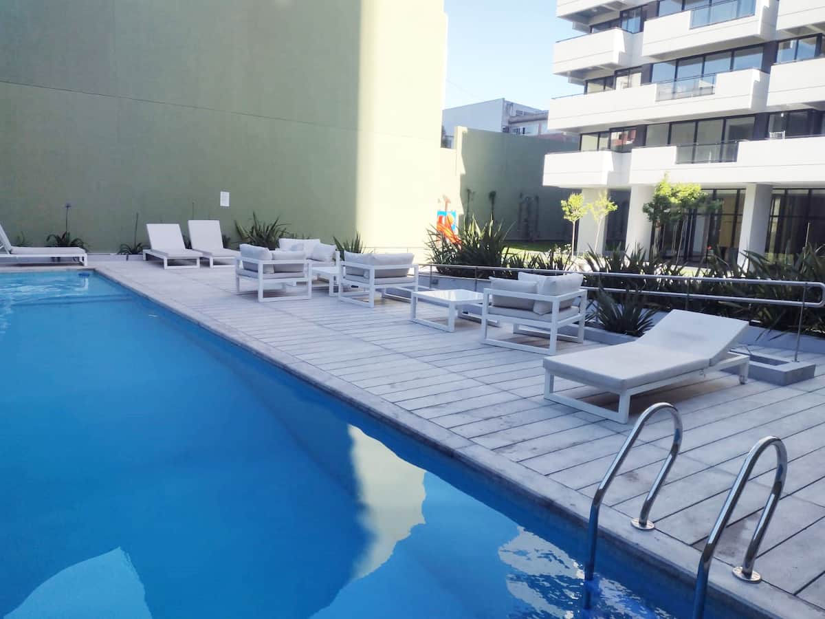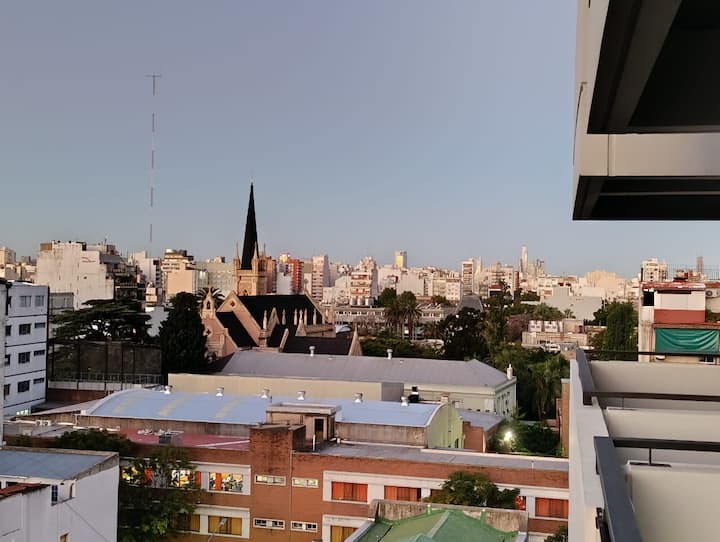 Departamento en una torre en San Cristóbal. Cuenta con 1 dormitorio, balcón y equipamiento para estadías: cama king size, smart TV con Chromecast, máquina Nespresso y WiFi. El edificio dispone de seguridad las 24 horas y tiene estacionamiento en la calle. El acceso a las líneas de Metro E y H es cercano.